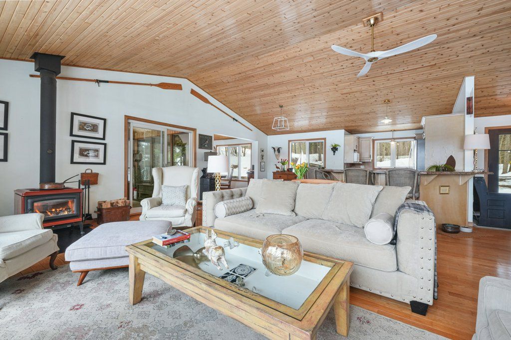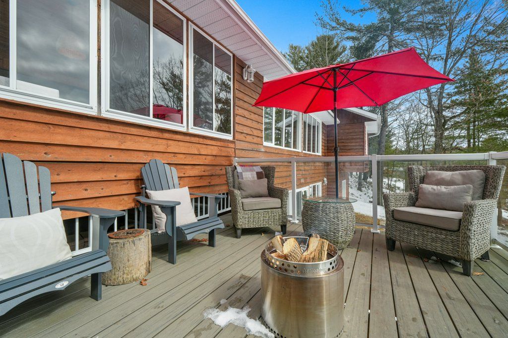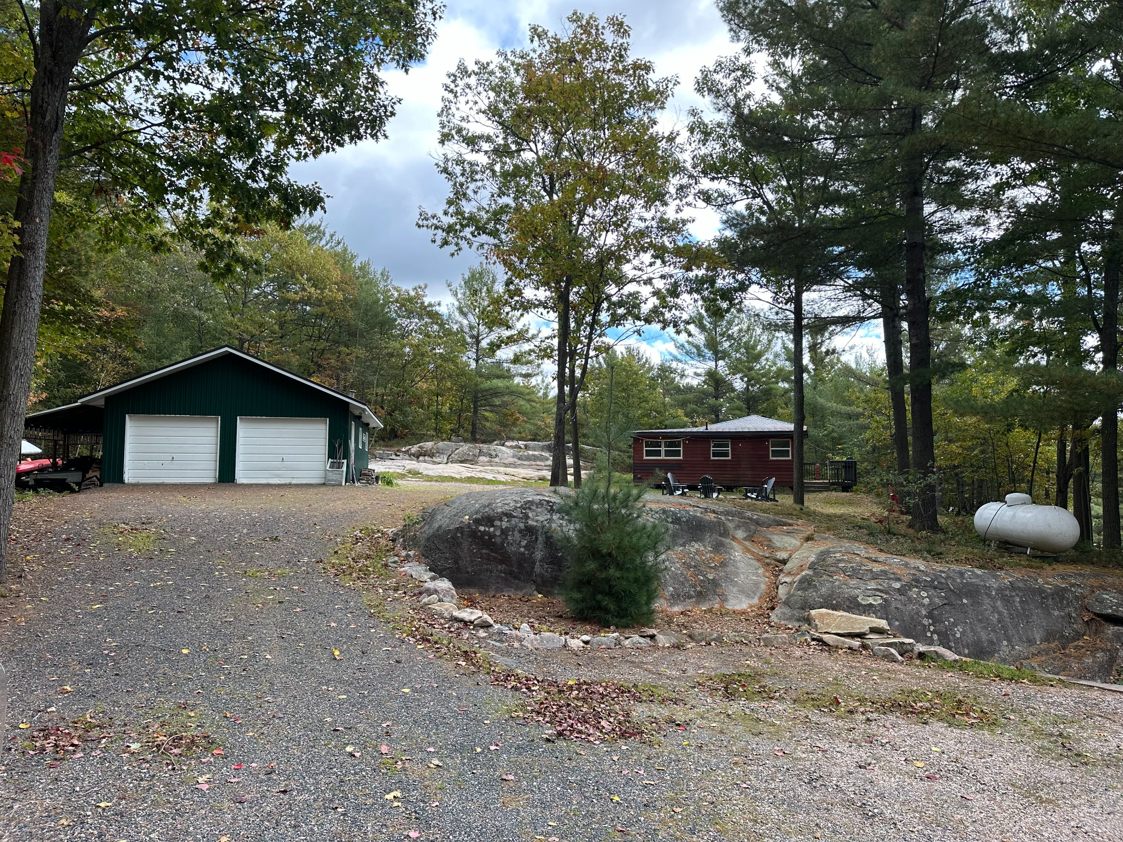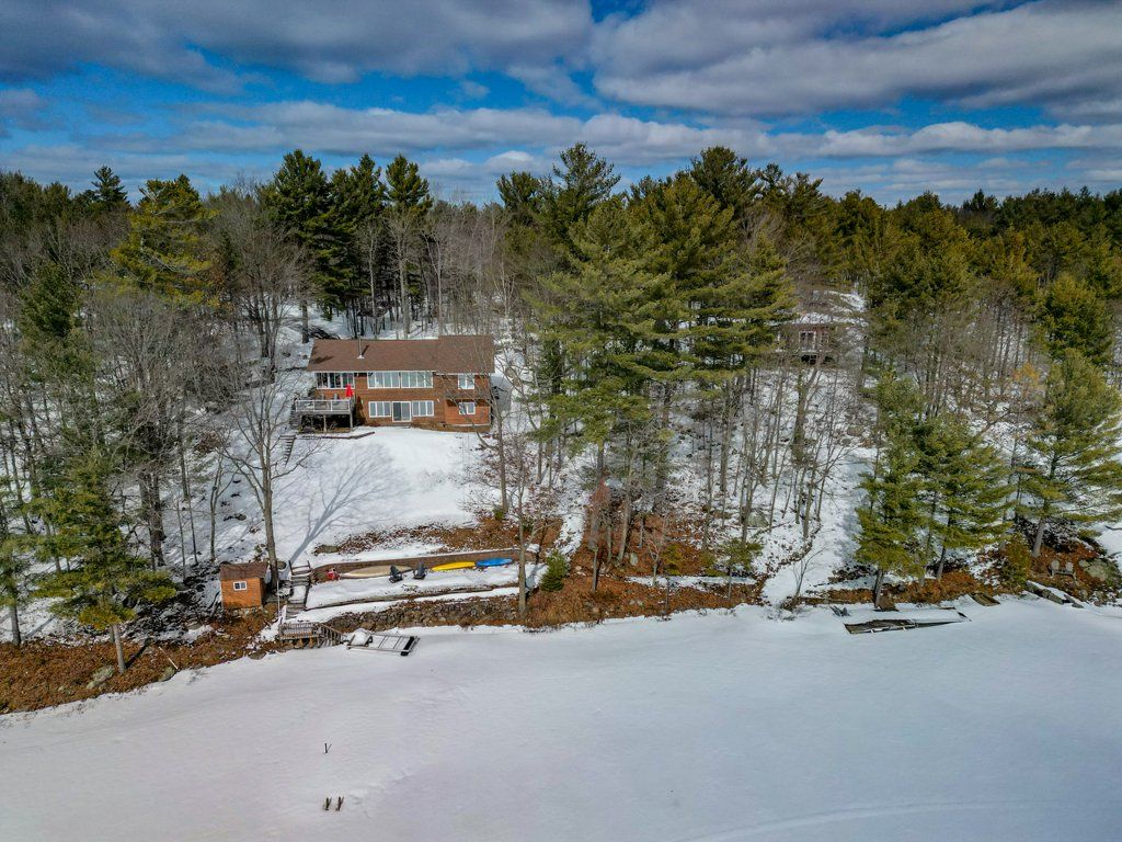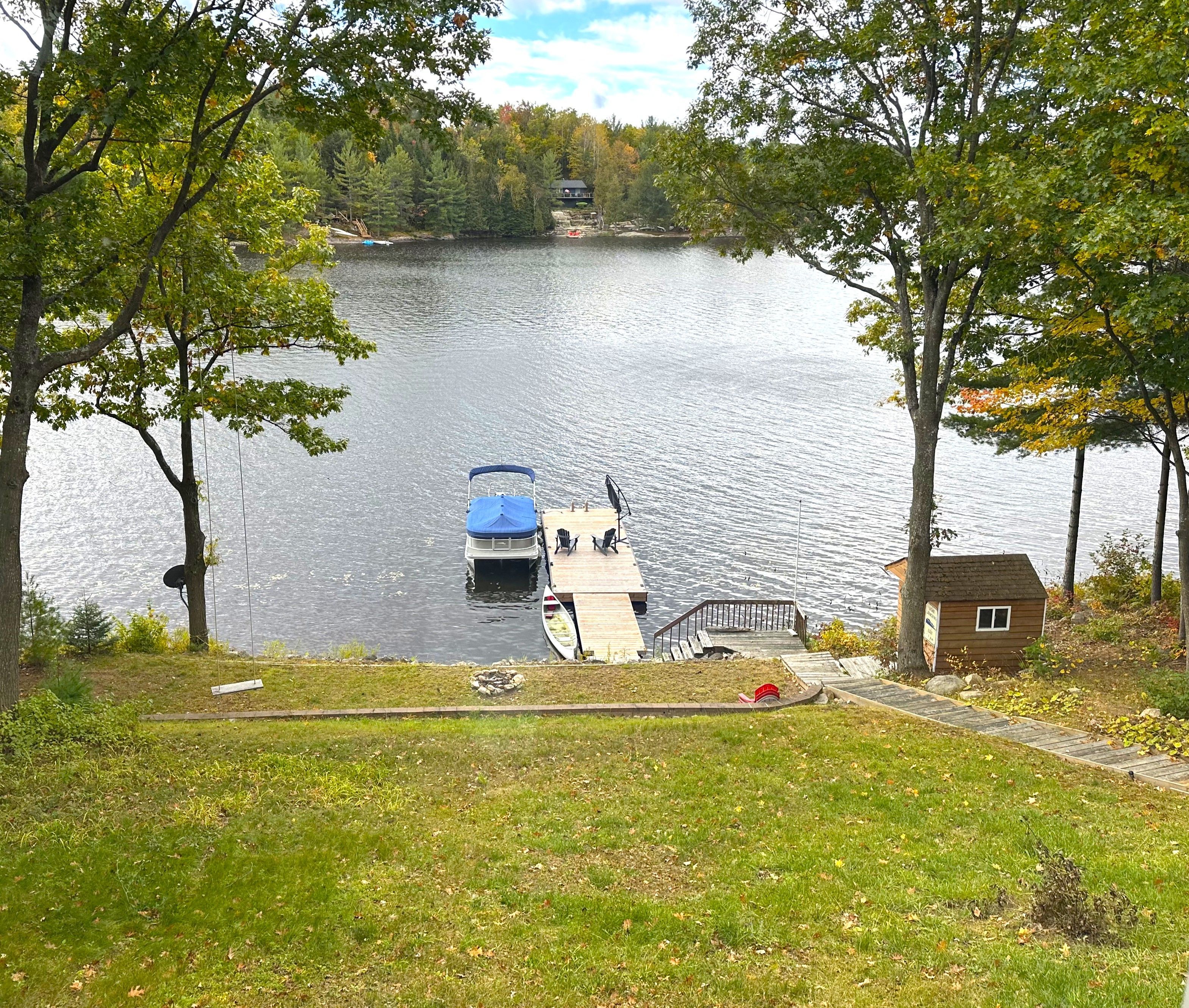 Tucked away on 1. 69 acres with 354 feet of shoreline this property delivers exceptional privacy, lake views and a coveted southwest exposure, sun filled days and golden evening sunsets. The main cottage blends comfort and function with an easy open layout. The kitchen connects seamlessly to the dining and living areas creating a natural gathering space for family and friends. Large windows frame the water while the three-season muskoka room offers a relaxed spot to enjoy the outdoors without leaving the comfort of the home. With 3 bedrooms and 2 bathrooms including a generous primary suite overlooking the lake there is plenty of room for both everyday living and hosting. The lower level adds valuable space with a walkout rec room and additional living area ideal for guests, kids or quiet downtime. Outside the lifestyle really comes together. Unwind on the dock, spend your days on the water and enjoy the peace that comes with year round cottage/home life. A separate updated 2-bedroom bunkie for guest accommodations while the two-bay garage with drive-through access offers practical storage for vehicles, toys and equipment. Well maintained, thoughtfully updated and set on an exceptional piece of land this is a turnkey waterfront property for making memories in every season.