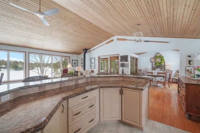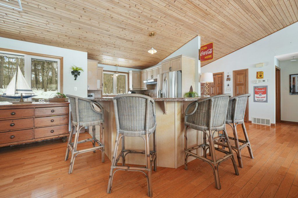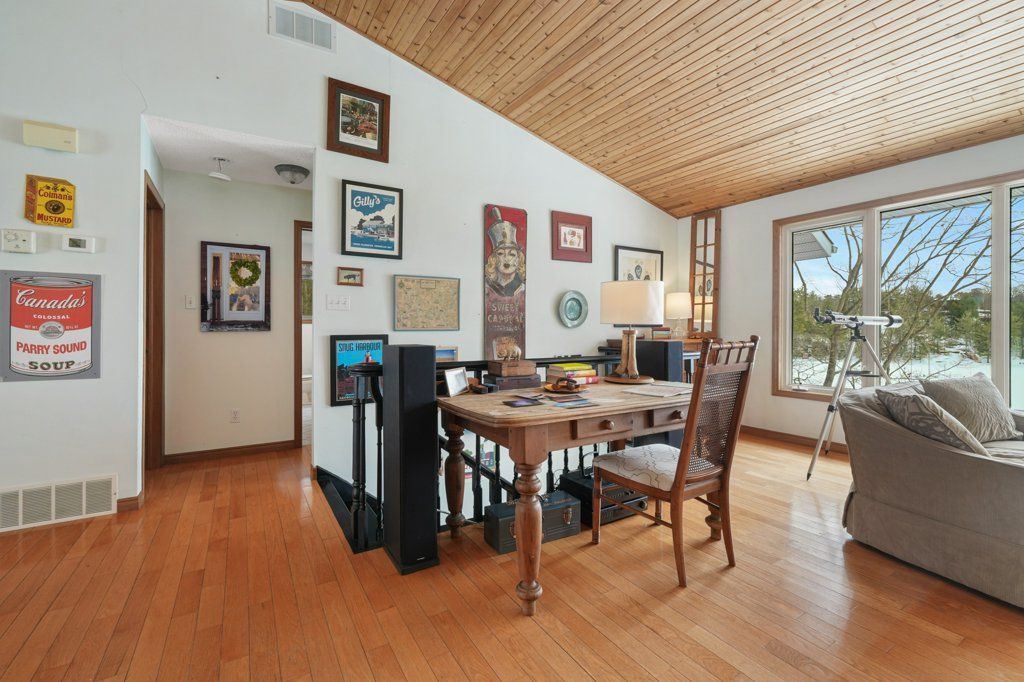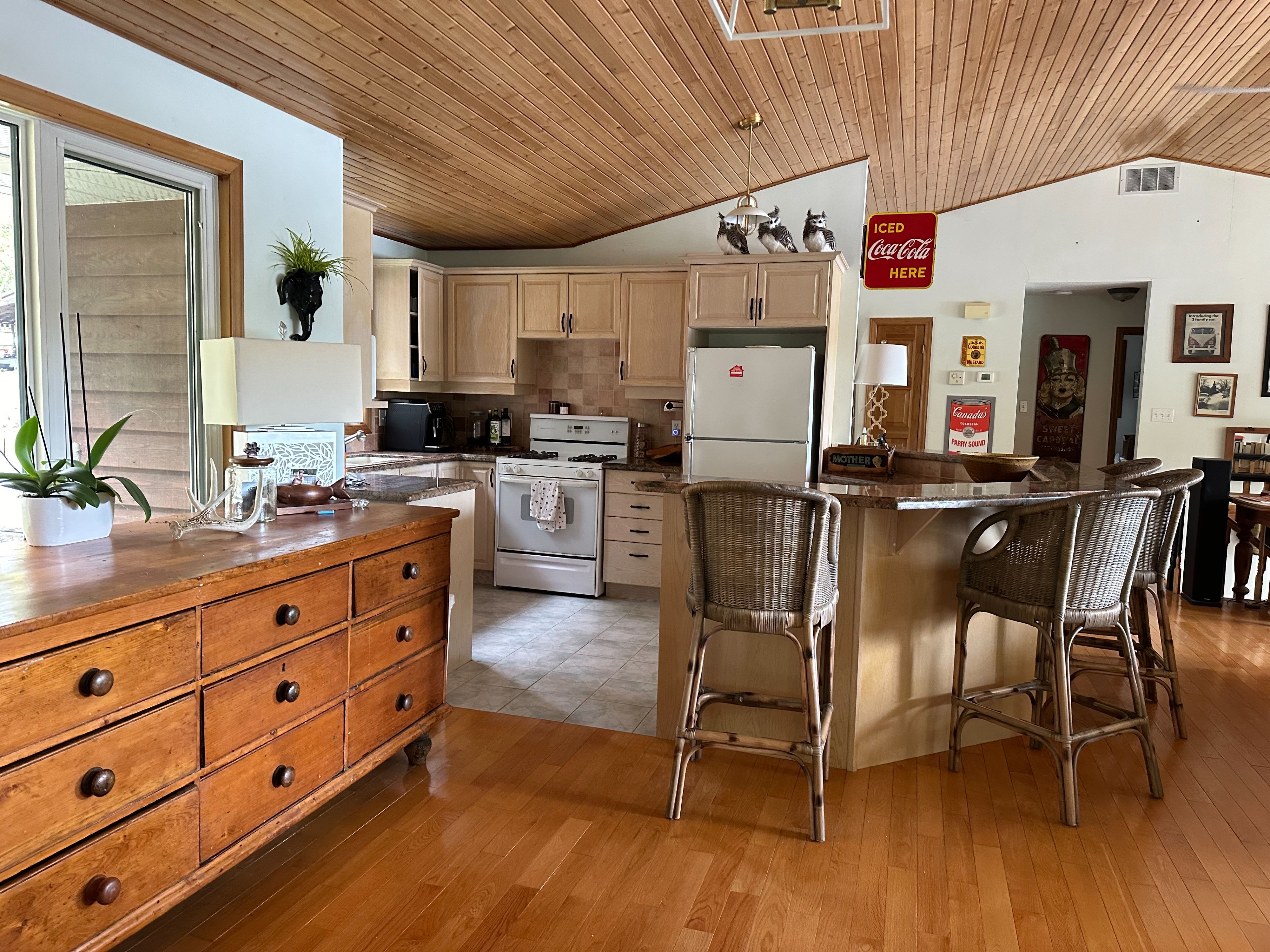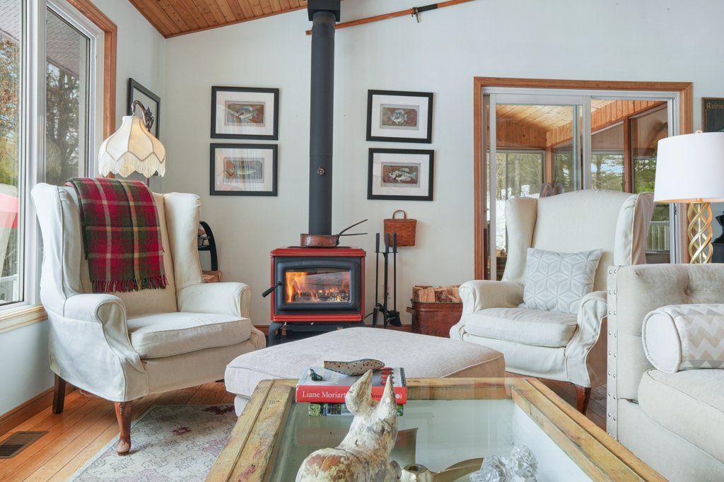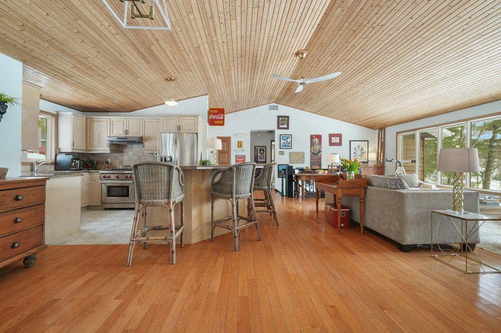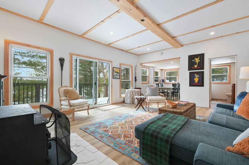 Tucked away on 1. 69 acres with 354 feet of shoreline this property delivers exceptional privacy, lake views and a coveted southwest exposure, sun filled days and golden evening sunsets. The main cottage blends comfort and function with an easy open layout. The kitchen connects seamlessly to the dining and living areas creating a natural gathering space for family and friends. Large windows frame the water while the three-season muskoka room offers a relaxed spot to enjoy the outdoors without leaving the comfort of the home. With 3 bedrooms and 2 bathrooms including a generous primary suite overlooking the lake there is plenty of room for both everyday living and hosting. The lower level adds valuable space with a walkout rec room and additional living area ideal for guests, kids or quiet downtime. Outside the lifestyle really comes together. Unwind on the dock, spend your days on the water and enjoy the peace that comes with year round cottage/home life. A separate updated 2-bedroom bunkie for guest accommodations while the two-bay garage with drive-through access offers practical storage for vehicles, toys and equipment. Well maintained, thoughtfully updated and set on an exceptional piece of land this is a turnkey waterfront property for making memories in every season.