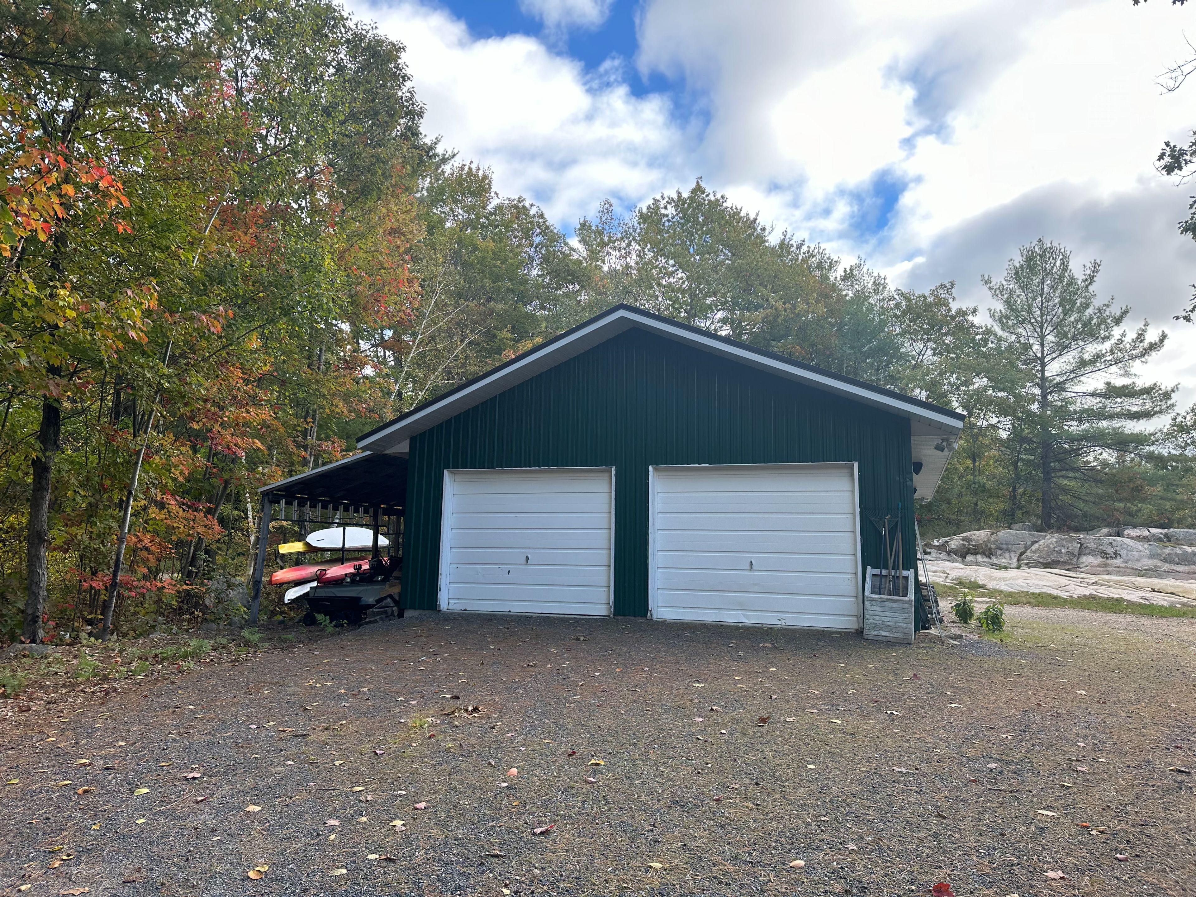 • Separate 2-bedroom bunkie and two-bay garage for extra space and storage.