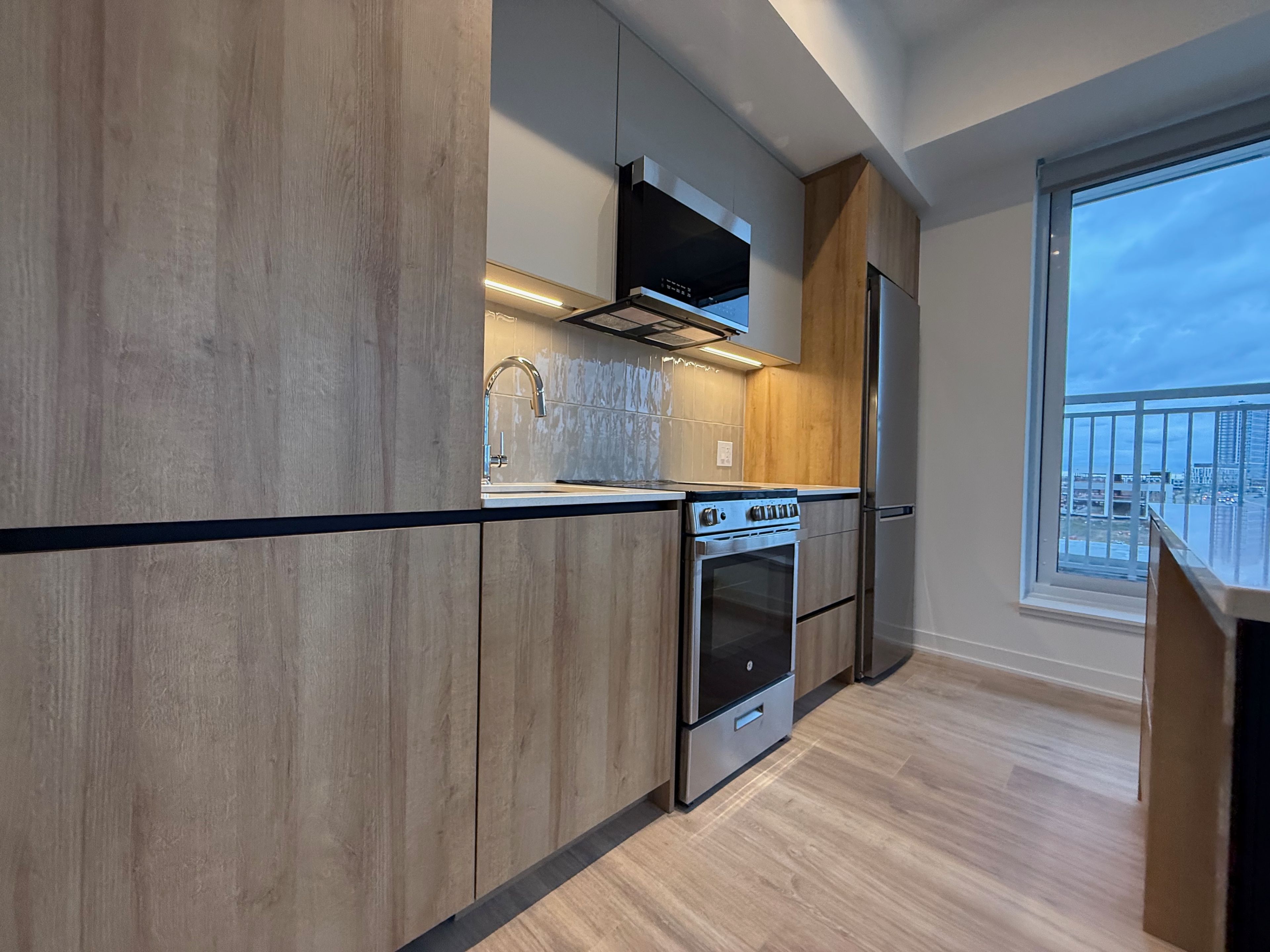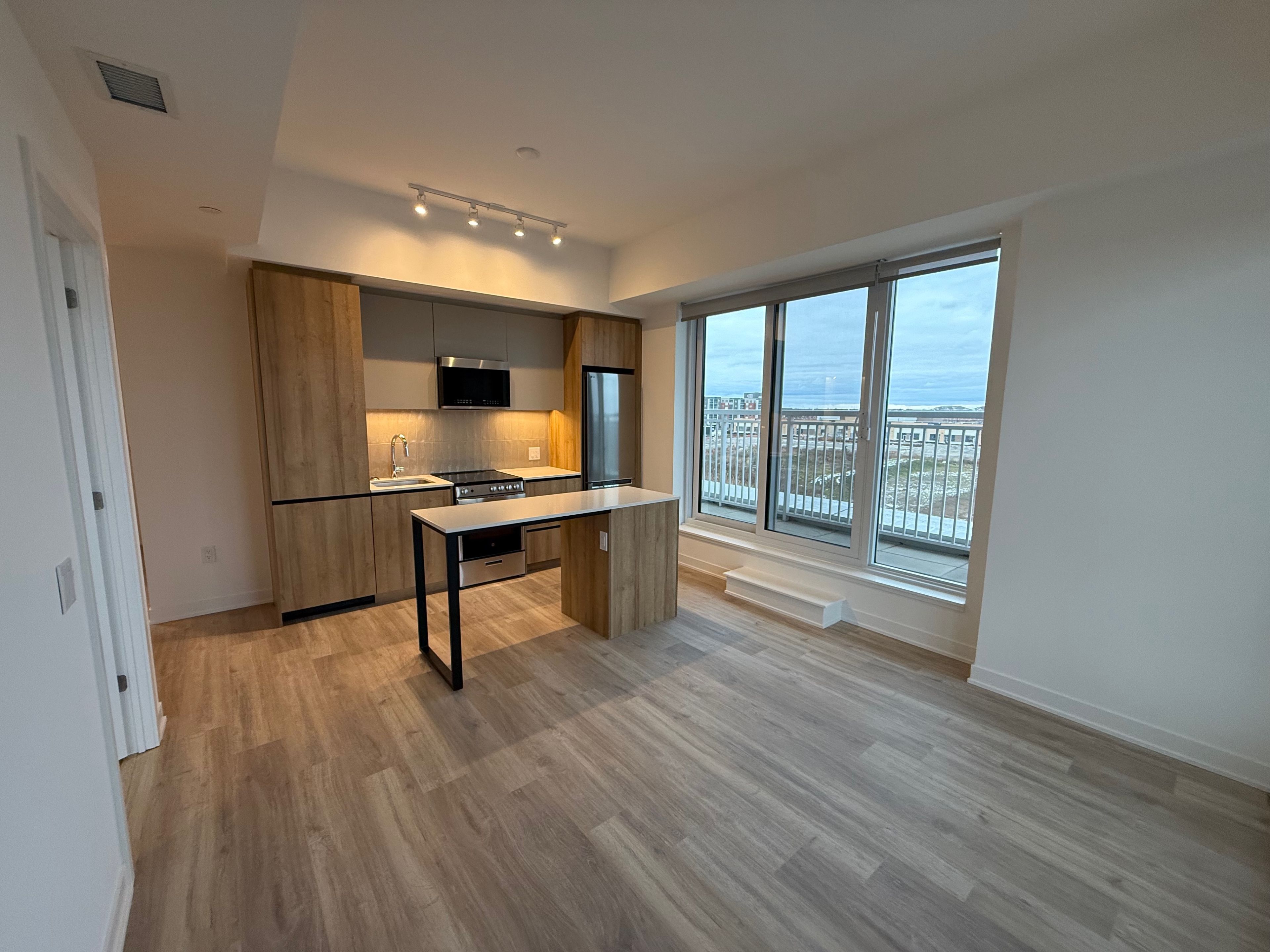 Your opportunity to live in a brand new, never lived-in 2 b/r unit in daniels mpv2 in prestigious mount pleasant community. Open concept liv/din room with high 10 ft ceiling. Corner/end unit allows ample sunlight for the entire living space. Brand new gleaming laminate flooring throughout. Interior living space of 663 sq ft + 240 sq ft wraparound balcony provides luxurious living at its finest. Upgraded kitchen with quartz counter, center island and brand new cabinets and built-in microwave. 1 parking included. Experience resort-style living with premium amenities including a state-of-the-art fitness center, stylish co-working lounge, games and recreation area, beautifully appointed party room, dedicated kids' club, and outdoor bbq and entertaining spaces perfect for hosting. Building amenities also include 24-hour security, a fully equipped gym, and a stunning rooftop patio. Ideally located within walking distance to mount pleasant go station and just steps to schools, grocery stores, and parks - offering exceptional convenience and the perfect setting for modern urban family living.