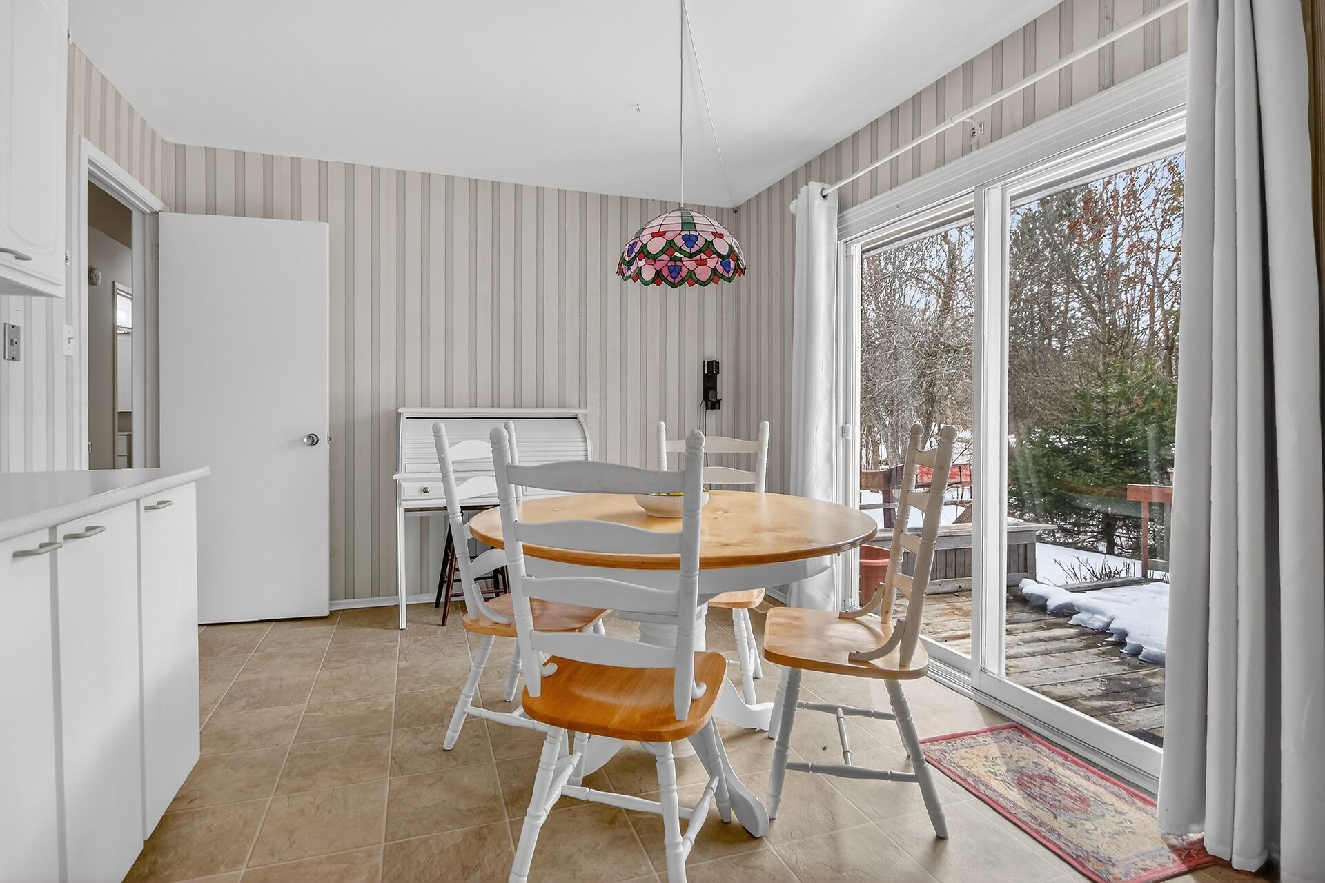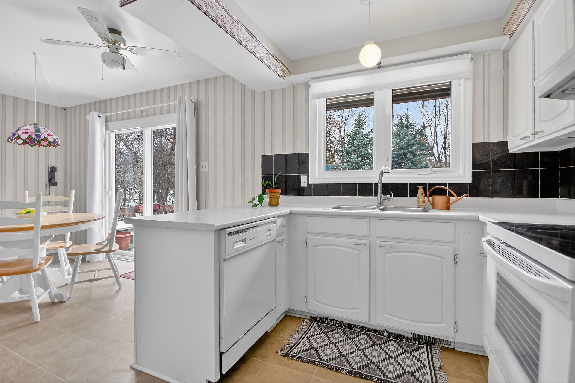 • Sunny eat-in kitchen with plenty of counter space and storage.