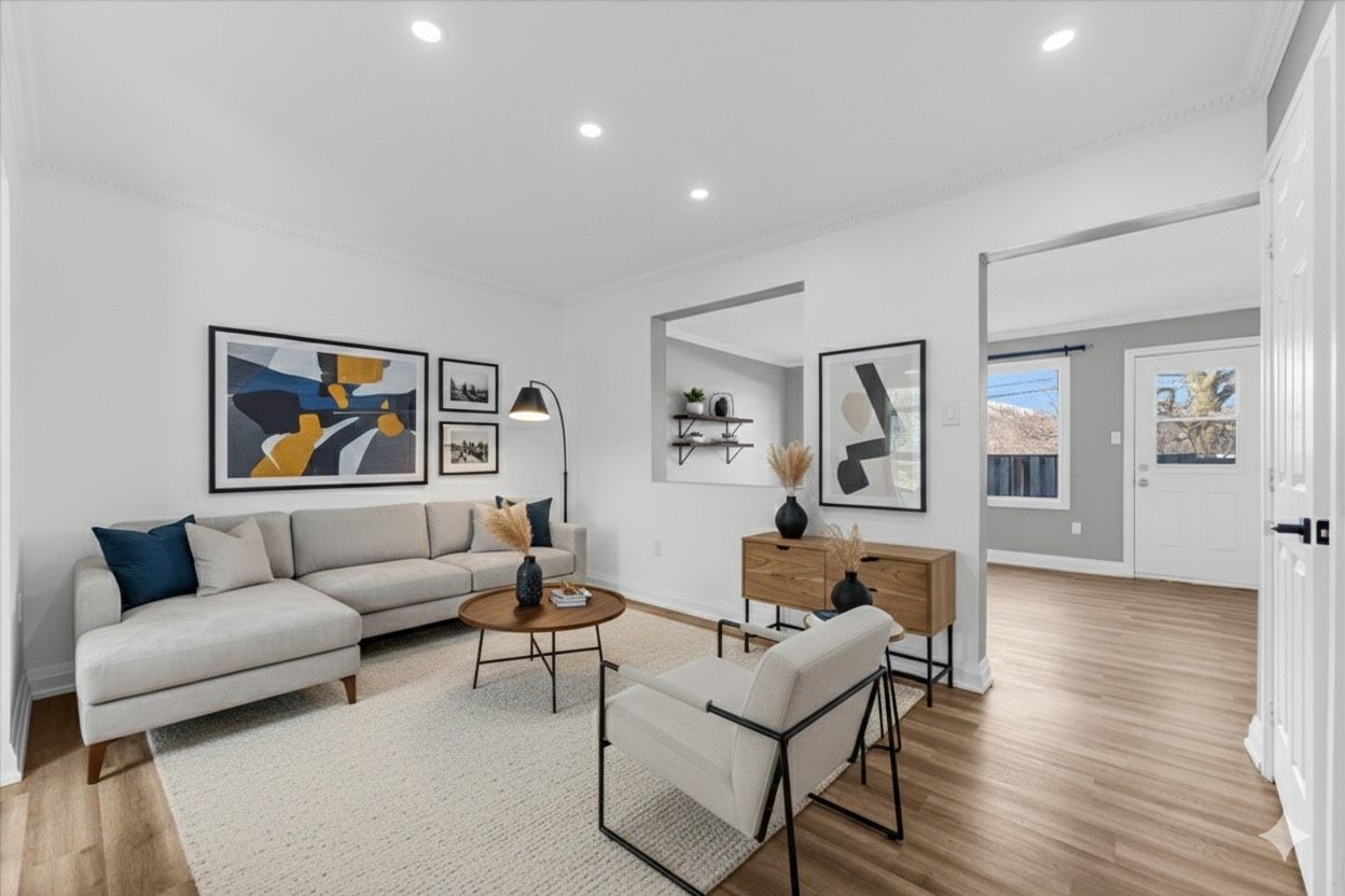 10 angus rd unit #17 updated 3-bedroom, 1-bathroom townhome in great family area freshly painted, new flooring, updated bath and kitchen, lighting and hardware. Are you a first-time homebuyer, a downsizers, or investors? This unit fits the bill with size and features you need. Three spacious bedrooms, large dining and family room and the fully finished basement with access to the garage. Convenience and storage in addition to the private driveway the new deck and gated backyard offers plenty of private space for relaxation and outdoor gatherings. Located just minutes from the qew, red hill parkway, shopping ,high schools, elementary schools, and bus and go station. Beat the spring market and call today! Virtual images accompany original photos for staging purpose only.