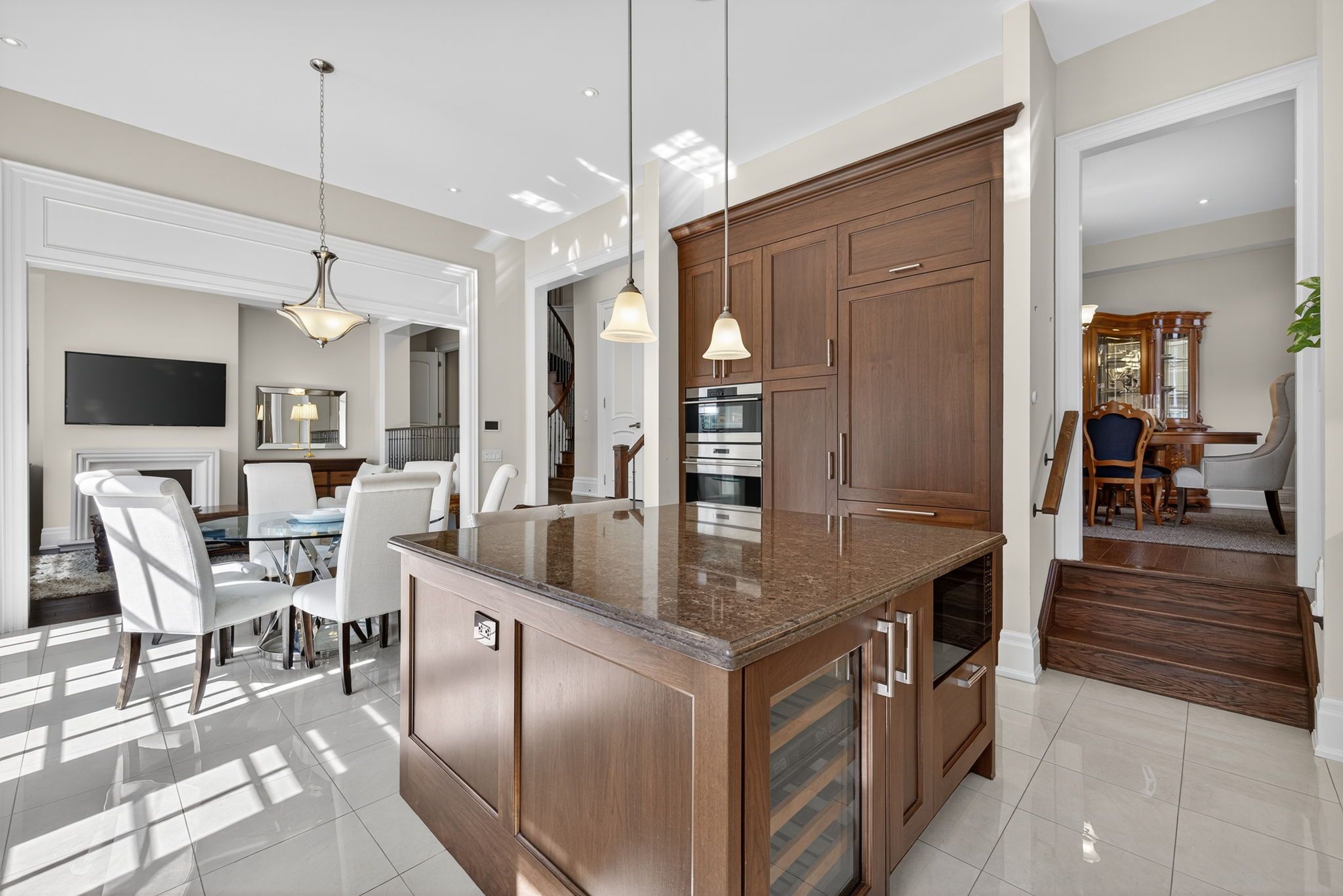 Welcome to 10 annsleywood court, the largest rosehaven platinum collection residence within kleinburg heritage estates, set on the most expansive lot offered among this prestigious release. Tucked at the end of a quiet cul-de-sac, this meticulously maintained home offers over 7,000 sq. Ft. Of refined living space on a rare 13,627 sq. Ft. Pie-shaped property, nearly double the size of typical parcels within the court. The original owners elevated the home beyond builder standards with oversized baseboards, widened trim, upgraded foyer flooring, and premium textured hardwood. Soaring 10 ft and 14 ft ceilings, integrated surround sound, and elegant architectural detailing enhance the home's scale. At the heart of the residence, the chef's kitchen showcases wolf and sub-zero appliances, custom cabinetry, built-in refrigerator, oven, steam oven, centre island with microwave, and wine cooler. The primary suite functions as a private retreat, featuring tray ceilings with integrated sound, expansive windows, a sitting lounge, french doors, and a beverage station. The spa-inspired ensuite is centred around a freestanding tub beneath triple windows, complemented by dual vanities, glass shower, heated floors, and a massive walk-in closet. The finished walkout basement offers a media room, exercise space, full bath, custom wine cellar, and a 600 sq. Ft. Recreation area with patio access and fifth-bedroom potential. Over $80,000 in professional landscaping completes the outdoor setting with interlock stone patio, premium stonework, and natural rock accents. A rare offering combining platinum craftsmanship with the largest lot in the collection.