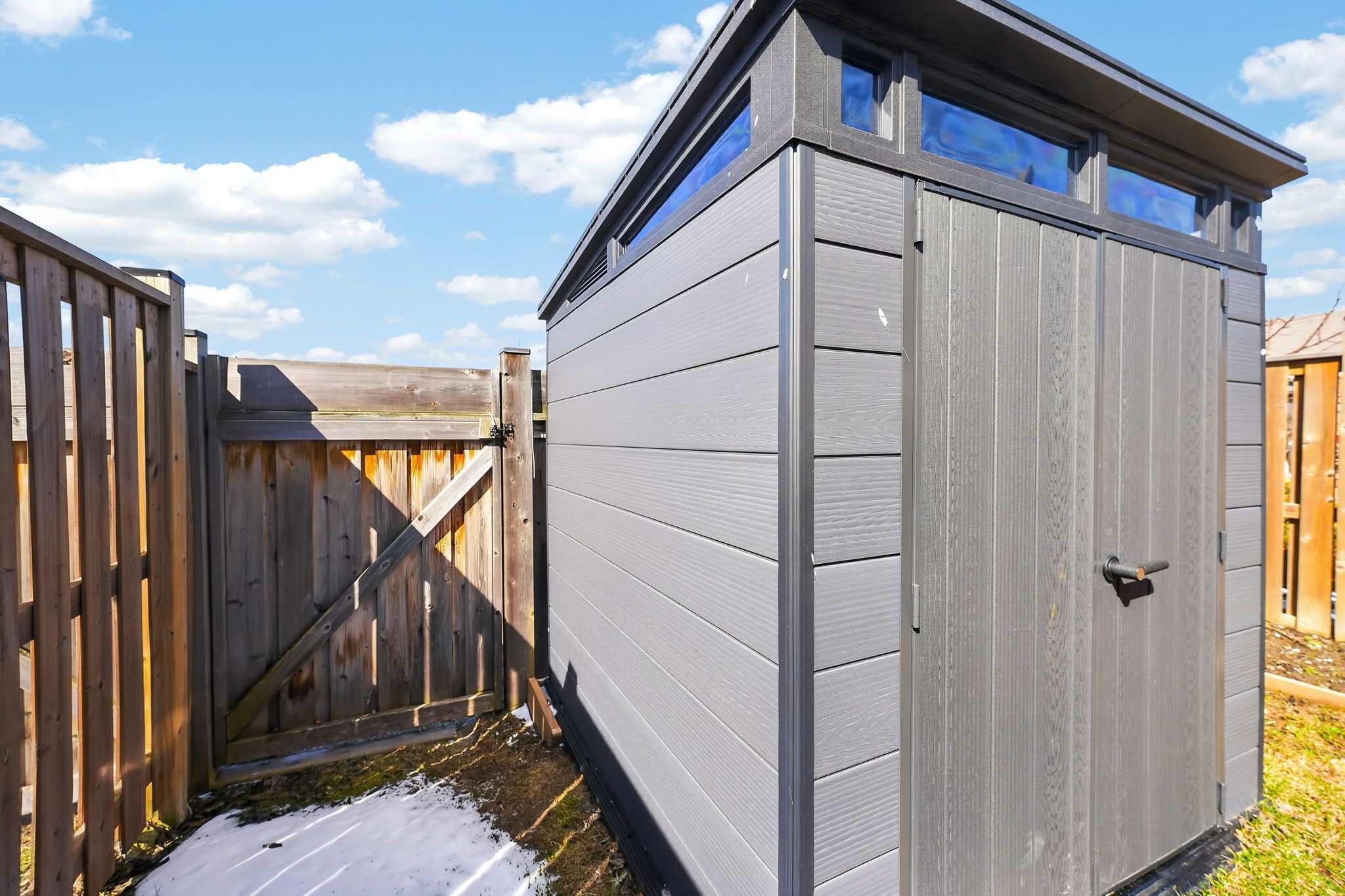 • Sunny west-facing yard backing onto peaceful neighborhood parkland.