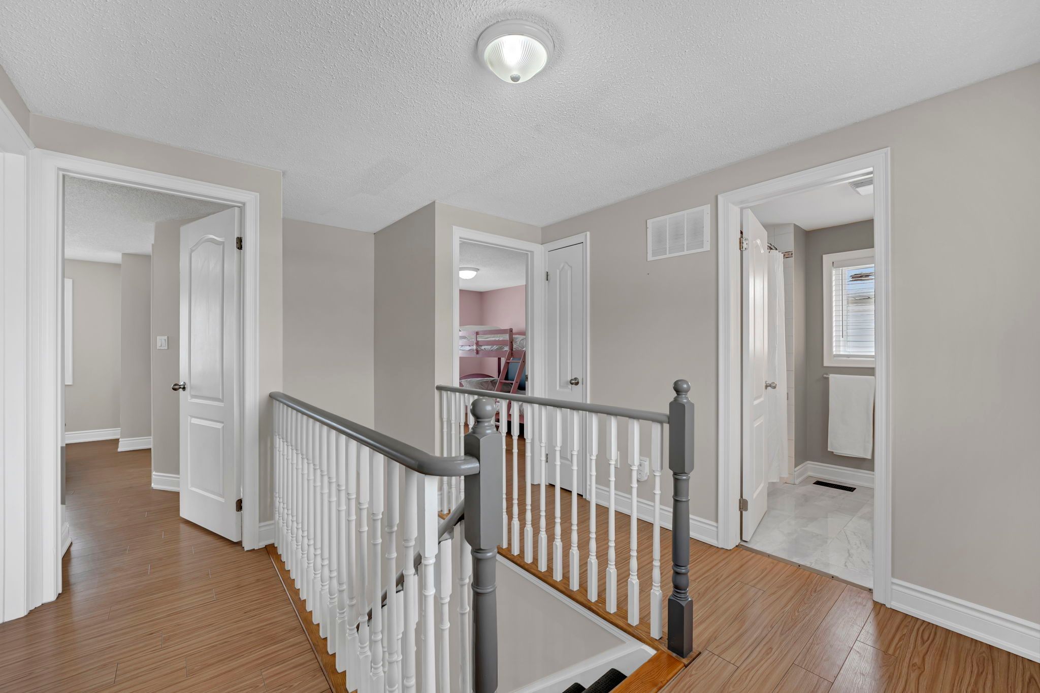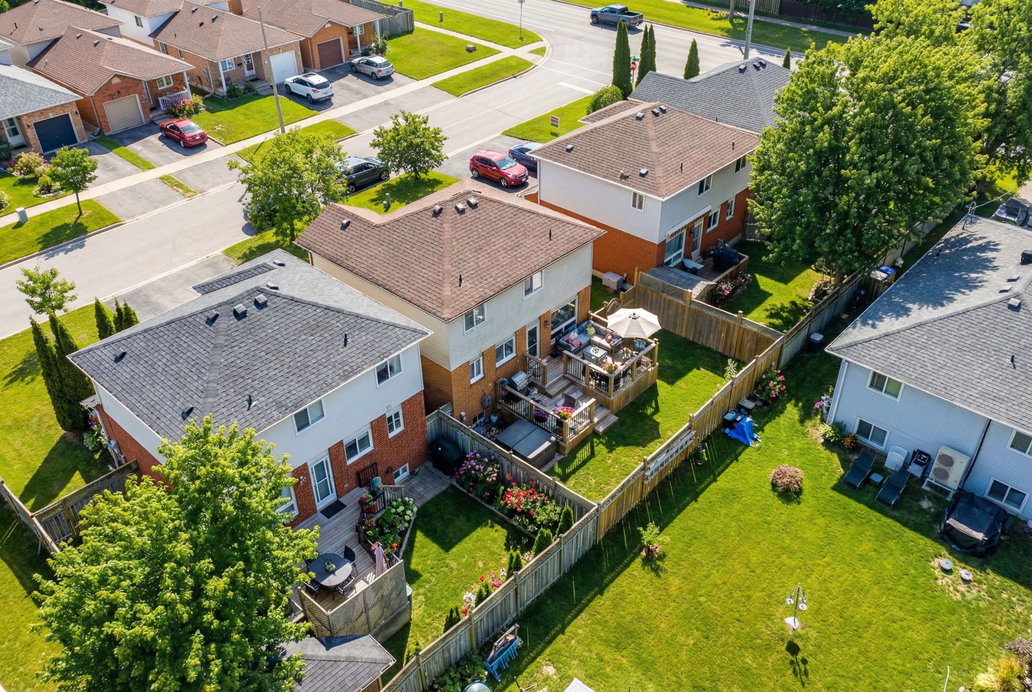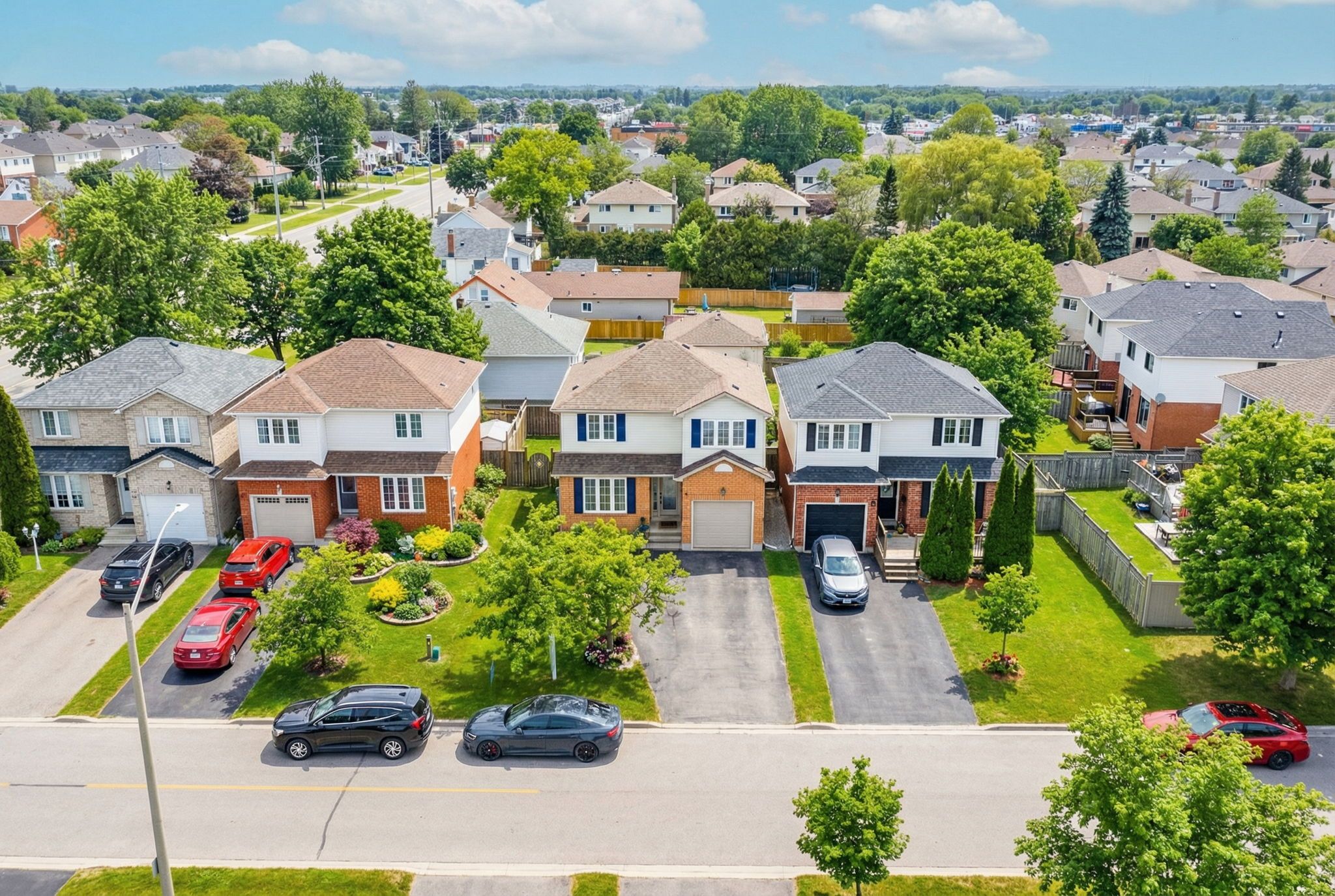 Welcome home to this beautifully maintained, move-in-ready property tucked away on a quiet, sought-after court in the heart of courtice. Situated on an extra-wide lot and surrounded by mature trees, this home offers exceptional curb appeal and a peaceful, private setting. Freshly painted throughout and completely carpet-free, the home features a modern neutral white palette, updated light grey flooring, and all new designer light fixtures, creating a bright and stylish atmosphere from top to bottom. The spacious living and dining area is filled with natural light from the large front picture window, making it perfect for everyday living and entertaining. The updated white kitchen offers quartz countertops, a contemporary backsplash, stainless steel appliances, and a convenient breakfast bar. A walk-out from the kitchen leads to the private backyard retreat featuring a newer deck (2019) with privacy wall and hot tub - ideal for relaxing or hosting friends and family. The upper level features three generous bedrooms and two full bathrooms, including a primary suite with its own private 4-piece ensuite - a highly desirable feature for growing families and upsizers. The newly finished basement adds valuable living space with a versatile rec room and dedicated laundry area, perfect for a home office, gym, playroom, or media room. Additional highlights include a double-wide driveway with no sidewalk offering parking for four vehicles, a large shed, and side yard storage. Major updates include roof (2014) and deck (2019). Enjoy an unbeatable location just steps to foxhunt park at the end of the court, and close to shopping, transit, and the scenic tooley's mill trails. With quick and easy access to highways 401, 418, and 407, this home offers the perfect blend of lifestyle, convenience, and value. An exceptional opportunity for first-time buyers and upsizers looking for a turnkey home in a prime courtice location.