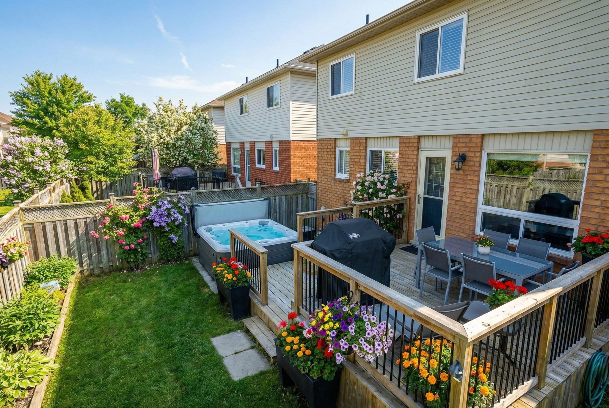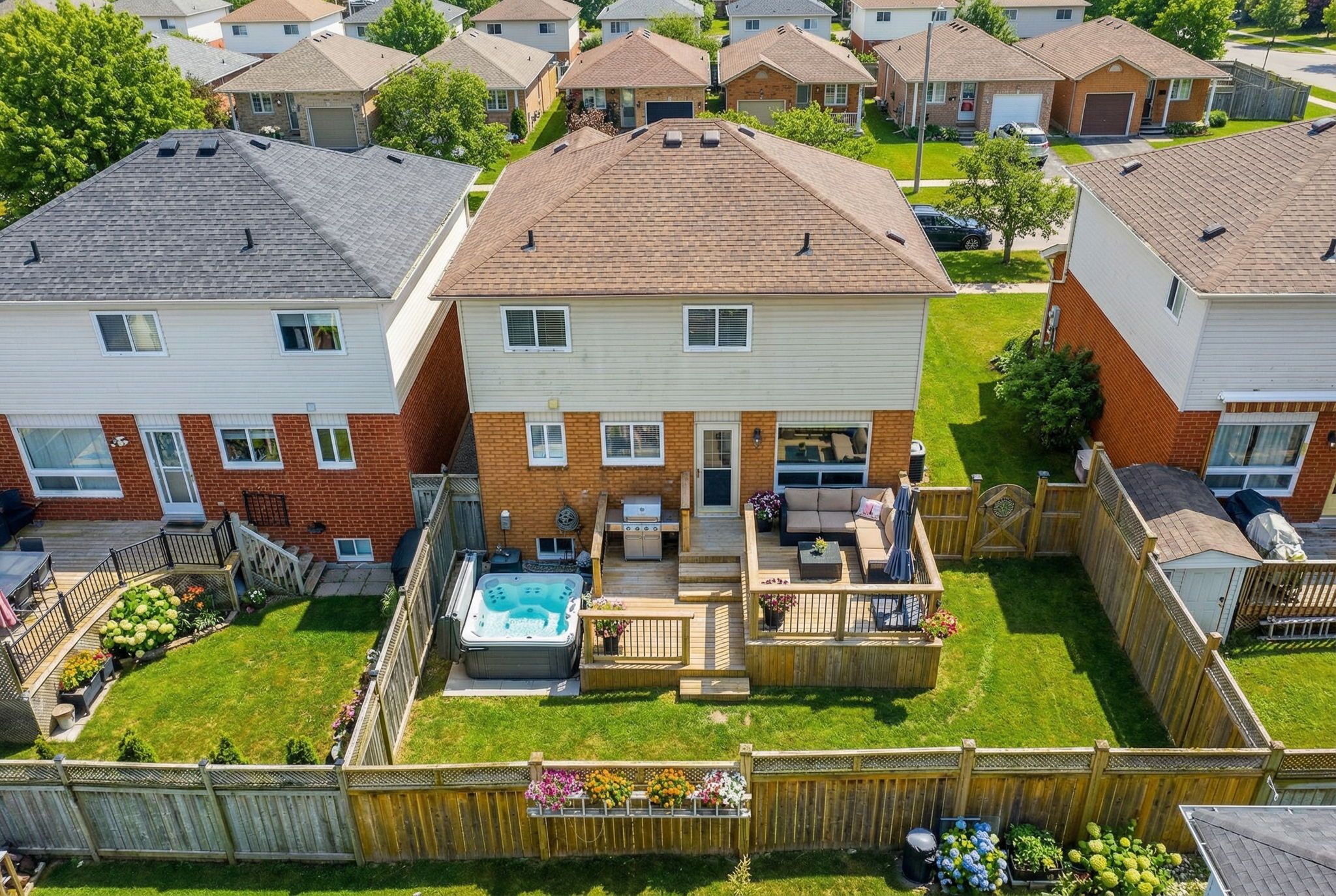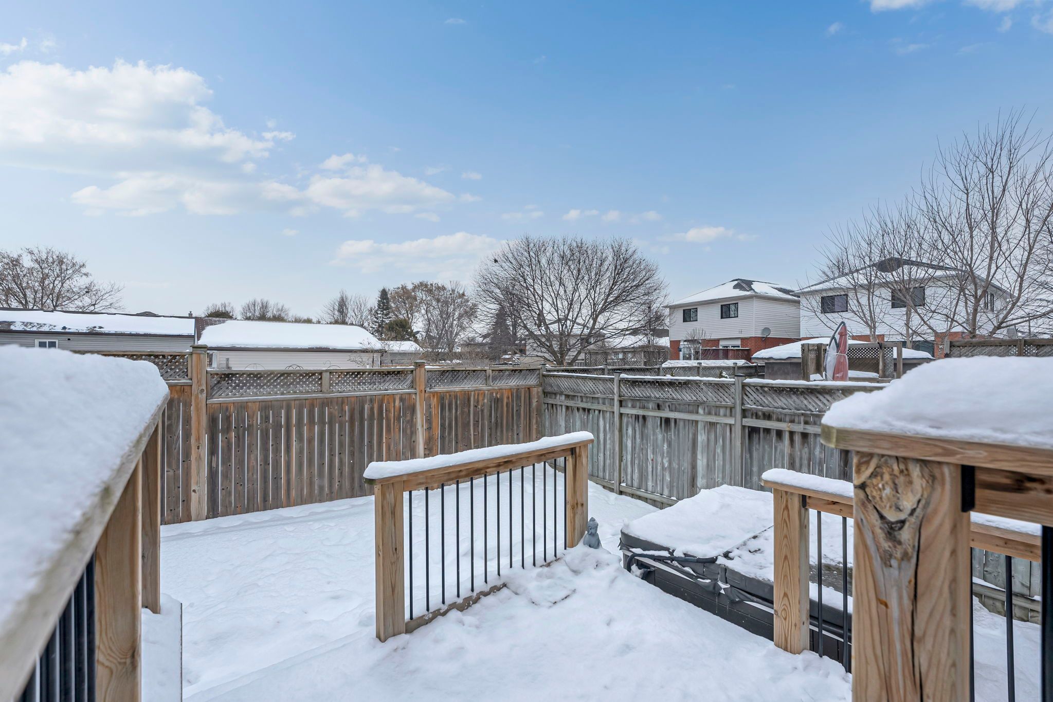 Welcome home to this beautifully maintained, move-in-ready property tucked away on a quiet, sought-after court in the heart of courtice. Situated on an extra-wide lot and surrounded by mature trees, this home offers exceptional curb appeal and a peaceful, private setting. Freshly painted throughout and completely carpet-free, the home features a modern neutral white palette, updated light grey flooring, and all new designer light fixtures, creating a bright and stylish atmosphere from top to bottom. The spacious living and dining area is filled with natural light from the large front picture window, making it perfect for everyday living and entertaining. The updated white kitchen offers quartz countertops, a contemporary backsplash, stainless steel appliances, and a convenient breakfast bar. A walk-out from the kitchen leads to the private backyard retreat featuring a newer deck (2019) with privacy wall and hot tub - ideal for relaxing or hosting friends and family. The upper level features three generous bedrooms and two full bathrooms, including a primary suite with its own private 4-piece ensuite - a highly desirable feature for growing families and upsizers. The newly finished basement adds valuable living space with a versatile rec room and dedicated laundry area, perfect for a home office, gym, playroom, or media room. Additional highlights include a double-wide driveway with no sidewalk offering parking for four vehicles, a large shed, and side yard storage. Major updates include roof (2014) and deck (2019). Enjoy an unbeatable location just steps to foxhunt park at the end of the court, and close to shopping, transit, and the scenic tooley's mill trails. With quick and easy access to highways 401, 418, and 407, this home offers the perfect blend of lifestyle, convenience, and value. An exceptional opportunity for first-time buyers and upsizers looking for a turnkey home in a prime courtice location.