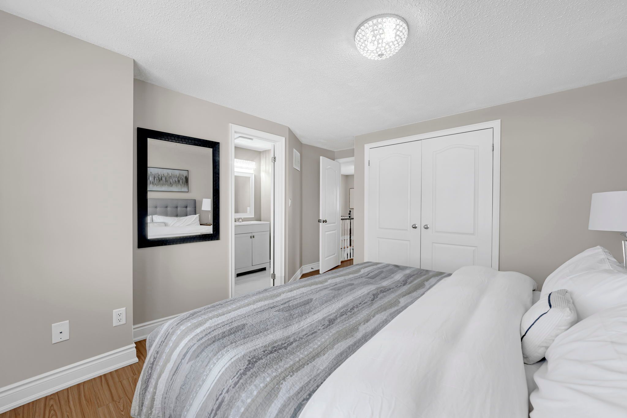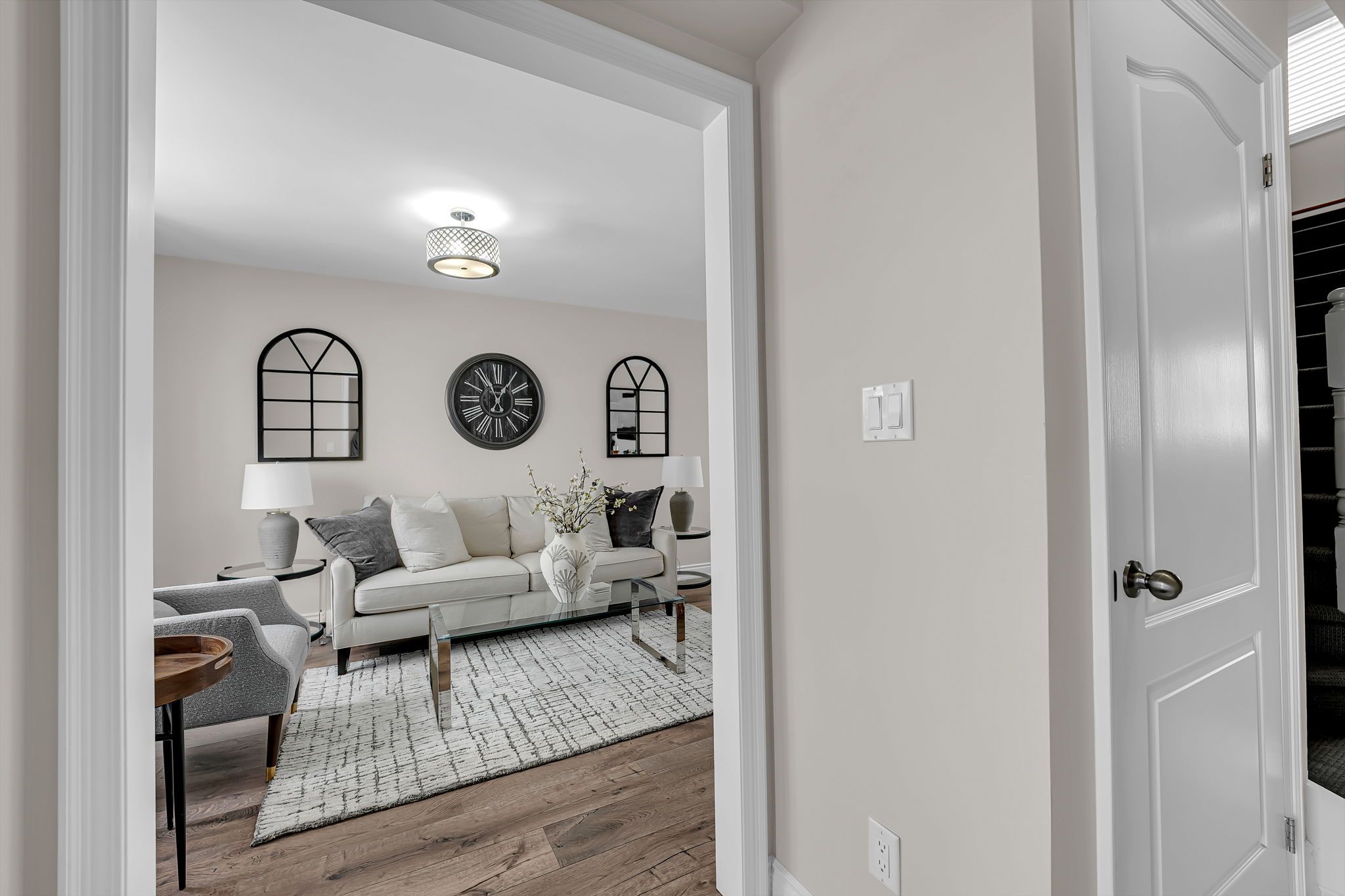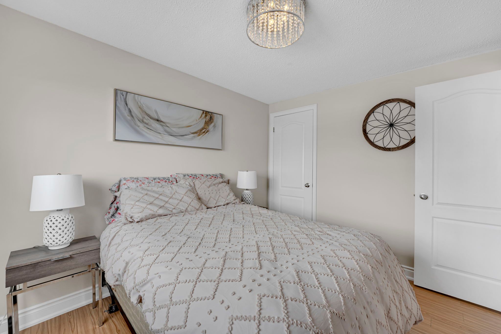 Welcome home to this beautifully maintained, move-in-ready property tucked away on a quiet, sought-after court in the heart of courtice. Situated on an extra-wide lot and surrounded by mature trees, this home offers exceptional curb appeal and a peaceful, private setting. Freshly painted throughout and completely carpet-free, the home features a modern neutral white palette, updated light grey flooring, and all new designer light fixtures, creating a bright and stylish atmosphere from top to bottom. The spacious living and dining area is filled with natural light from the large front picture window, making it perfect for everyday living and entertaining. The updated white kitchen offers quartz countertops, a contemporary backsplash, stainless steel appliances, and a convenient breakfast bar. A walk-out from the kitchen leads to the private backyard retreat featuring a newer deck (2019) with privacy wall and hot tub - ideal for relaxing or hosting friends and family. The upper level features three generous bedrooms and two full bathrooms, including a primary suite with its own private 4-piece ensuite - a highly desirable feature for growing families and upsizers. The newly finished basement adds valuable living space with a versatile rec room and dedicated laundry area, perfect for a home office, gym, playroom, or media room. Additional highlights include a double-wide driveway with no sidewalk offering parking for four vehicles, a large shed, and side yard storage. Major updates include roof (2014) and deck (2019). Enjoy an unbeatable location just steps to foxhunt park at the end of the court, and close to shopping, transit, and the scenic tooley's mill trails. With quick and easy access to highways 401, 418, and 407, this home offers the perfect blend of lifestyle, convenience, and value. An exceptional opportunity for first-time buyers and upsizers looking for a turnkey home in a prime courtice location.