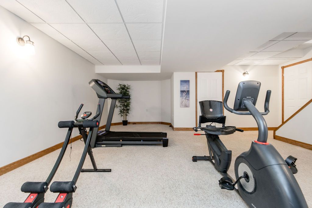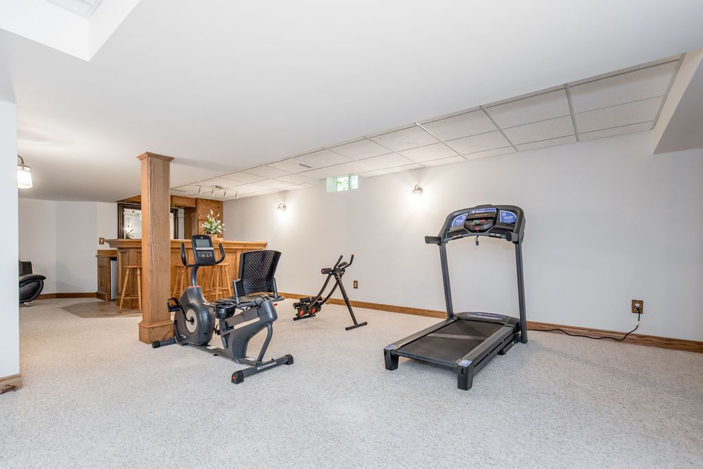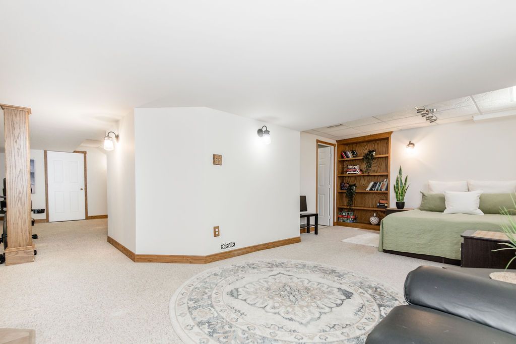 • Finished lower level with rec room, office nook, and extra bathroom.