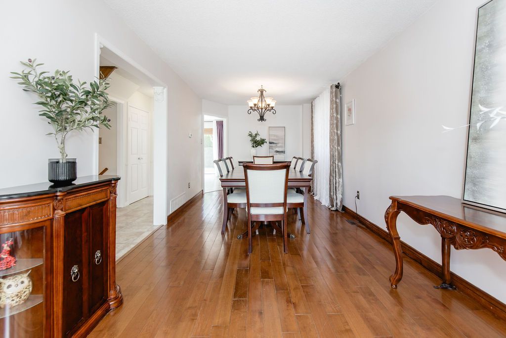 Private backyard-welcome to this beautifully maintained 4-bedroom, 4-bathroom home offering nearly 2,900 sq. Ft. Of finished living space. The main floor features a bright, open layout with a large front sitting room and formal dining area, both with hardwood flooring and oversized windows. The kitchen includes white cabinetry, tiled countertops and backsplash, stainless steel appliances, and an eat-in area with a walkout to the backyard. Across from the kitchen is a cozy family room with a wood-burning fireplace, perfect for relaxing evenings. The main level also includes a 2-piece bath and laundry room with convenient garage access. Upstairs, you'll find four generous bedrooms and an updated 4-piece bathroom. The primary suite features a 5pc ensuite with a soaker tub, glass walk-in shower, double vanity with granite counters, and ample storage. The fully finished lower level offers flexible living space with a large rec room, bar area, office nook, and an additional 2-piece bath ideal for entertaining or creating a home gym, playroom, or 5th bedroom. Step outside to an extremely private, fully landscaped backyard complete with an interlock patio, mature trees, and plenty of space for kids or pets to play. Plus, a hookup for a hot tub is already in place. Six car parking. A wonderful home for growing families in a desirable neighbourhood.