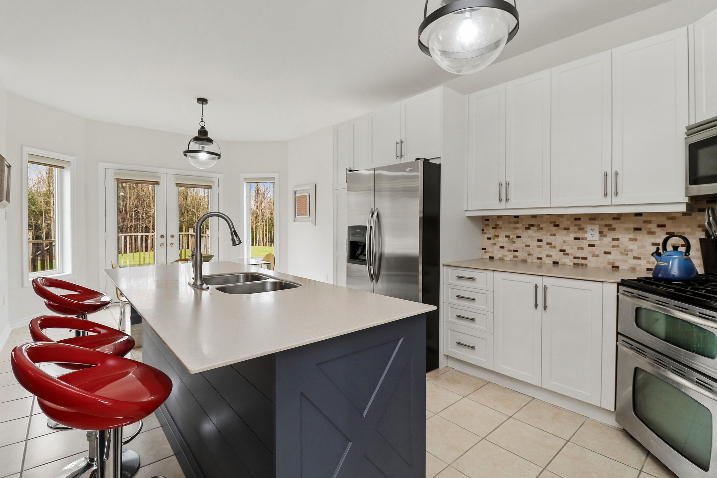 "wasaga sands," one of wasaga beach's most popular and sought-after neighbourhoods. This beautiful executive raised bungalow sits on a large lot-almost 3/4 of an acre-surrounded by million dollar homes of the same quality and backs onto a quiet ravine and macintyre creek, giving you lots of privacy and a peaceful setting. The 5-star curb appeal is clear as soon as you arrive, with two entrances and a 3-car garage. The main floor has over 2,500 sq ft of bright, open space enhanced by 9' ceilings throughout. The kitchen and family room are open to each other, making it easy to cook, relax and spend time together. The separate dining room provides room for formal gatherings, family meals and special occasions. Also a separate office that is ideal for working from home. There are 3 bedrooms on the main floor. The primary bedroom has its own 5-piece ensuite bathroom. There is another full 5-piece bathroom and a powder room for guests. The fully finished basement with 10 foot ceilings gives you even more space. It has 3 more bedrooms, including a large guest or in-law suite with its own 5-piece ensuite. There is also another full 5-piece bathroom, a huge rec room and lots of storage space; ideal for extended family, entertaining or multi-generational living. The attached 3-car garage and parking for at least 8 cars on the driveway give you plenty of room for family and guests. Step outside from the kitchen to a 2-tier deck with a fun tiki bar and an above-ground gas heated salt water pool. Perfect for summer get-togethers and relaxing in your fully fenced backyard enjoying the peaceful natural surroundings of the ravine backdrop. Walk to macintyre creek trails, drive just 5 minutes to shopping, dining and the world's longest fresh water beach, 15 minutes to collingwood and 25 minutes to blue mountain village for year-round recreation and amenities. This is a great chance to own a large, comfortable home in a quiet and friendly community.