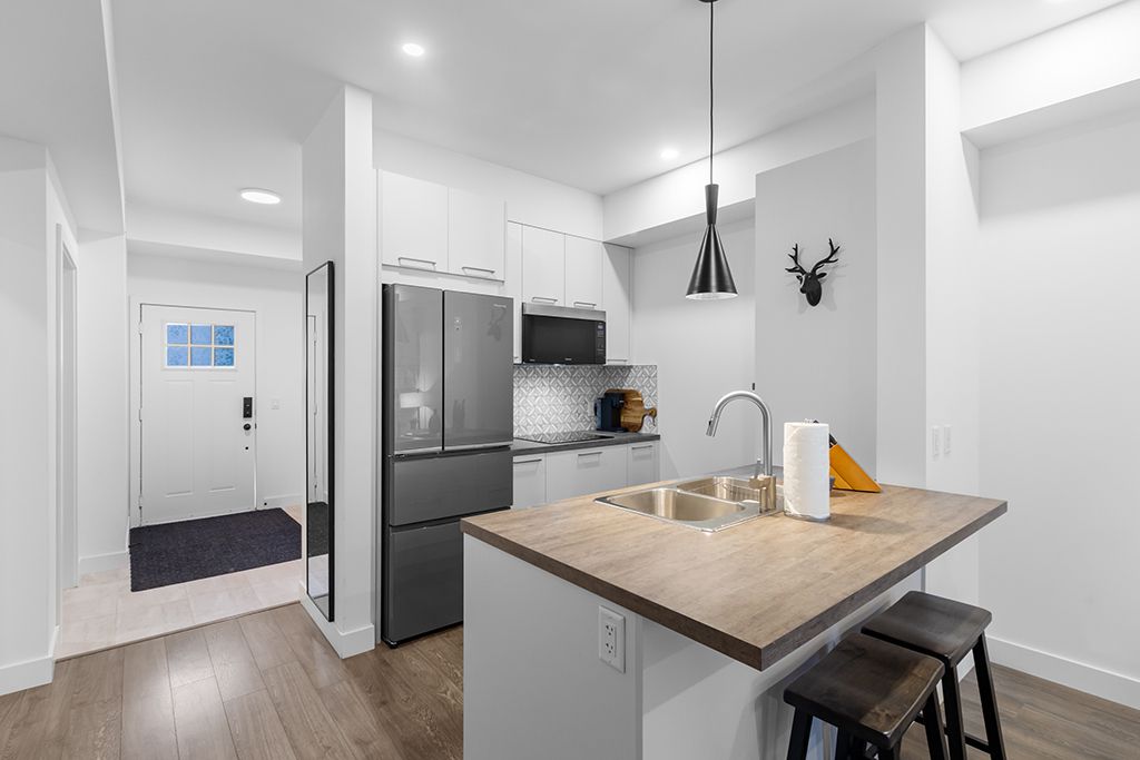 • Fully equipped kitchen and in-suite laundry for added convenience.
