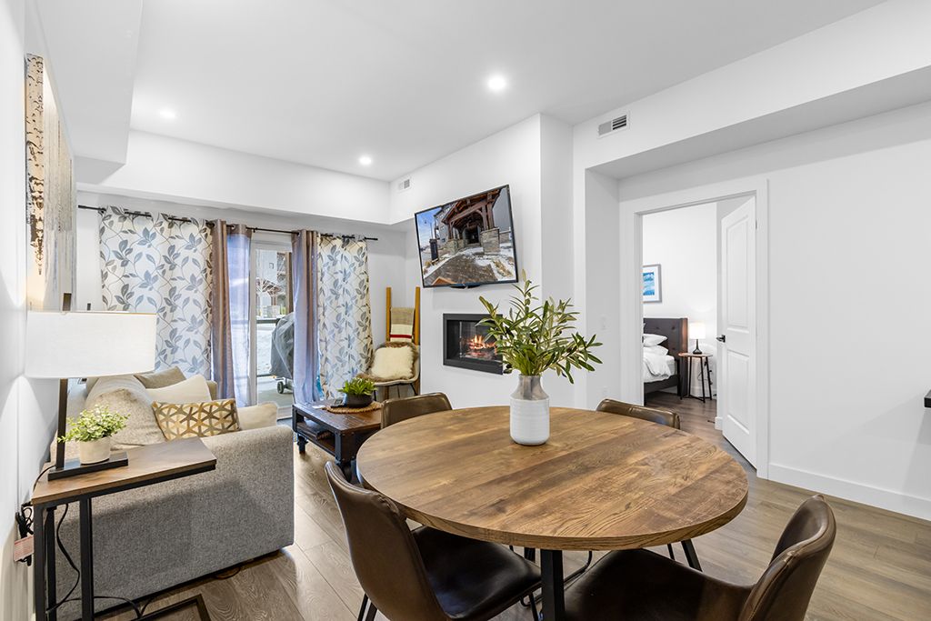 Welcome to mountain house, where comfort meets convenience in this beautifully furnished 2-bedroom, 2-bathroom ground floor condo located in the encore building. Available for a spring or summer seasonal lease. This fully equipped suite offers a modern kitchen with appliances and everything you need for your stay, along with luxurious bedding & towels. You'll appreciate the convenience of in-suite laundry. Relax by the cozy gas fireplace or step outside to your private patio, complete with a gas bbq. This stylish unit includes designated parking for one vehicle, plus visitor parking is available. Just a short drive to blue mountain village and minutes from downtown collingwood, the location is ideal for both adventure and relaxation. Residents have access to the jewel of mountain house zephyr springs, a private spa-inspired amenity area featuring year around outdoor pools and a tranquil space to unwind right outside your door. This is four-season living at its finest. Length of term is negotiable (must be over 30 days) utilities extra