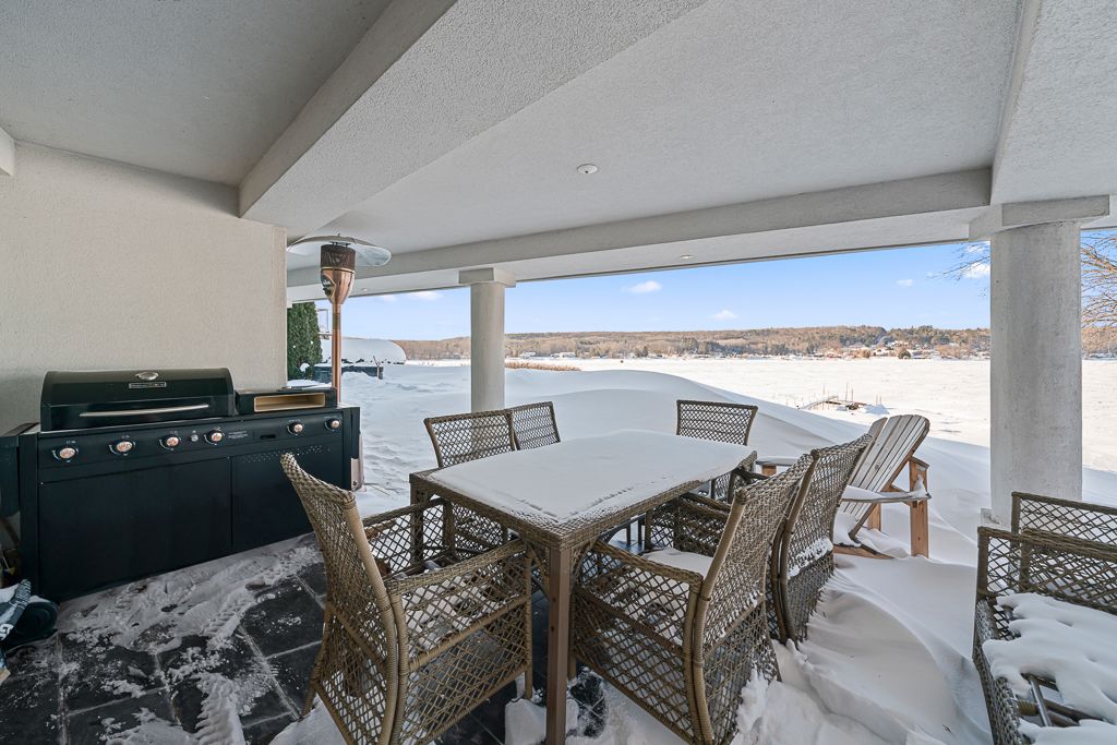 Wake up to wide, unobstructed views of georgian bay, step onto your own white sand beach, and enjoy true four-season waterfront living. Set on an exceptional 85 x 346 ft lot with 85 ft of shoreline, this 3,000-3,500 sq ft custom bungalow offers year-round comfort in one of penetanguishene's most desirable waterfront locations. The home features 3 bedrooms, 3 bathrooms, a built-in 2-car garage, parking for 6 vehicles, a private dock, and protected deep-water access. Designed to bring the outdoors in, the home offers a bright open-concept layout with floor-to-ceiling windows, vaulted ceilings, and skylights that capture the water views throughout. The living area is centred around a gas fireplace, while the kitchen with centre island and breakfast bar opens directly to outdoor entertaining spaces. The primary bedroom enjoys direct waterfront views, while two additional bedrooms and three full bathrooms provide space for family and guests. Outside, professionally landscaped grounds, an 8-person hot tub, and easy access to boating, swimming, and fishing complete the experience. Minutes to downtown penetanguishene, awenda provincial park, the tiny rail trail, and the 30,000 islands .