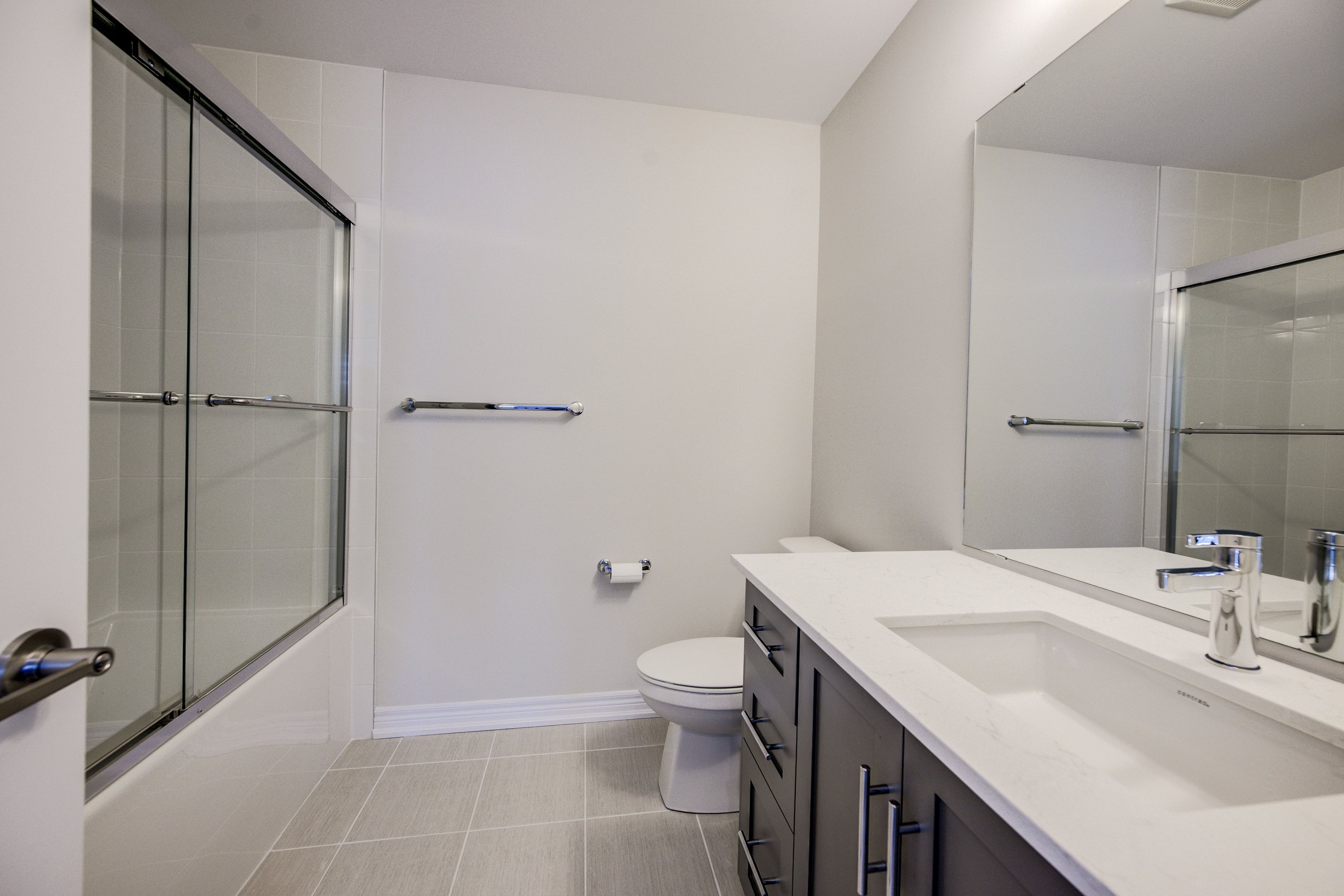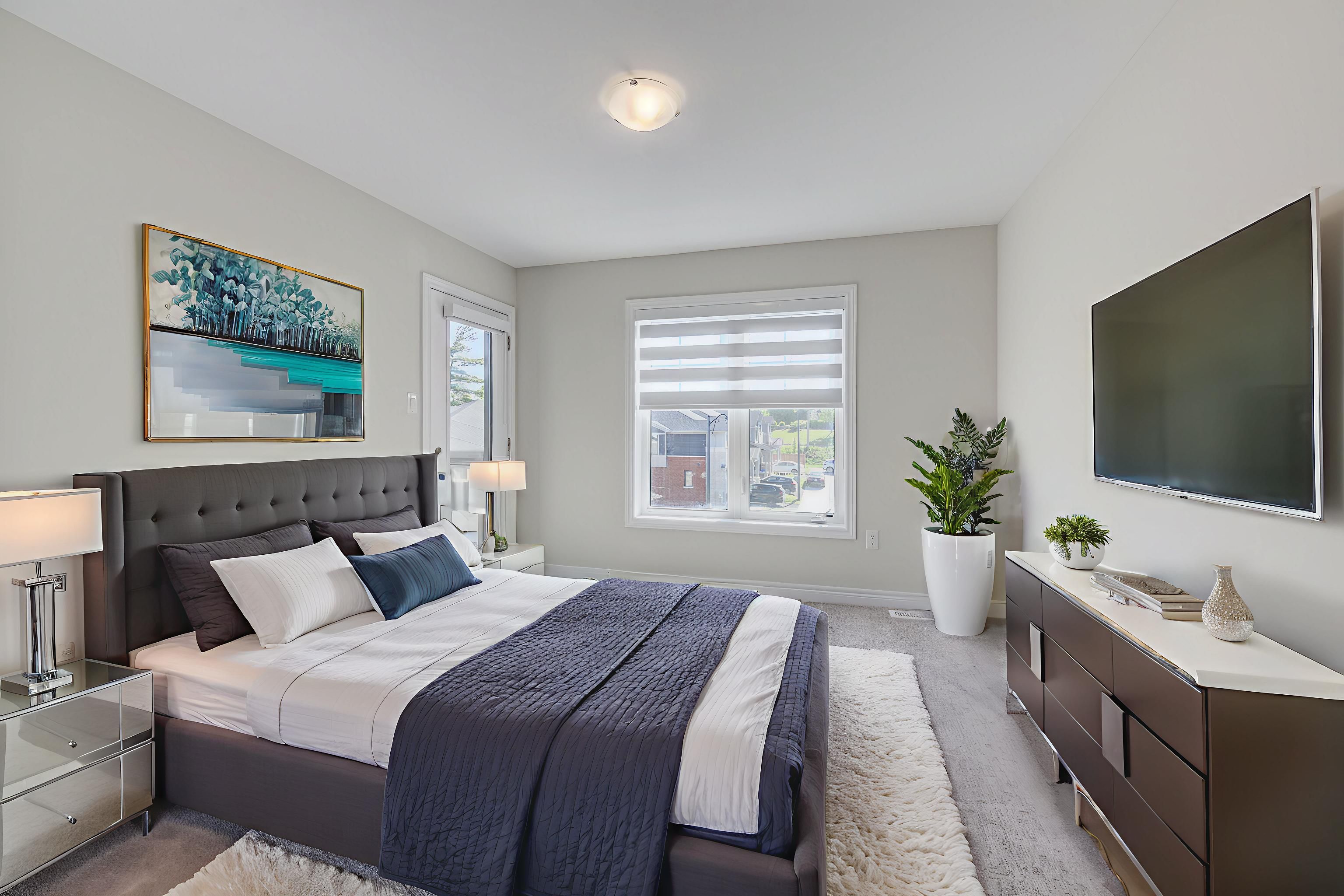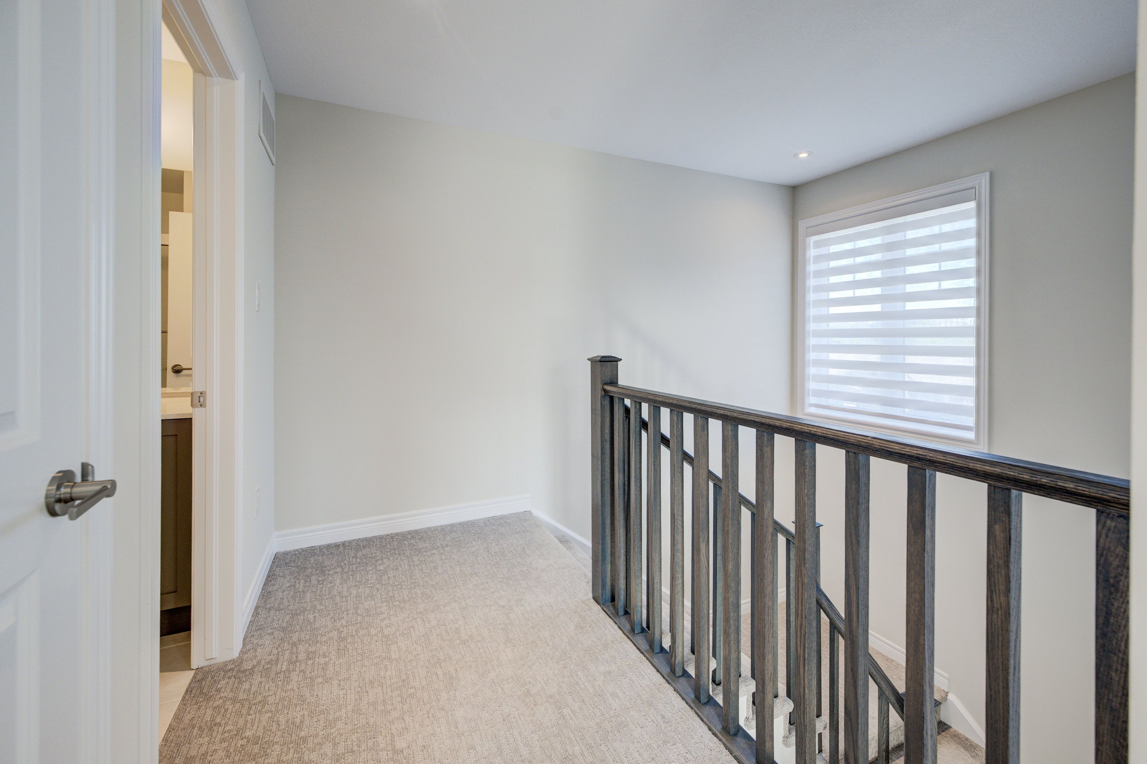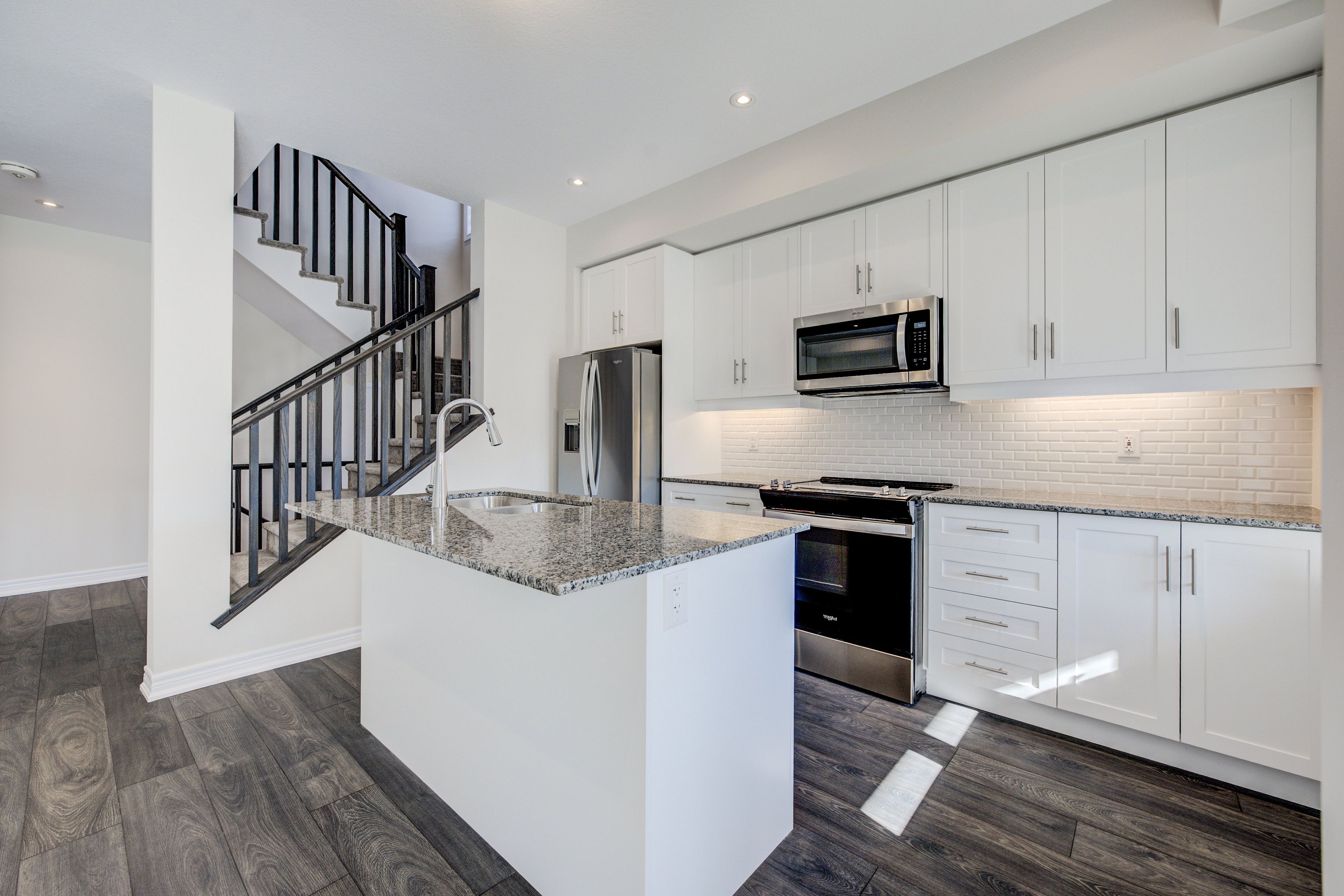 Stylish. Spacious. Steps from it all. Welcome to your next chapter in this modern townhome-#116-10 birmingham drive, cambridge. Tucked into a vibrant and walkable community, this home spans 3 thoughtfully designed levels and offers over 1,350 sq ft of sun-filled living space. From the moment you step inside, you're greeted by contemporary finishes and a bright, open-concept layout that feels both welcoming and functional. The heart of the home is the main living area-anchored by a sleek kitchen featuring granite countertops, stainless steel appliances, custom 39" upper cabinetry with led lighting, and a breakfast bar perfect for casual meals or morning coffees. The adjoining family room flows effortlessly to a private, covered terrace balcony-an ideal spot to relax and unwind. Upstairs, the primary retreat is your private escape, complete with a walk-in closet, private balcony, and upgraded blackout blinds. A second bedroom offers ample space for guests, family, or a home office, while designer carpet and mirrored closets elevate the space. The 4pc bathroom completes this level. The ground level offers bonus flexibility with in-suite laundry and convenient interior access to the garage-plus a second private entrance and your own driveway. With two-car parking (garage + driveway), upgraded pot lights, smart storage, smart exterior lights, 200amp panel, and custom window treatments throughout, every detail has been carefully curated. Located just minutes from shops, restaurants, parks, schools, and highway access, this move-in-ready home checks every box. Whether you're a first-time buyer, busy professional, or savvy investor-this is one you don't want to miss. Photos are virtually staged.