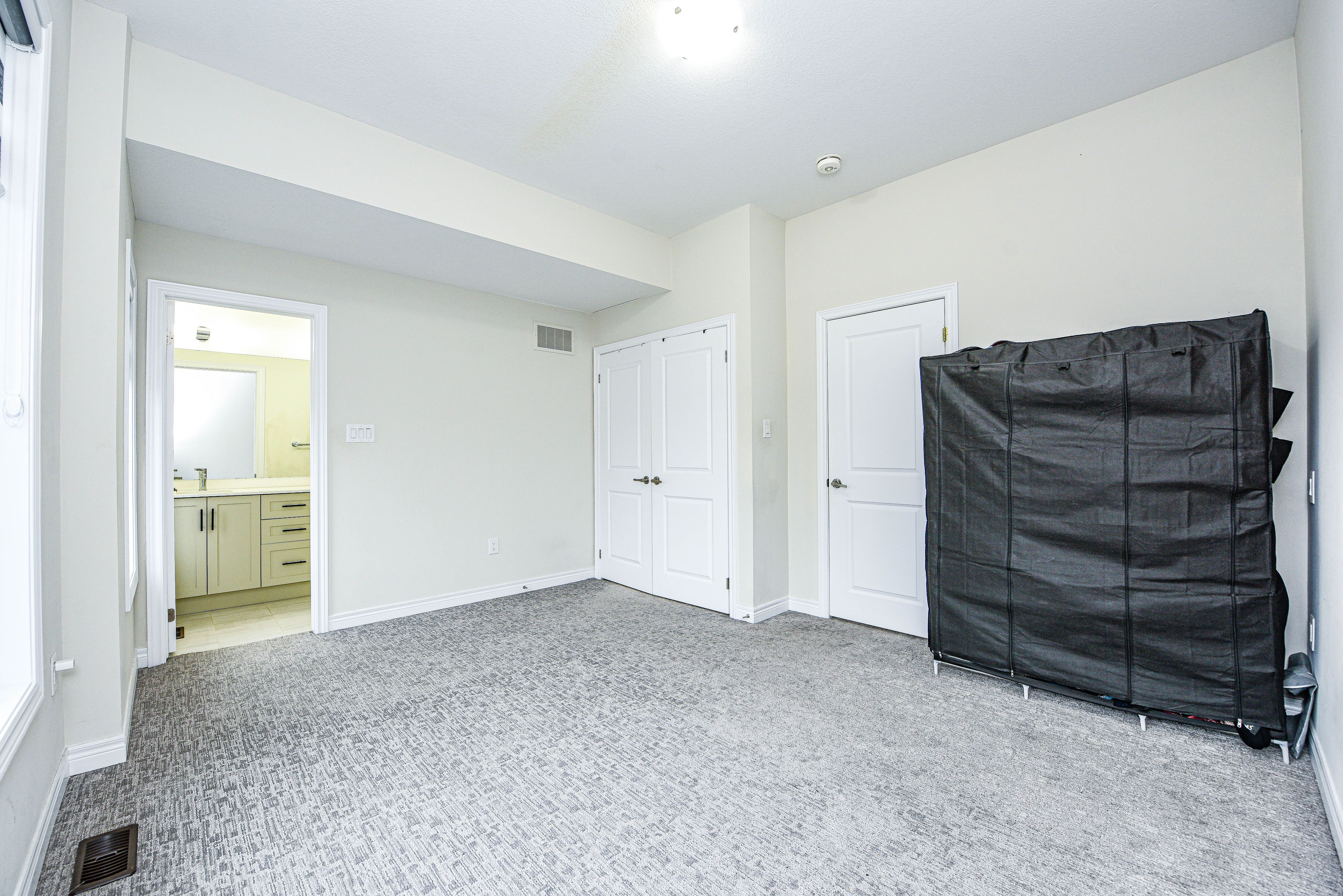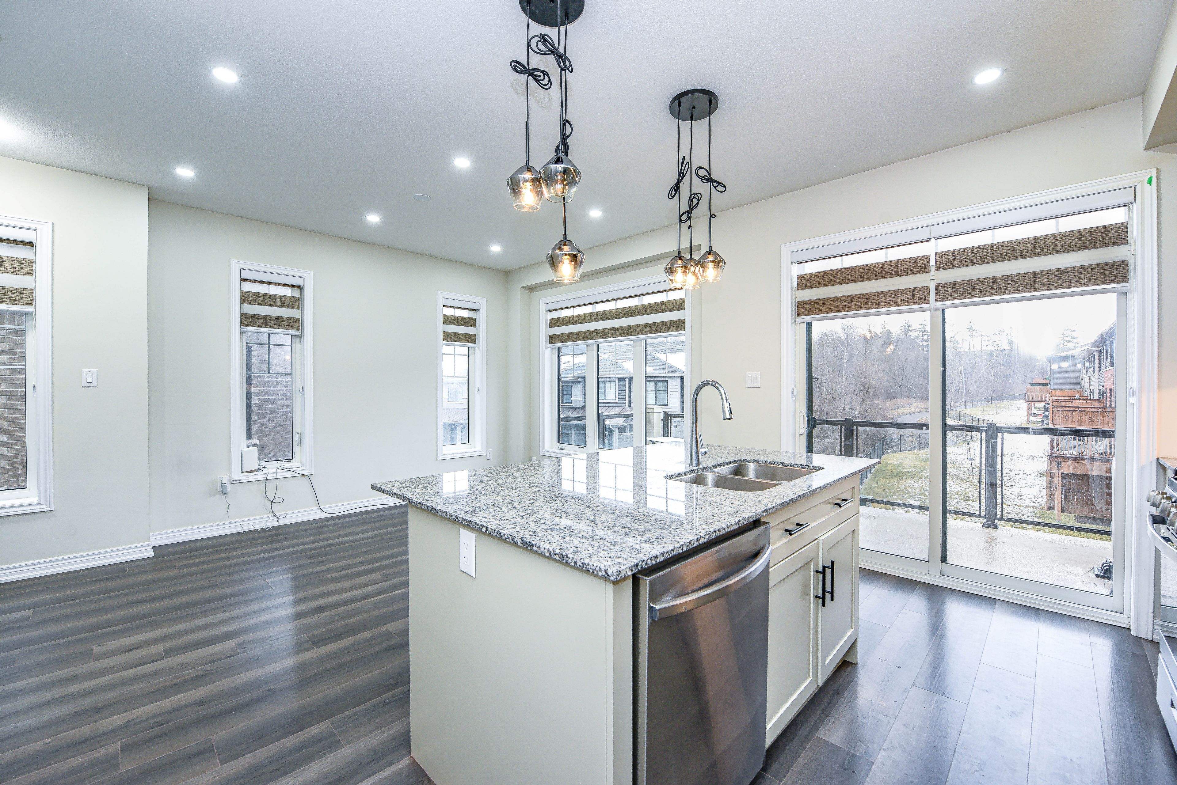 End unit like semi-detached, double garage townhouse with 4 parkings. Basement with 2nd unit rental potential! Experience the space of a detached home at the price of a townhome! This rare opportunity, just minutes from hwy 401 and steps from the cambridge shopping plaza, offers unbeatable convenience with every amenity within walking distance and public transit just a 5-minute walk away. This spacious 4-bedroom, 3. 5-bathroom townhome sits on a premium lot, facing to park, with nearly 2000 plus sq ft. Of total living space. Step inside to discover modern features and an open-concept layout that includes a large balcony. The main floor boasts 9-foot ceilings, upgraded tiles, and a guest room with a private ensuite bathroom, offering direct access to the park. Perfect for visitors or as a private retreat. On the second floor, you'll find a stylish kitchen complete with stainless steel appliances, quartz countertops, an extended breakfast bar, and pot lights. The open design flows seamlessly into the dining area, creating a perfect space for family gatherings and entertaining. Just steps away, the expansive living room offers abundant natural light and stunning views of the park, with no direct neighbors behind. The second-floor laundry and a convenient powder room add to the functional layout. Ascend the wide staircase to the third floor, where you'll find three generously sized bedrooms. The primary bedroom features a luxurious 4-piece ensuite with double sinks, a frameless glass shower, and quartz countertops. The two additional bedrooms share a well-appointed main bathroom. With 4 parking spaces, modern upgrades, and an unbeatable location, this townhome offers incredible value. Don't miss out! $107. 95/monthly potl covers common areas grass cutting & snow removal.