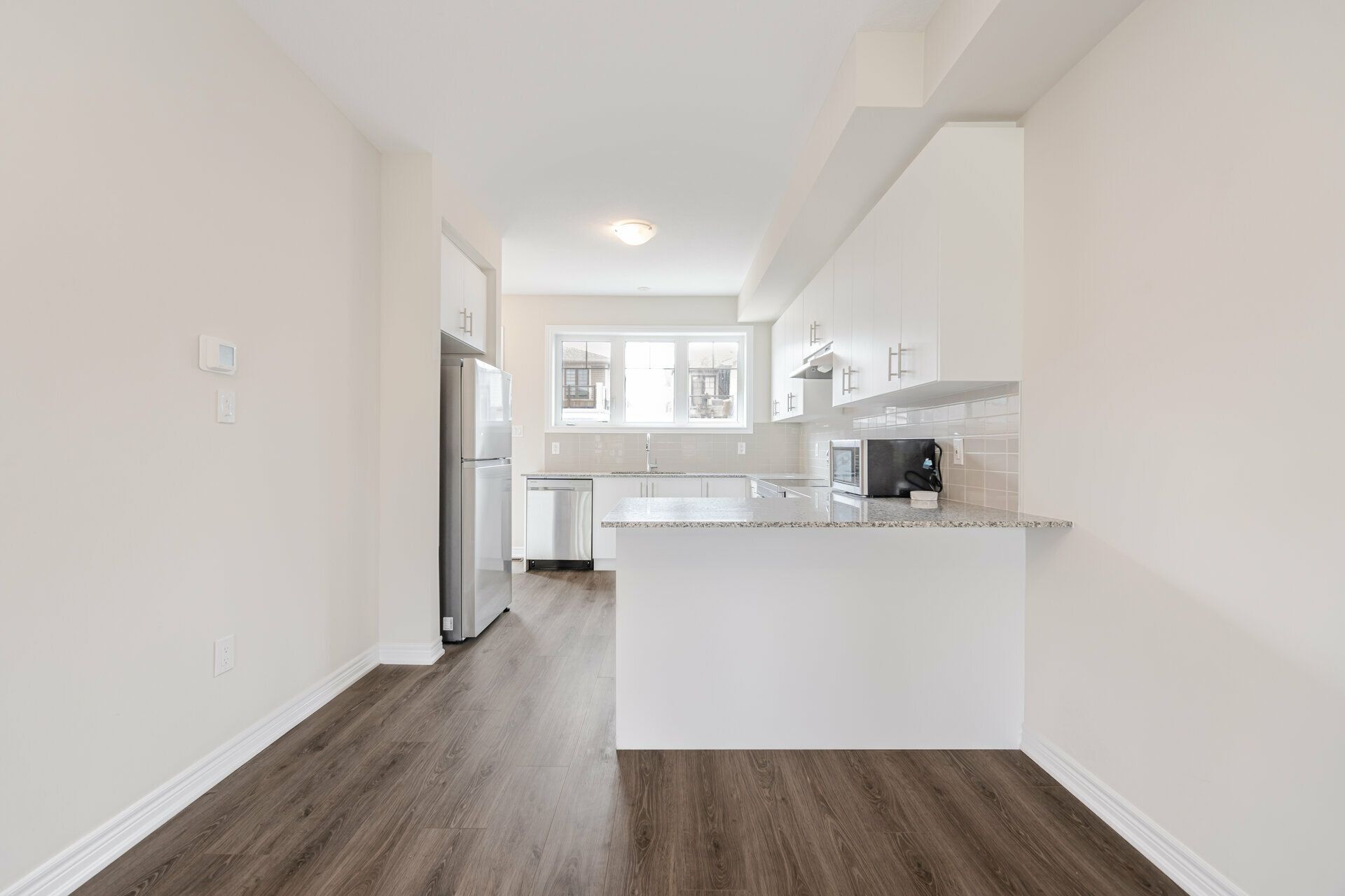 This modern, nearly new end-unit townhome in cambridge's desirable galt north area offers a spacious 4-bedroom, 2. 5-bath layout. Ideally located less than 5 minutes from highway 401, it features an open-concept design with generous living spaces, contemporary finishes, and elegant granite countertops with a matching backsplash. The second floor includes convenient in-suite laundry. Additional highlights include a single garage with direct access and a driveway accommodating two vehicles. Large windows fill the home with natural light, showcasing the sleek kitchen with stainless steel appliances and modern design. Enjoy your private balcony for relaxation and ample storage with thoughtfully designed closets. Perfectly situated close to shopping, dining, and major highways - all amenities are just minutes away.