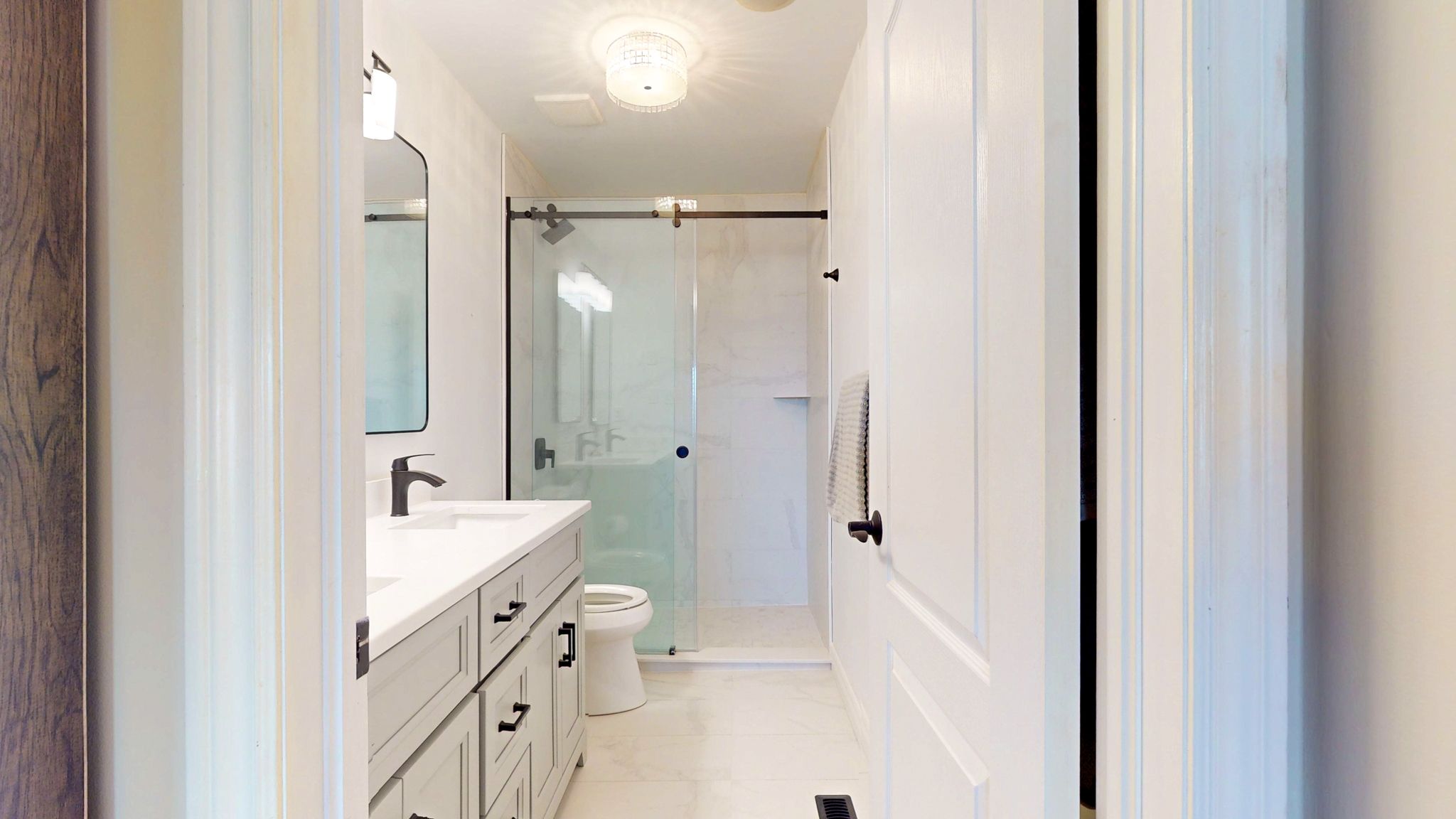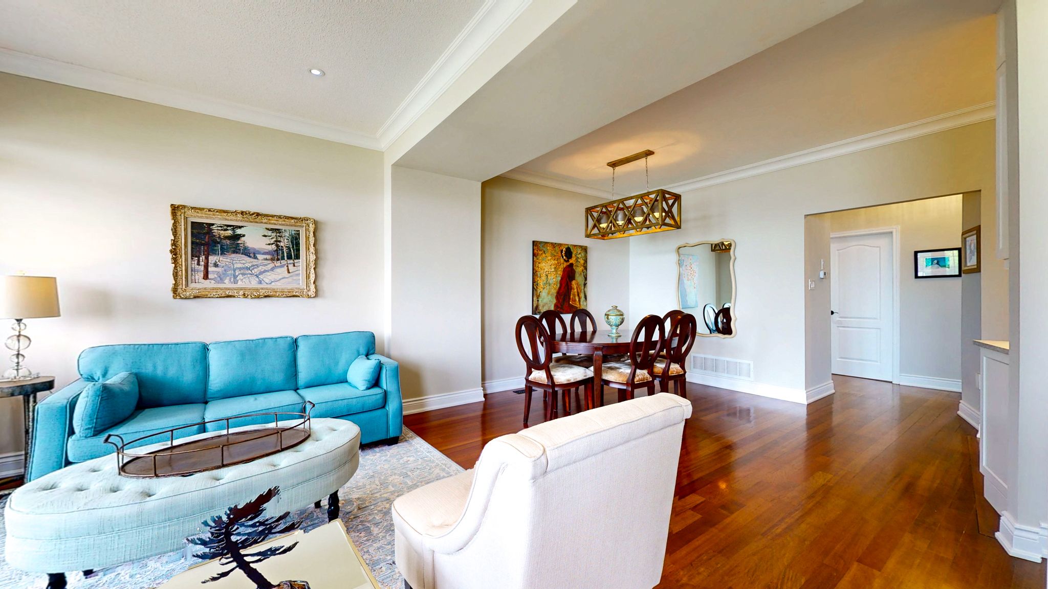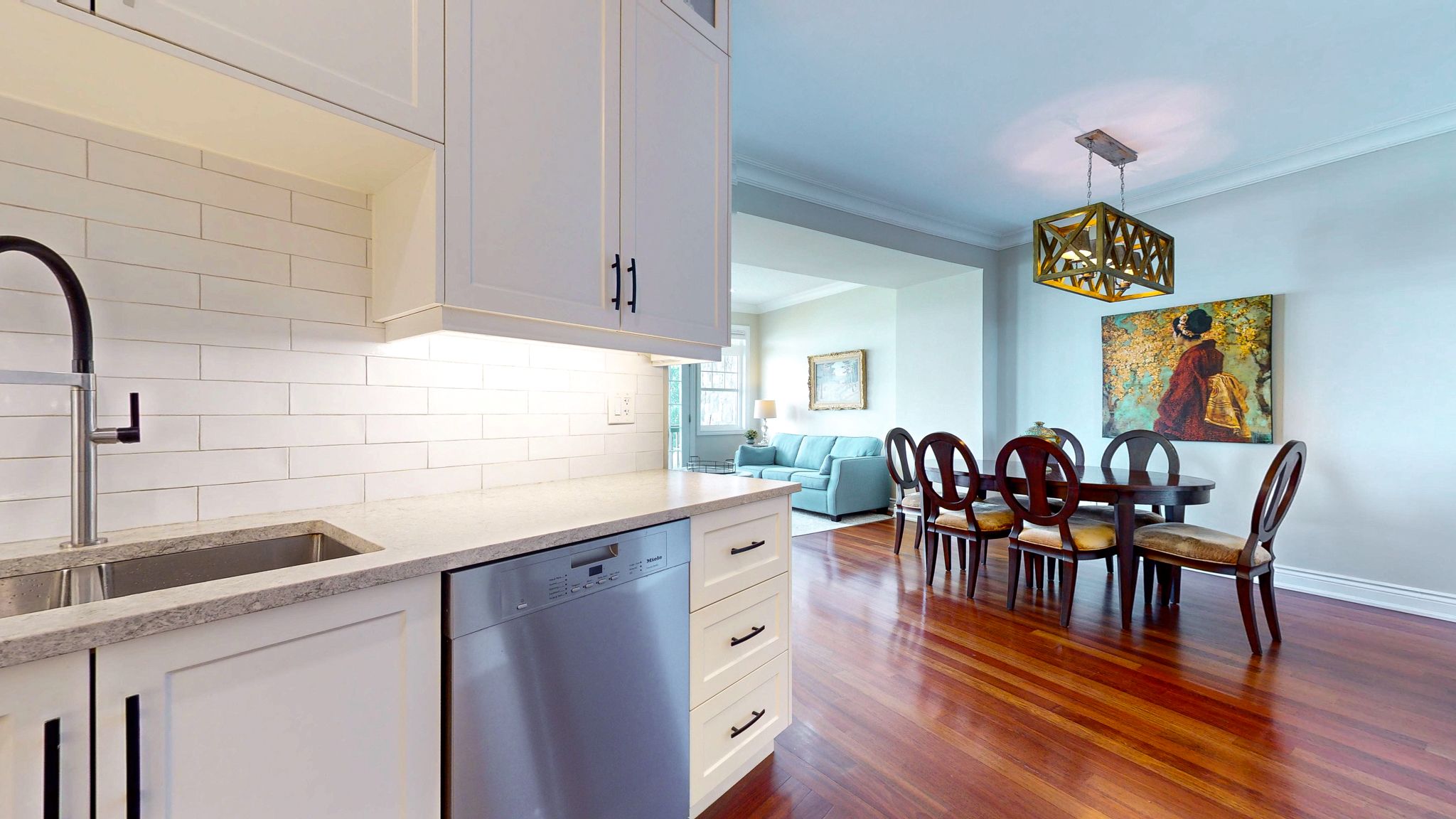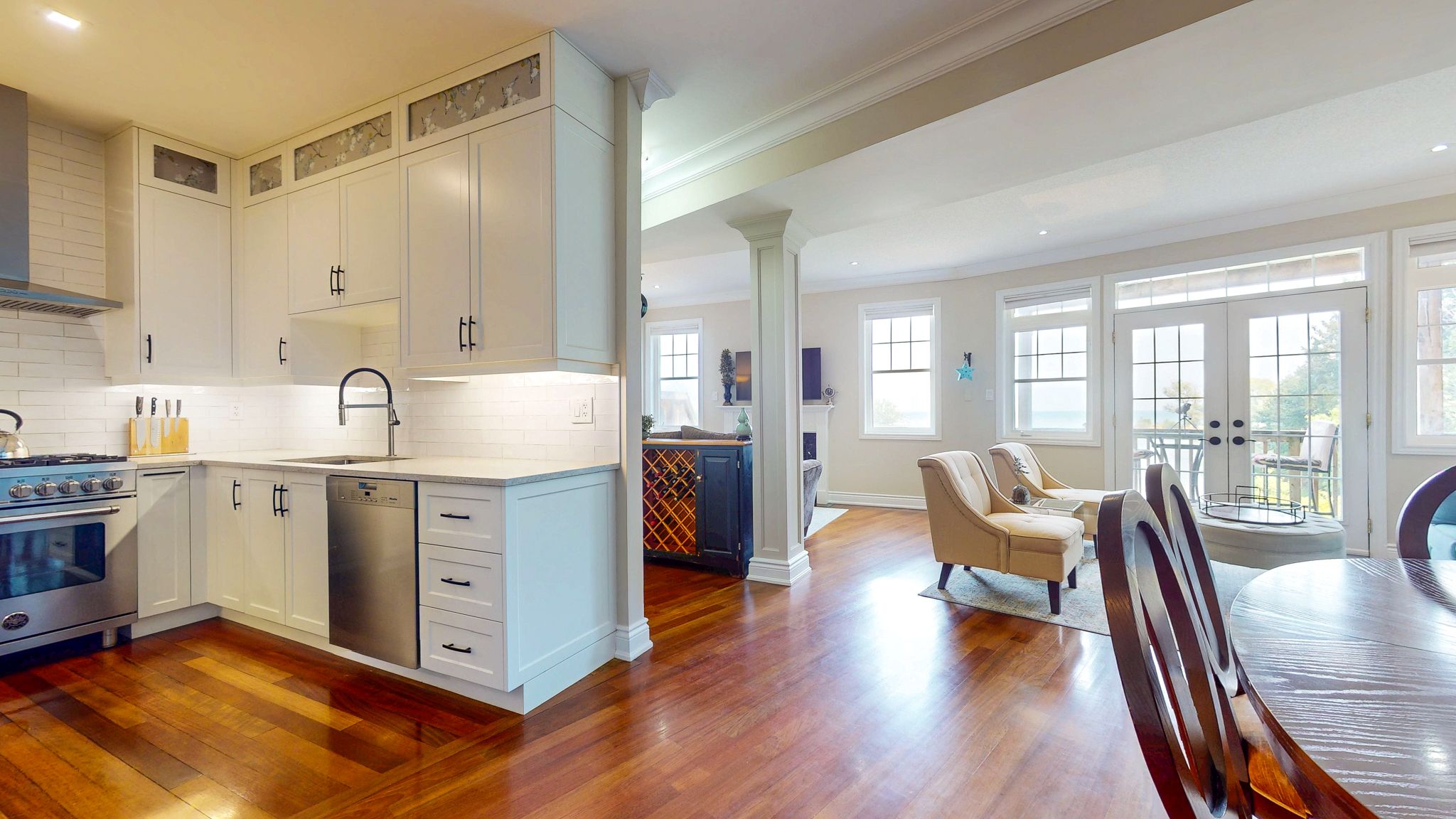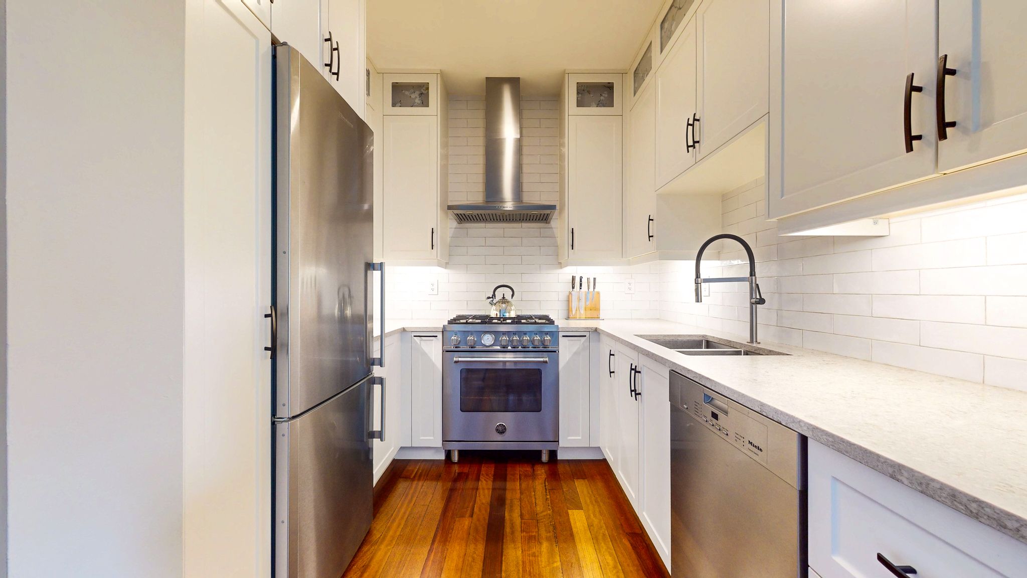 • Modern chef's kitchen with premium appliances and quartz counters.