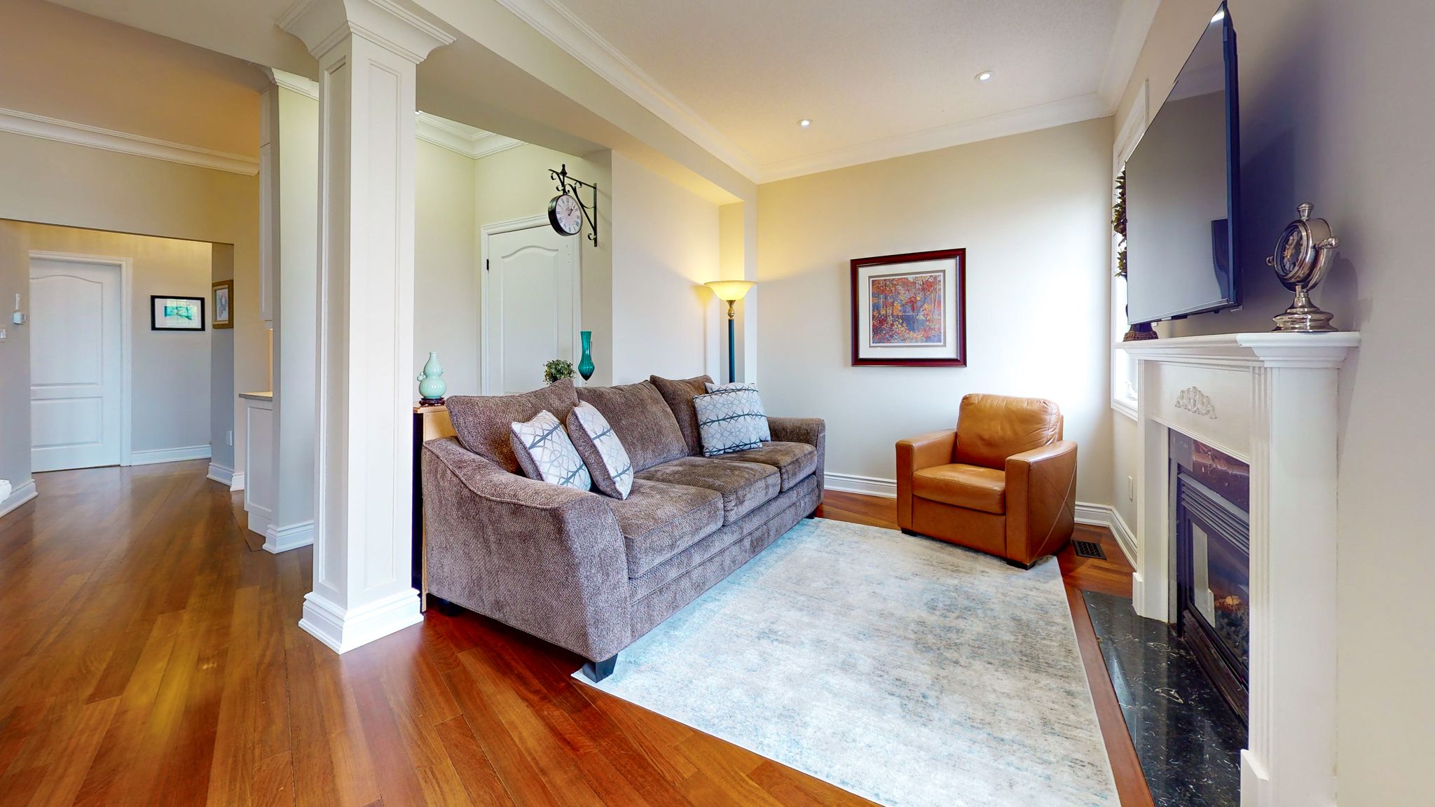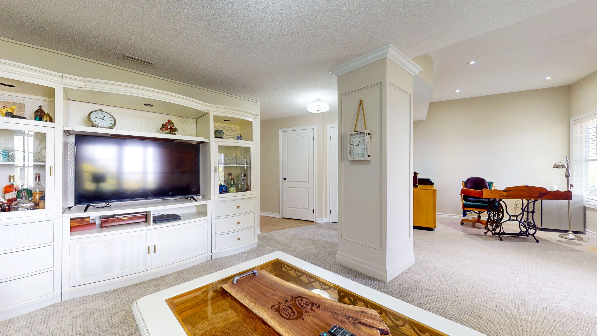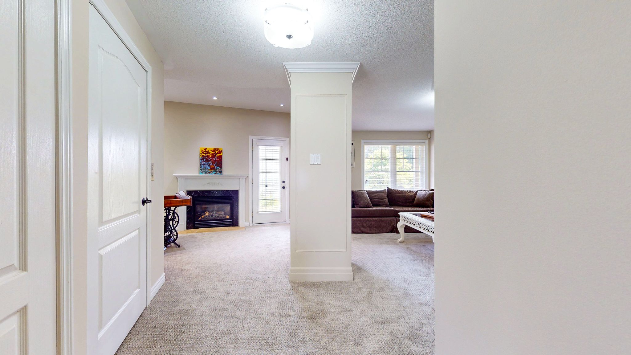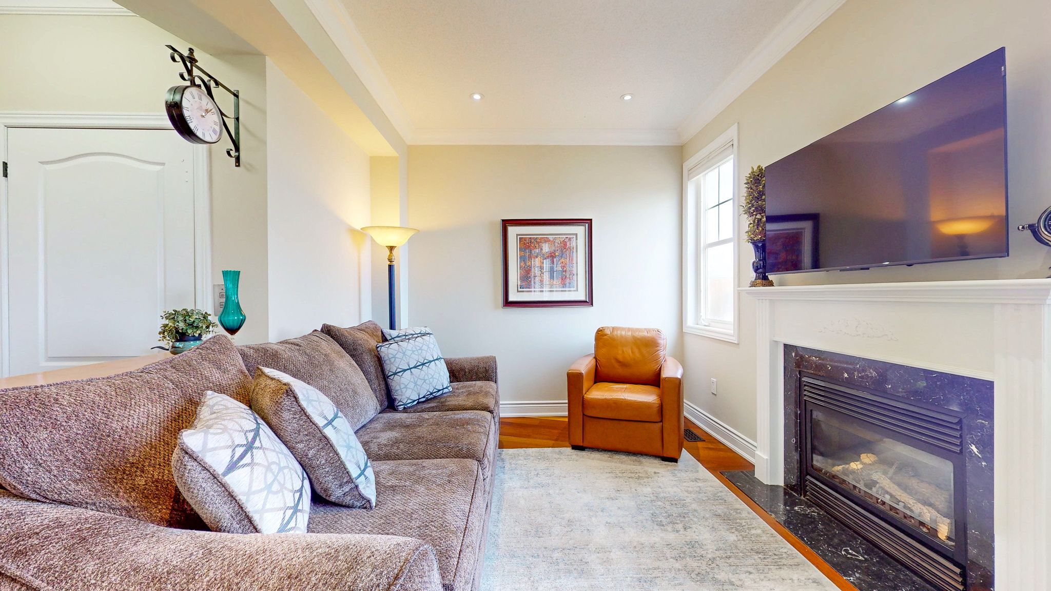• Large family room with fireplace and terrace, great for relaxation.