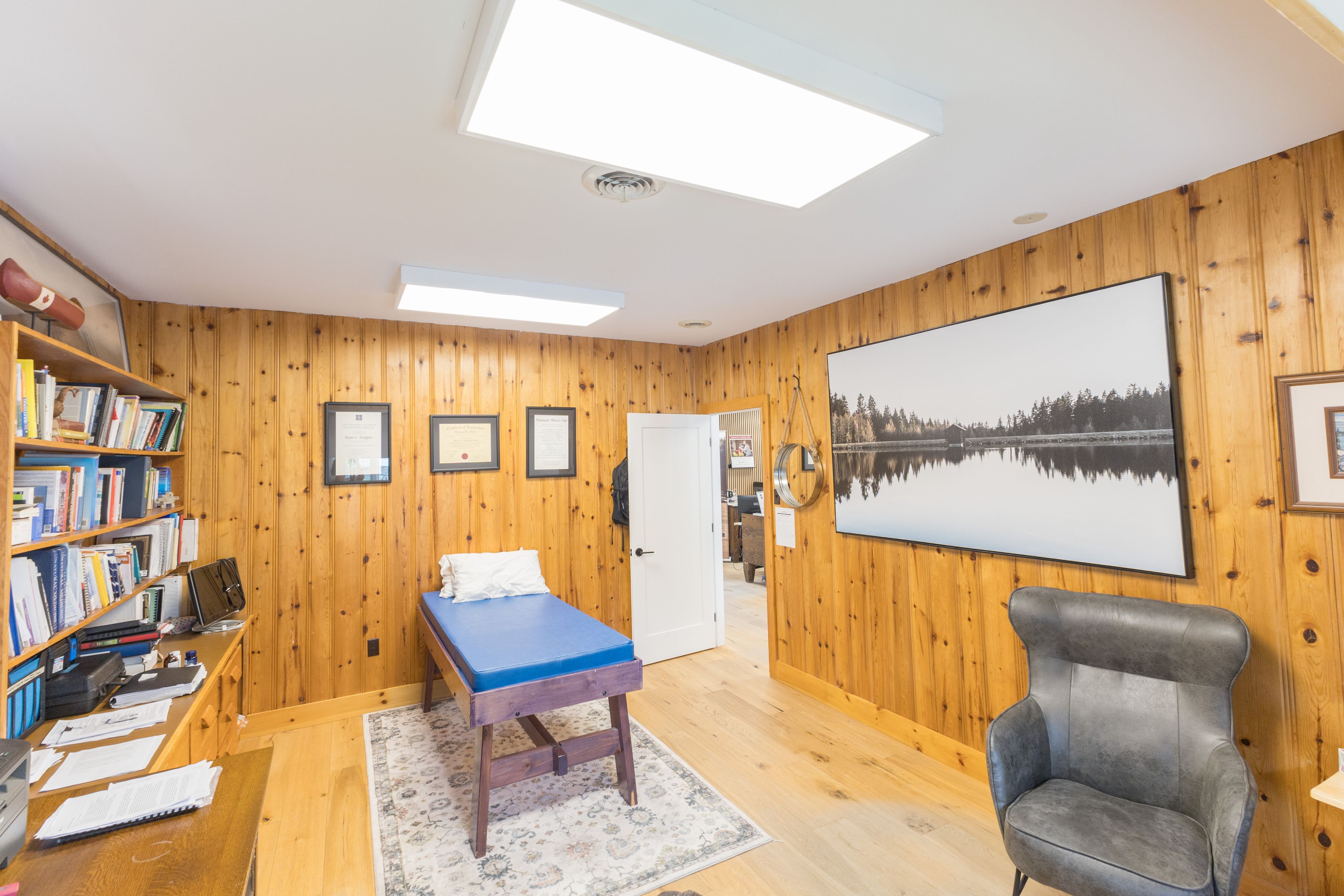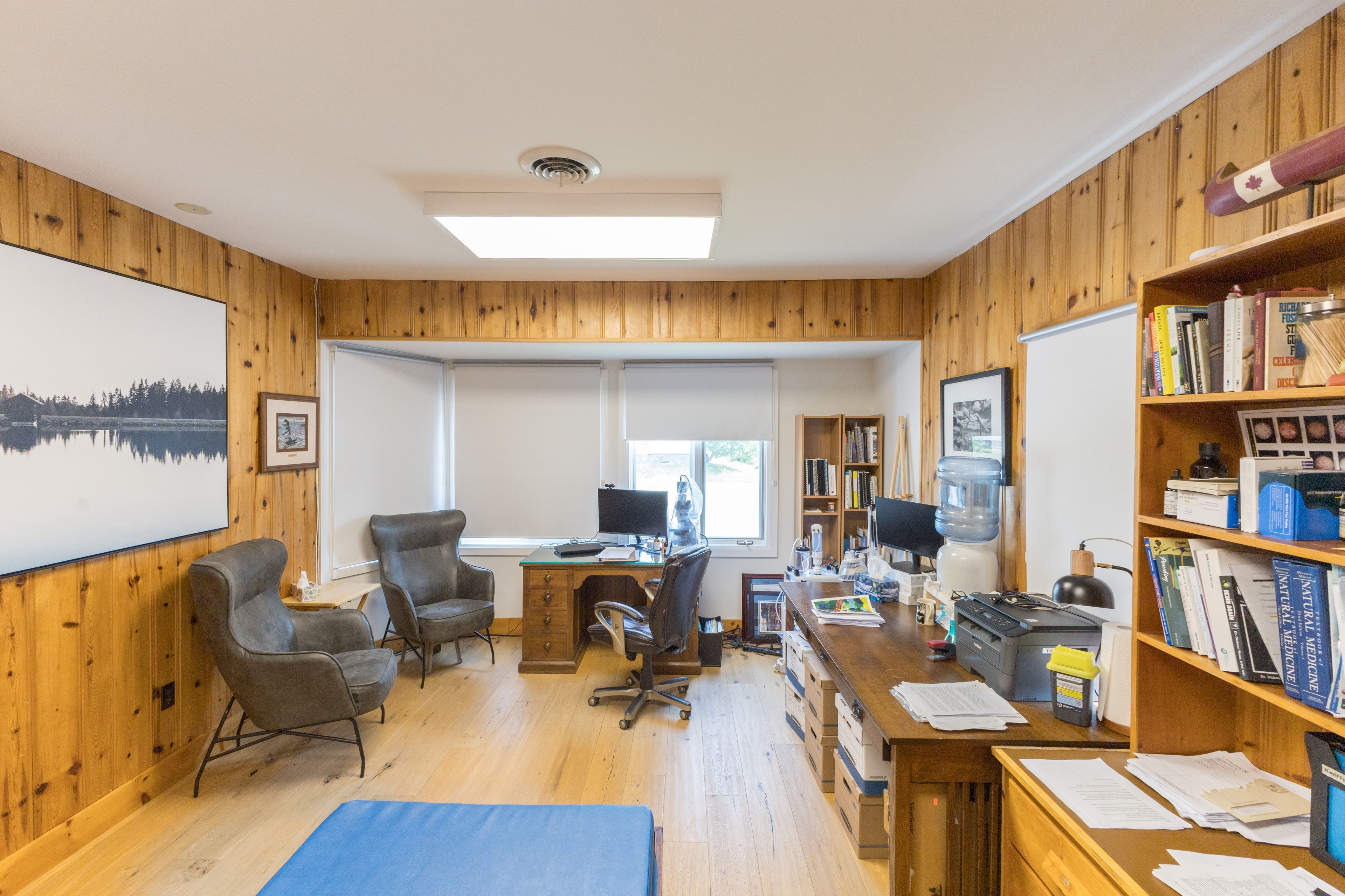 Ideal location for a commercial building featuring two available lease spaces. One is occupied by a triple-a long-term tenant, while the other is vacant and ready for leasing. This prime location in downtown huntsville is just steps away from main street, the muskoka river, the renowned swing bridge, and the lively community that huntsville provides. The upper level boasts a spacious 1,500 square foot bright office area with walk-in entry. It is equipped with fibre internet and phone connectivity. The space includes enhancements such as caesarstone countertops in the kitchen and bathroom, solid engineered hardwood flooring, and robust interior doors. Additionally, there is a granite entryway and a wood-burning fireplace. The layout comprises three private, roomy offices, a large open workspace, a kitchen area, a bathroom with a shower, and two storage rooms. The renovations are quite impressive. The lower level features a wall of windows providing excellent street front visibility, situated near the intersection of main street and brunel, with a rare and commanding 33 feet of street-level frontage on brunel road. The 920 square foot area is designed with three offices, an open common area with a reception space, and one restroom. This property is located in the central business district with c7 zoning, allowing for a wide range of permitted uses, and includes six dedicated parking spots.