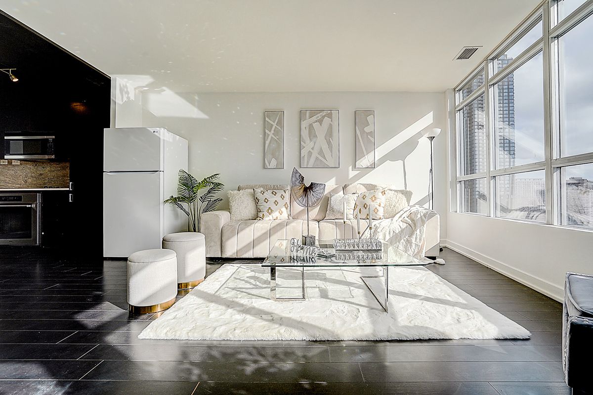 • Sunny south-facing model suite with oversized windows for great natural light.