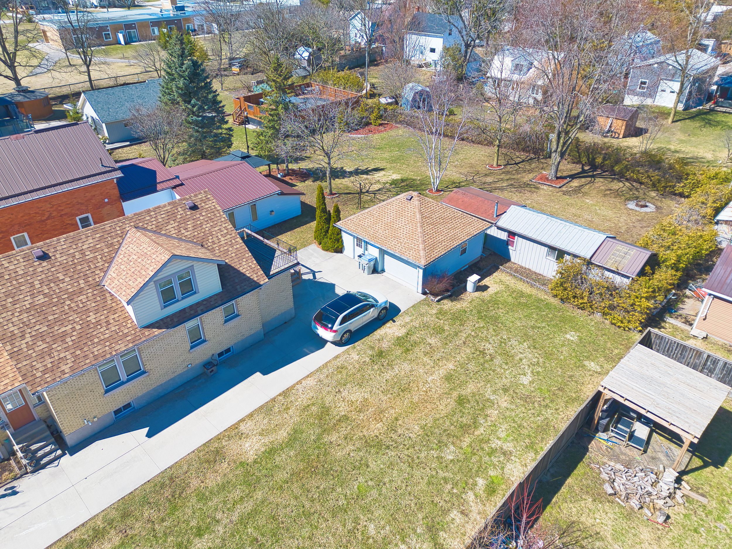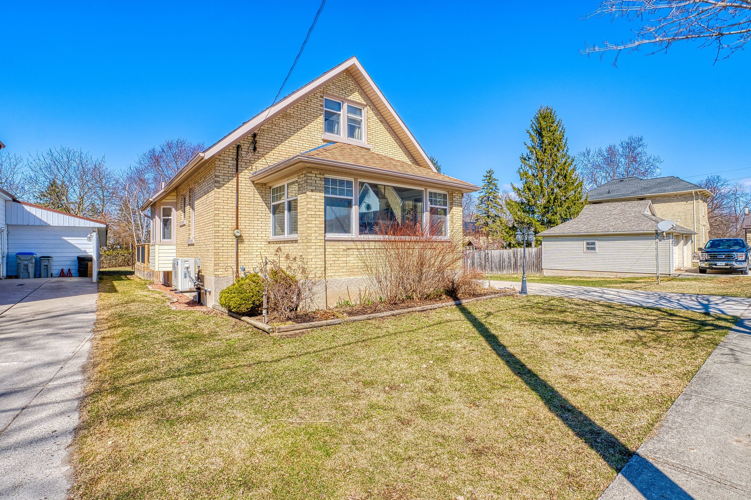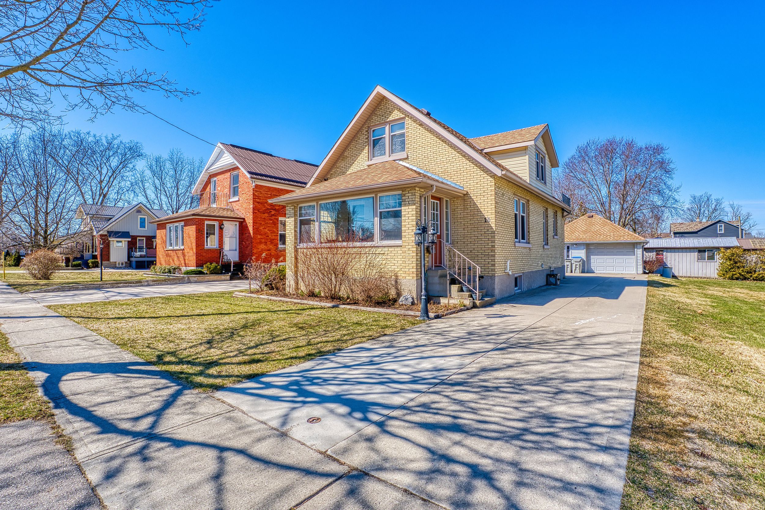 • Detached garage and wide driveway for convenient parking options.