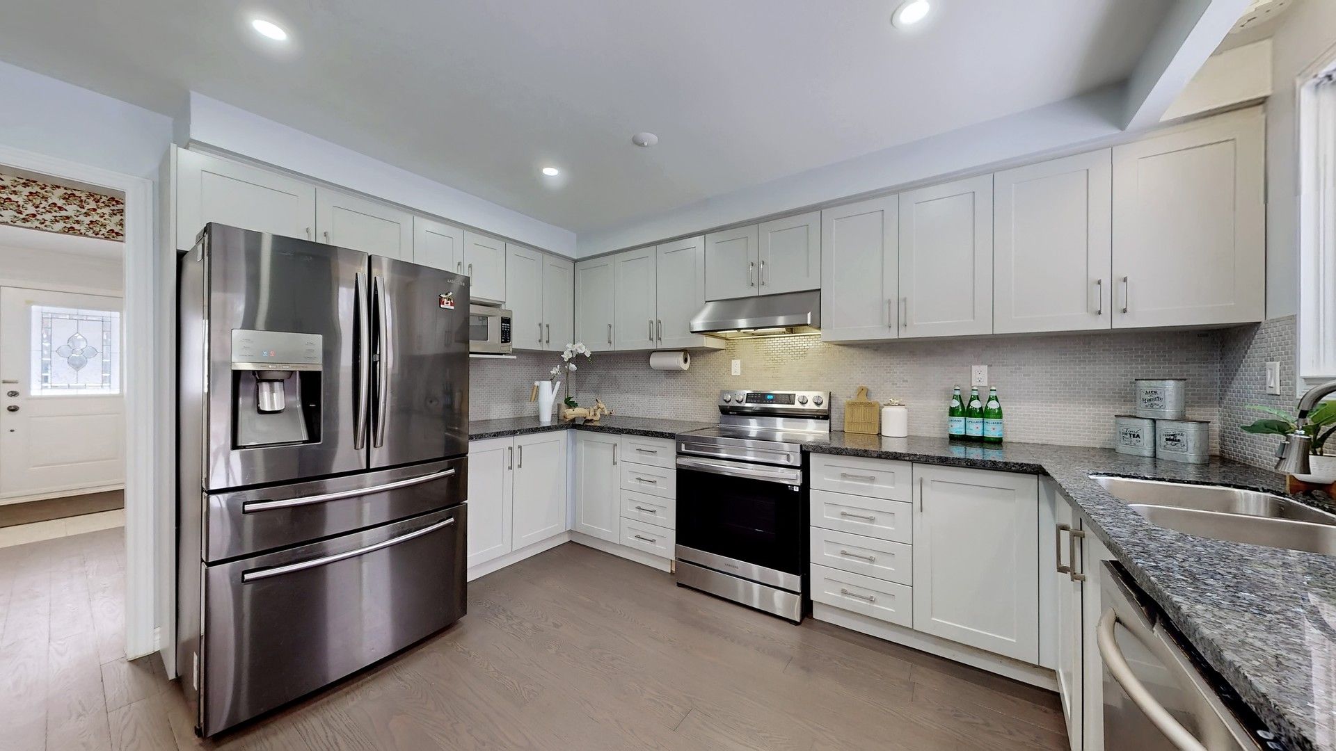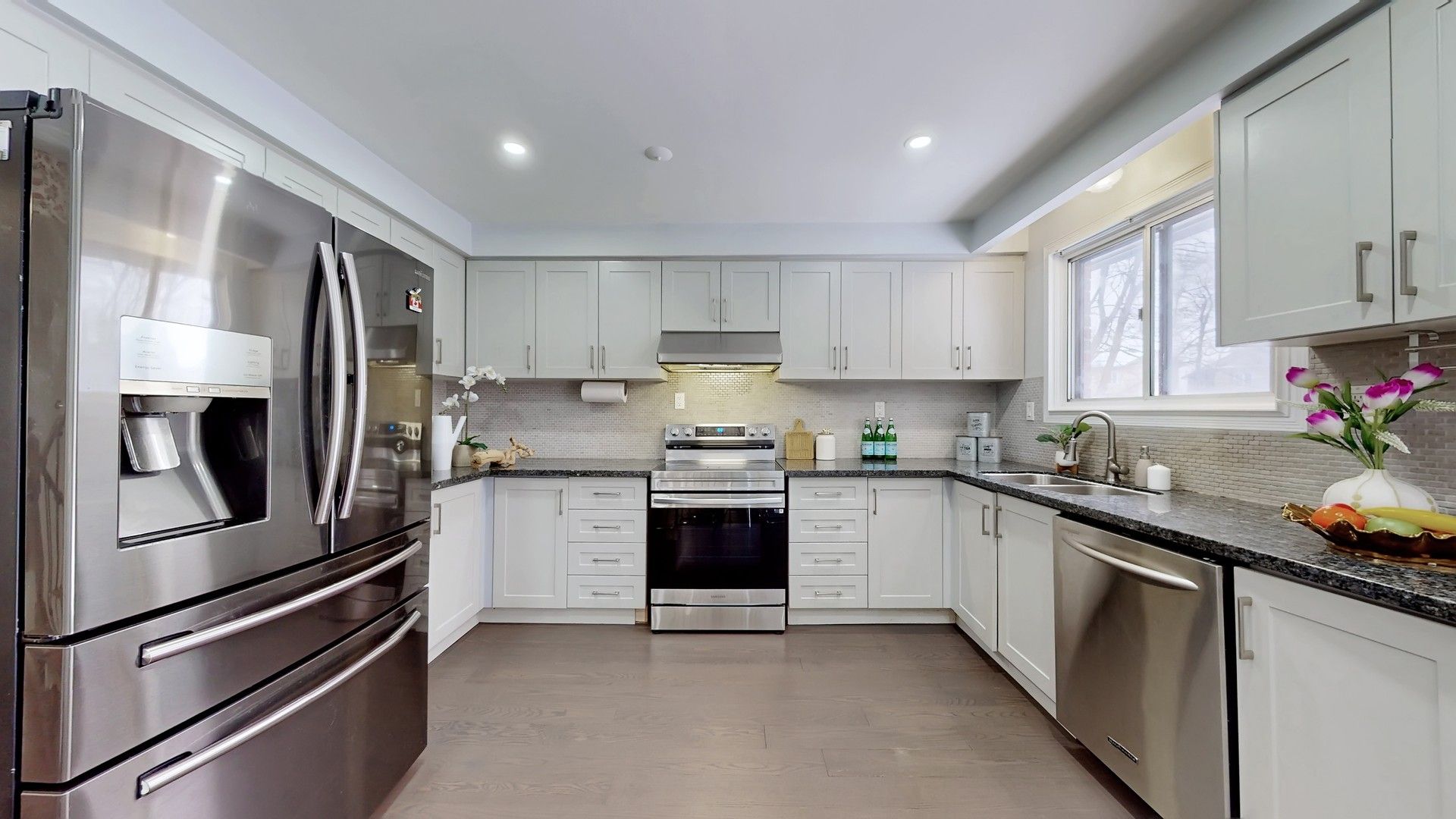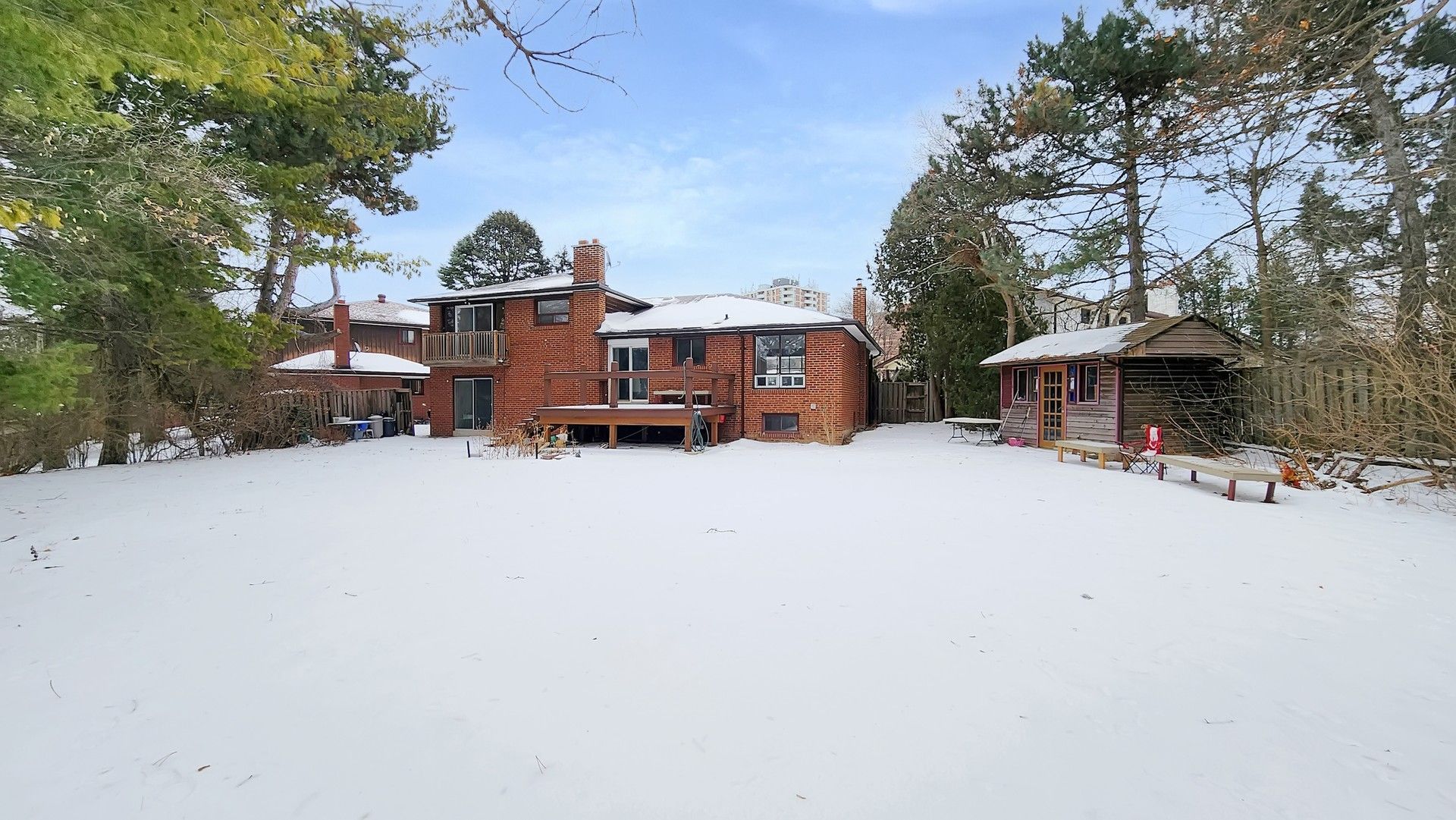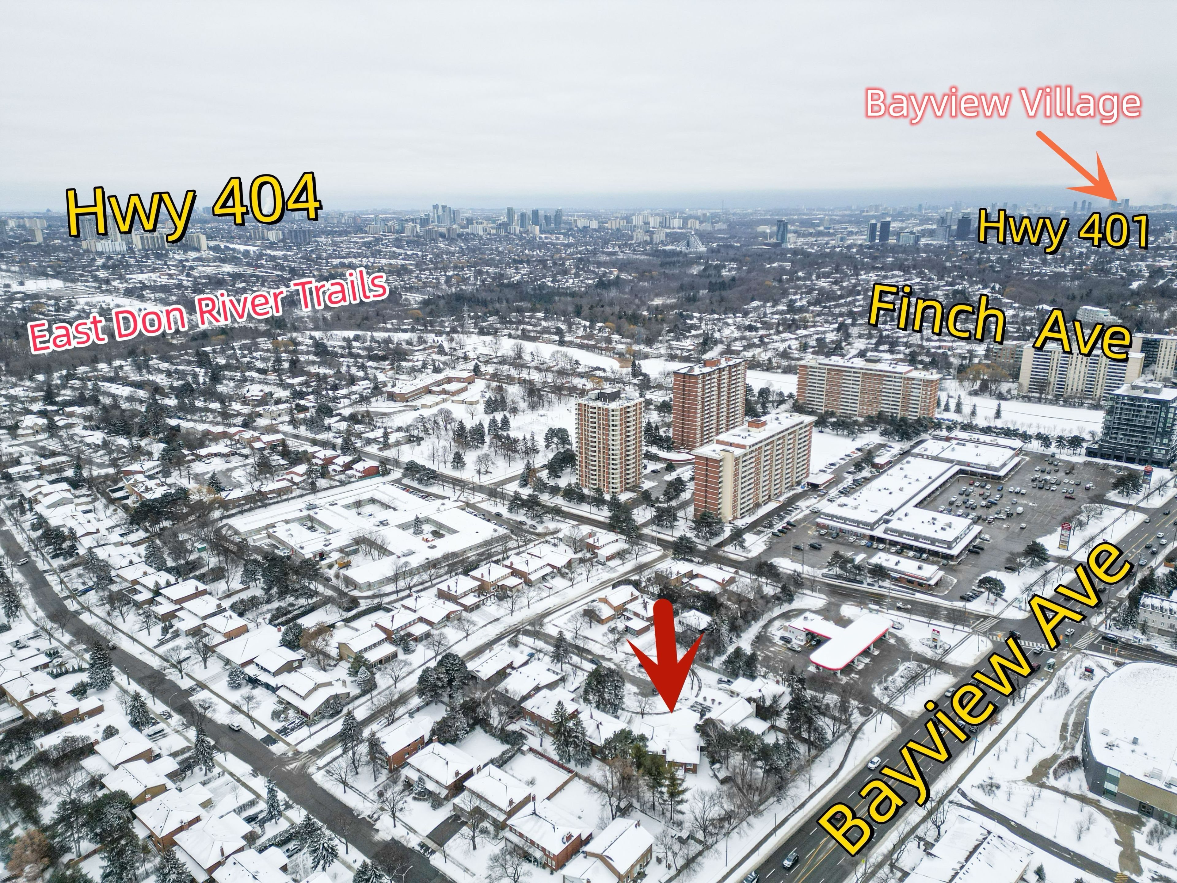 ***top-ranked school zone (a. Y. Jackson s. S. & zion heights m. S.)***rare opportunity to move right in or invest or build on this stunning, south-facing detached sidesplit-4-level with 4+2 bedroom home (total 3440 sf, above grade finished 2415 sf), situated on a premium 10,980+ sf pie-shaped lot in a quiet cul-de-sac, backing on bayview ave (often referred to as the "dragon vein line"). *top-bottom renovation completed in 2017-2018 & well-maintained. *this elegant home is ideal for families seeking generous living space and multiple bedrooms. *home features: double entry doors; a large foyer with double closet; a sun-filled porch offering peace & tranquility of the court; oak hardwood flooring on the lower, main & upper levels; laminate flooring in basement; pot lights throughout; spacious amazing living & dining areas with large picture windows; an open-concept kitchen with s/s appliances, granite counter-tops, eat-in kitchen, overlooking the family room, and w/o a large deck; wood-burning fireplaces in fabulous family room (w/o backyard patio) & large great rooms (combined with large cool room & crawl-space storage); a south viewed primary bedroom with w/i closet & 4-pc ensuite; a 2nd bedroom with w/o large balcony; a basement primary bedroom with 4-pc ensuite; side separate entrance via laundry room & powder room & storages (possible to add a shower); double garage plus 4-car driveway parking; large garden shed, and private backyard boundary via metal & wood fencing and mature lined trees. Huge now & near future developing potentials: build 2-storey 1200 sqft garden suite & make open concept main level by removing kitchen walls & add 700+ sf 2nd floor on side portion, etc.; or rebuild 4000+ sf luxury custom home; or possible land assembling by massive developments (buyer to verify zoning, permits & developing options). Prime location steps to ttc, plazas, parks, and biking/hiking trails, with quick access to subway, major malls / streets, and hwys 401/404/dvp/407.