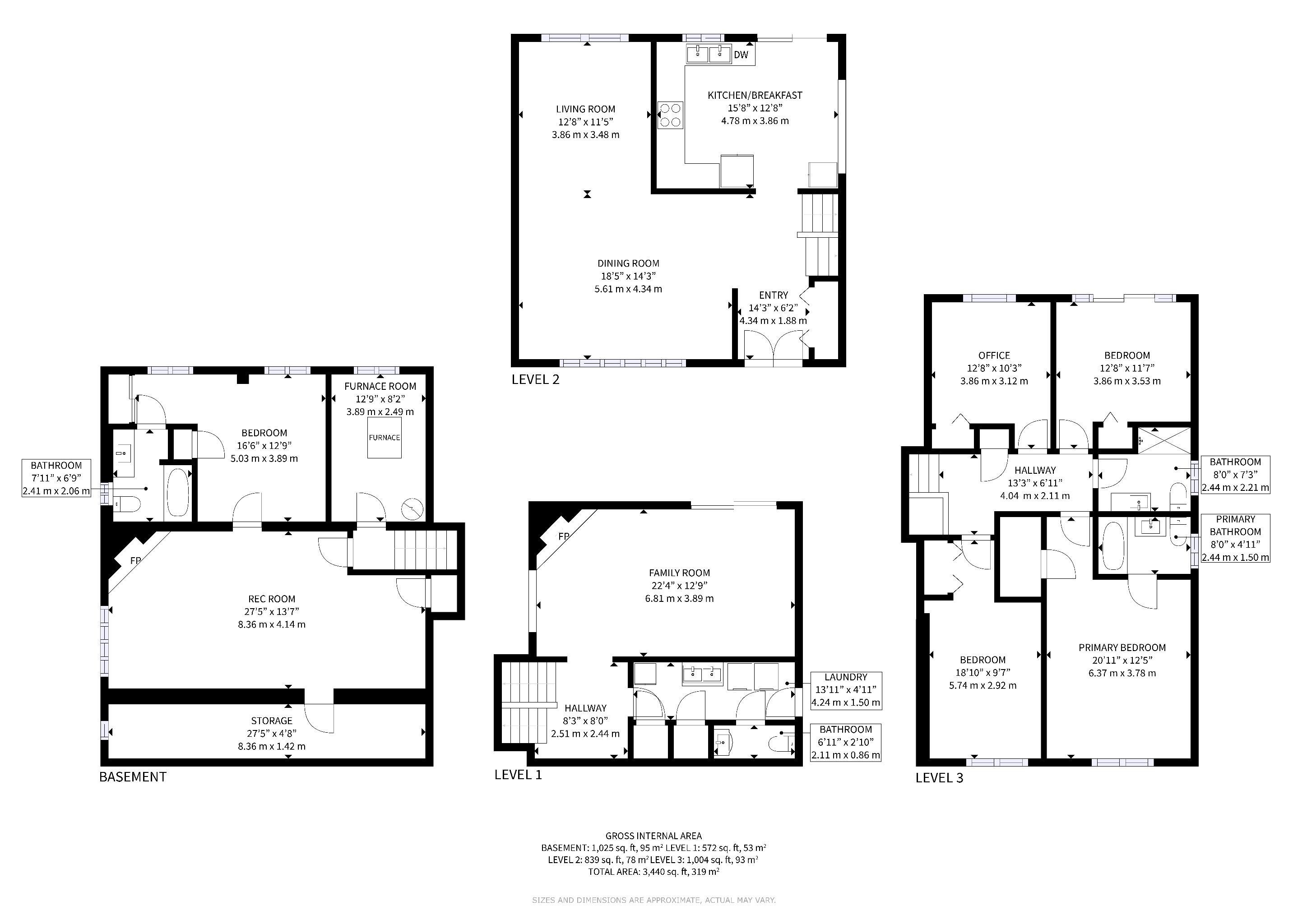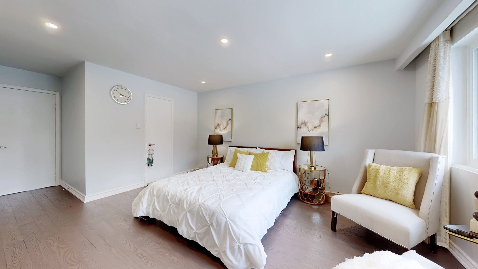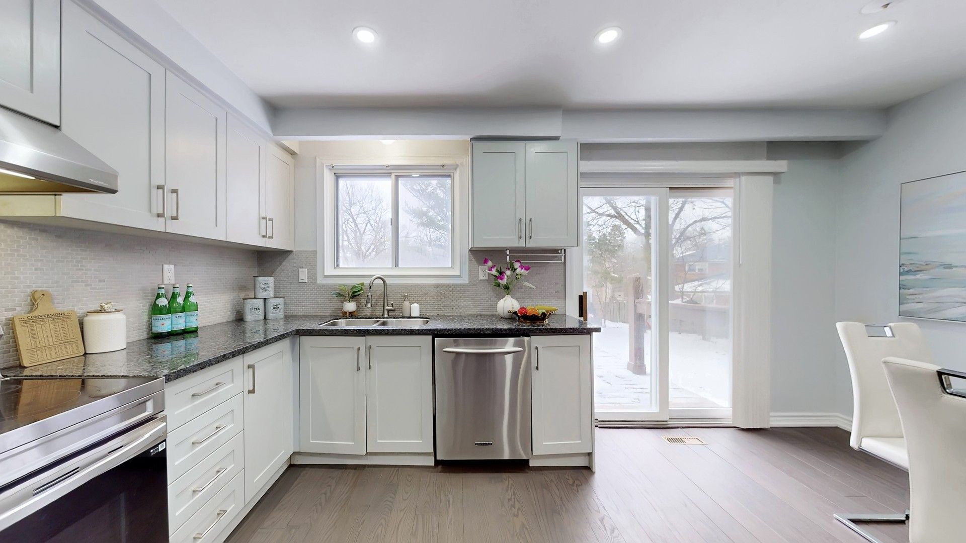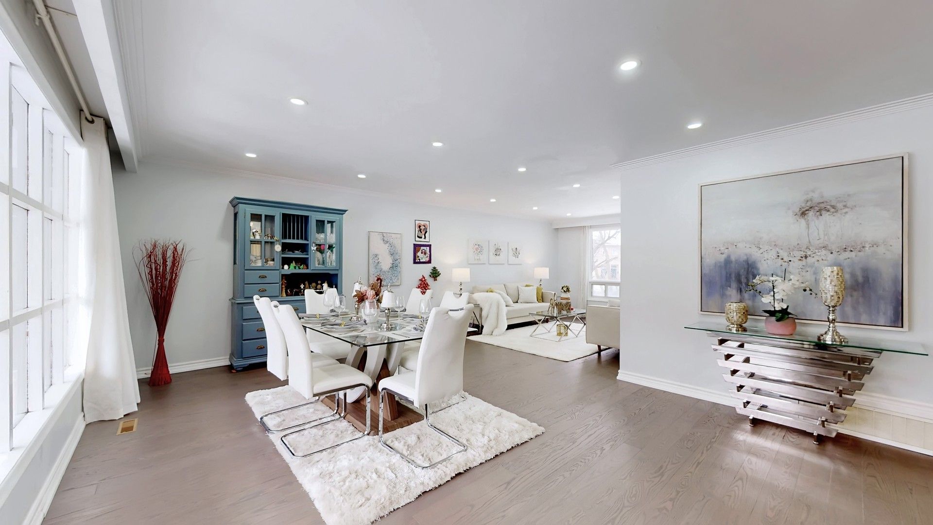 ***top-ranked school zone (a. Y. Jackson s. S. & zion heights m. S.)***rare opportunity to move right in or invest or build on this stunning, south-facing detached sidesplit-4-level with 4+2 bedroom home (total 3440 sf, above grade finished 2415 sf), situated on a premium 10,980+ sf pie-shaped lot in a quiet cul-de-sac, backing on bayview ave (often referred to as the "dragon vein line"). *top-bottom renovation completed in 2017-2018 & well-maintained. *this elegant home is ideal for families seeking generous living space and multiple bedrooms. *home features: double entry doors; a large foyer with double closet; a sun-filled porch offering peace & tranquility of the court; oak hardwood flooring on the lower, main & upper levels; laminate flooring in basement; pot lights throughout; spacious amazing living & dining areas with large picture windows; an open-concept kitchen with s/s appliances, granite counter-tops, eat-in kitchen, overlooking the family room, and w/o a large deck; wood-burning fireplaces in fabulous family room (w/o backyard patio) & large great rooms (combined with large cool room & crawl-space storage); a south viewed primary bedroom with w/i closet & 4-pc ensuite; a 2nd bedroom with w/o large balcony; a basement primary bedroom with 4-pc ensuite; side separate entrance via laundry room & powder room & storages (possible to add a shower); double garage plus 4-car driveway parking; large garden shed, and private backyard boundary via metal & wood fencing and mature lined trees. Huge now & near future developing potentials: build 2-storey 1200 sqft garden suite & make open concept main level by removing kitchen walls & add 700+ sf 2nd floor on side portion, etc.; or rebuild 4000+ sf luxury custom home; or possible land assembling by massive developments (buyer to verify zoning, permits & developing options). Prime location steps to ttc, plazas, parks, and biking/hiking trails, with quick access to subway, major malls / streets, and hwys 401/404/dvp/407.