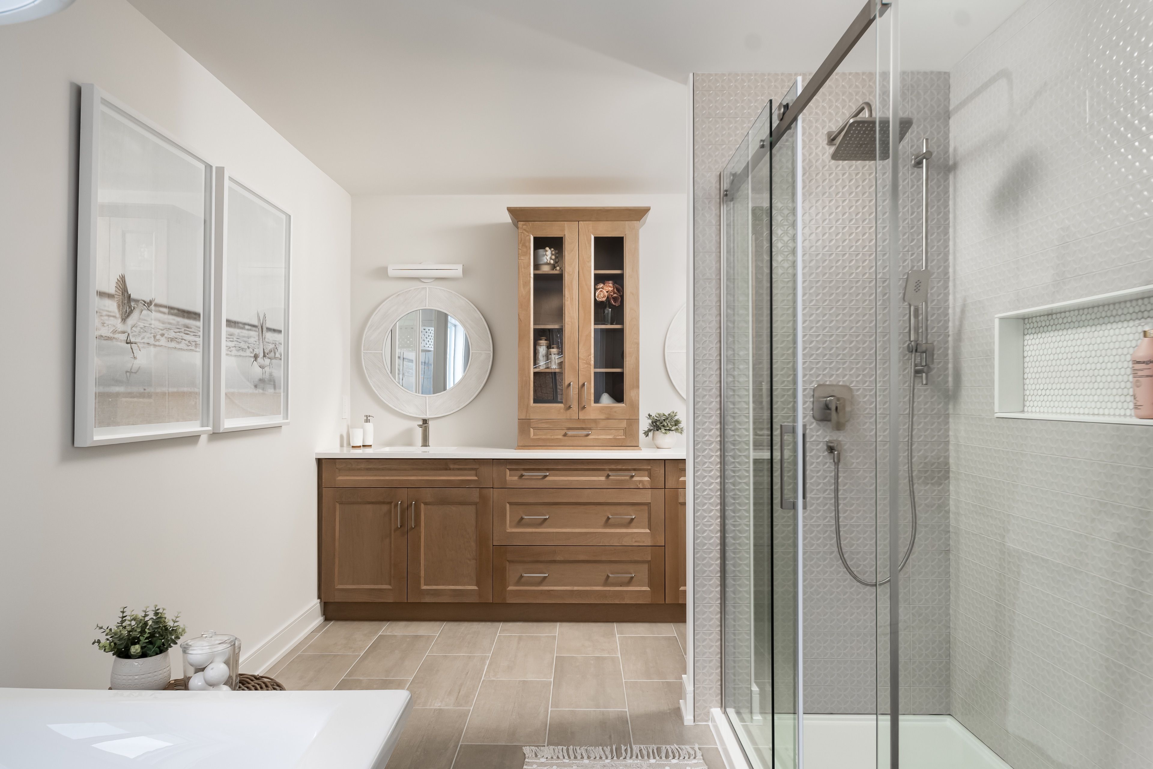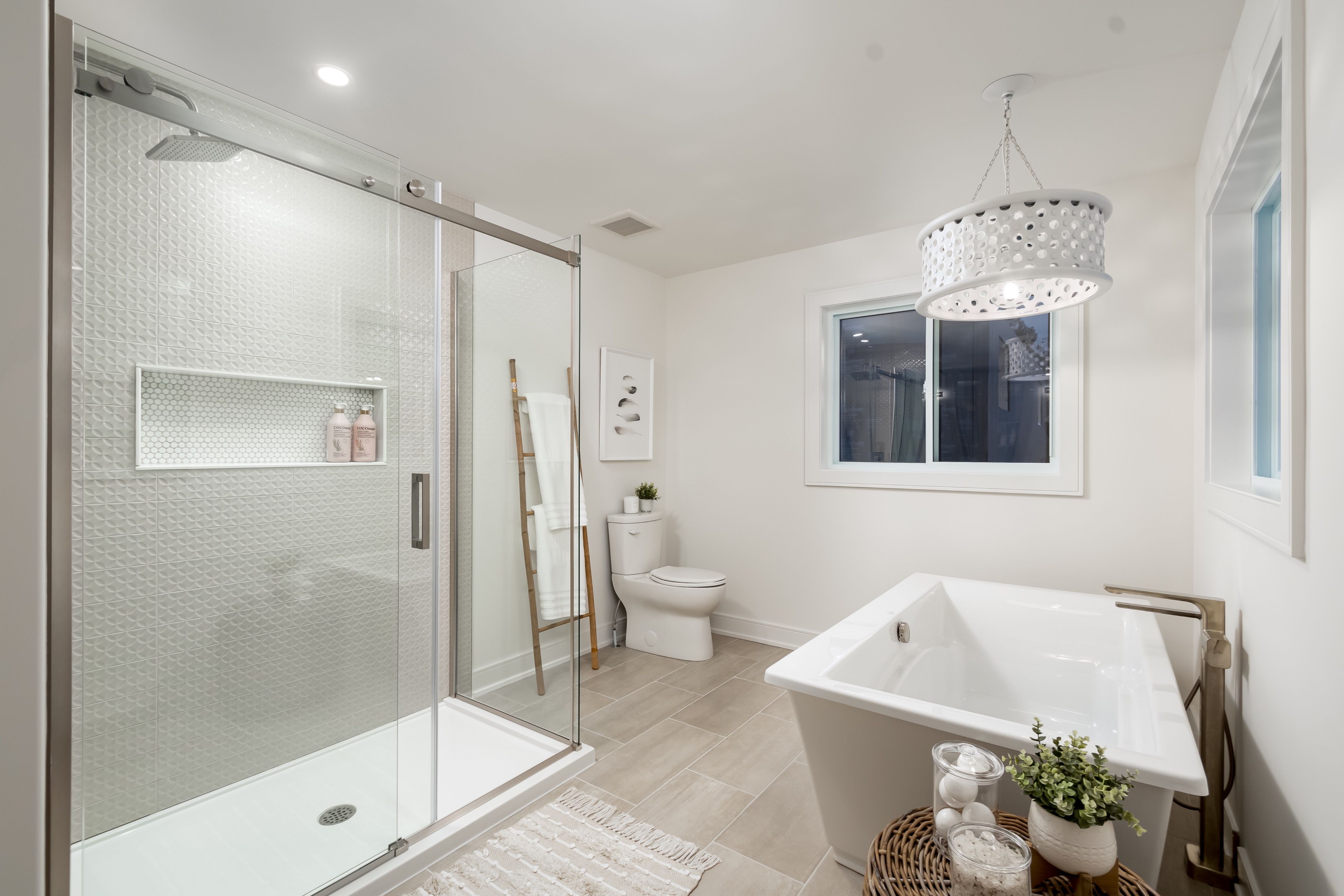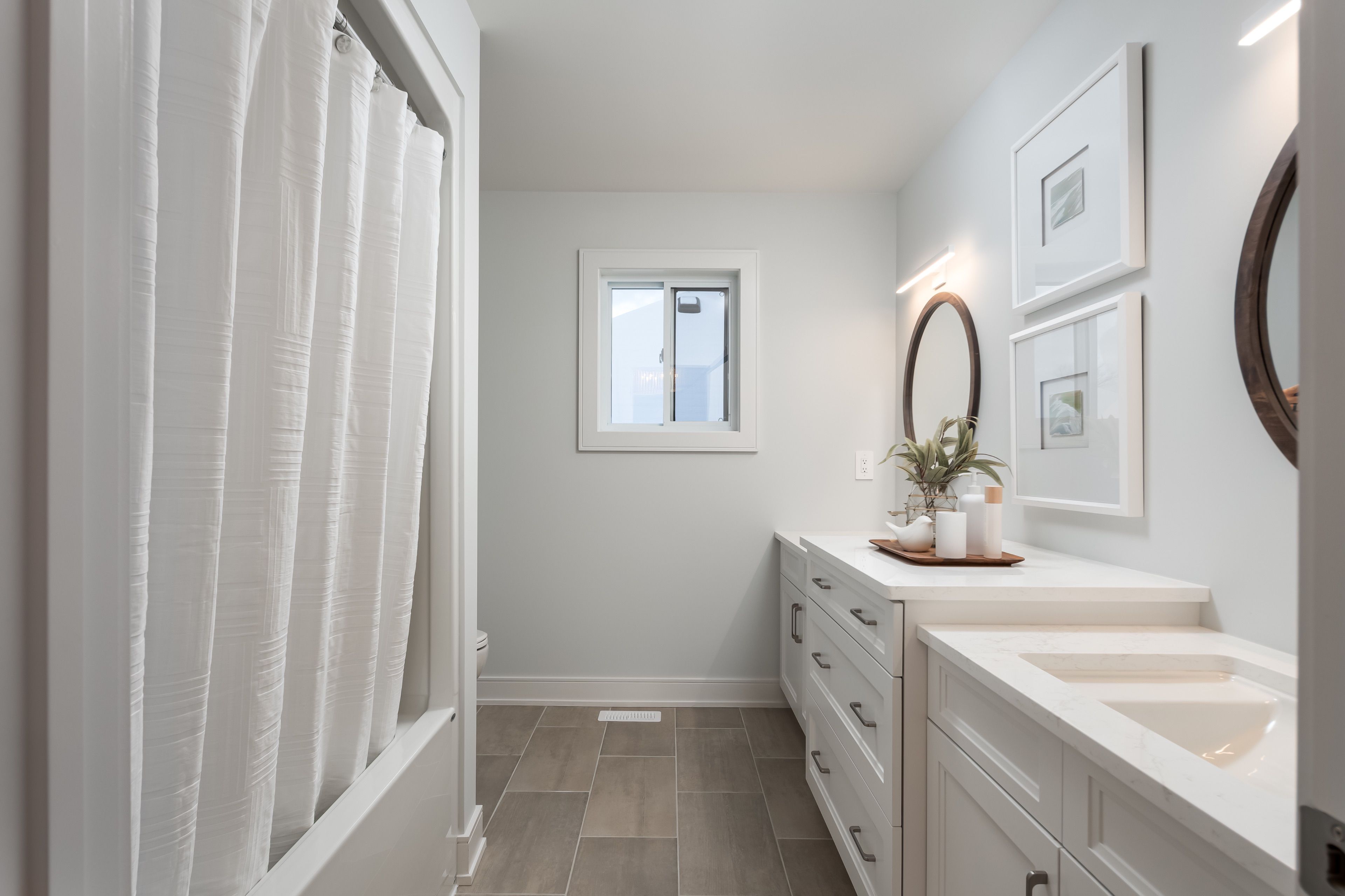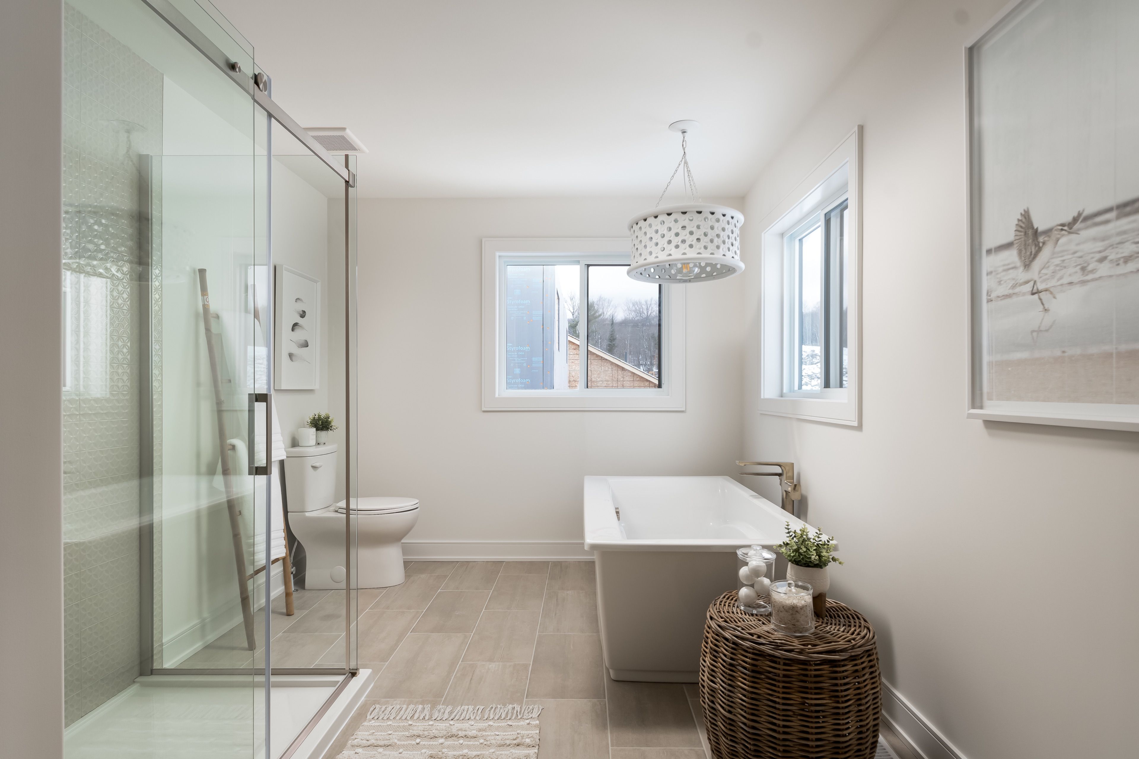 • Upstairs includes a retreat-like ensuite with soaker tub and tile shower.
