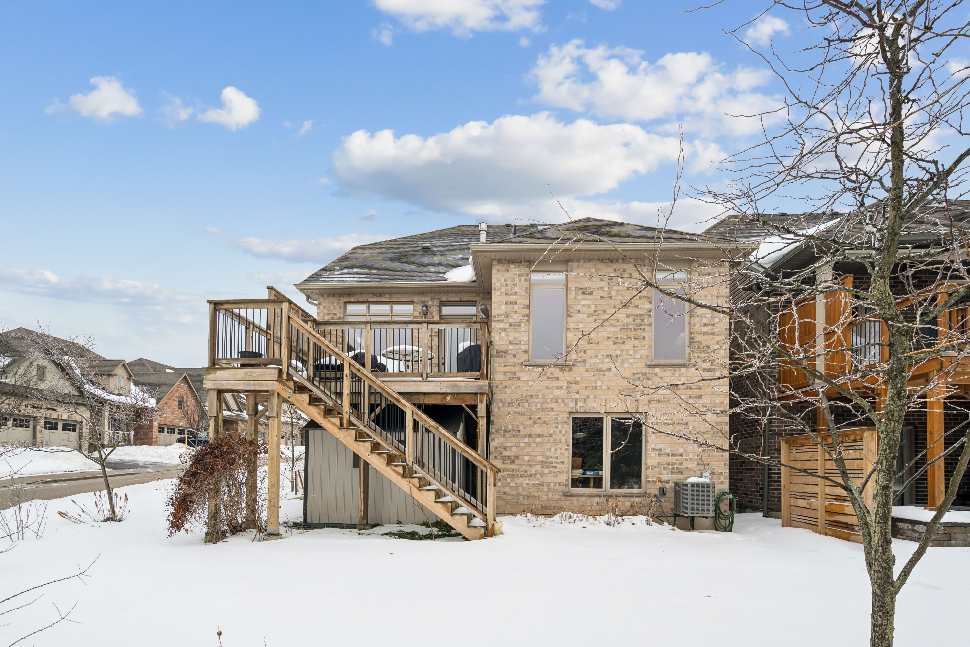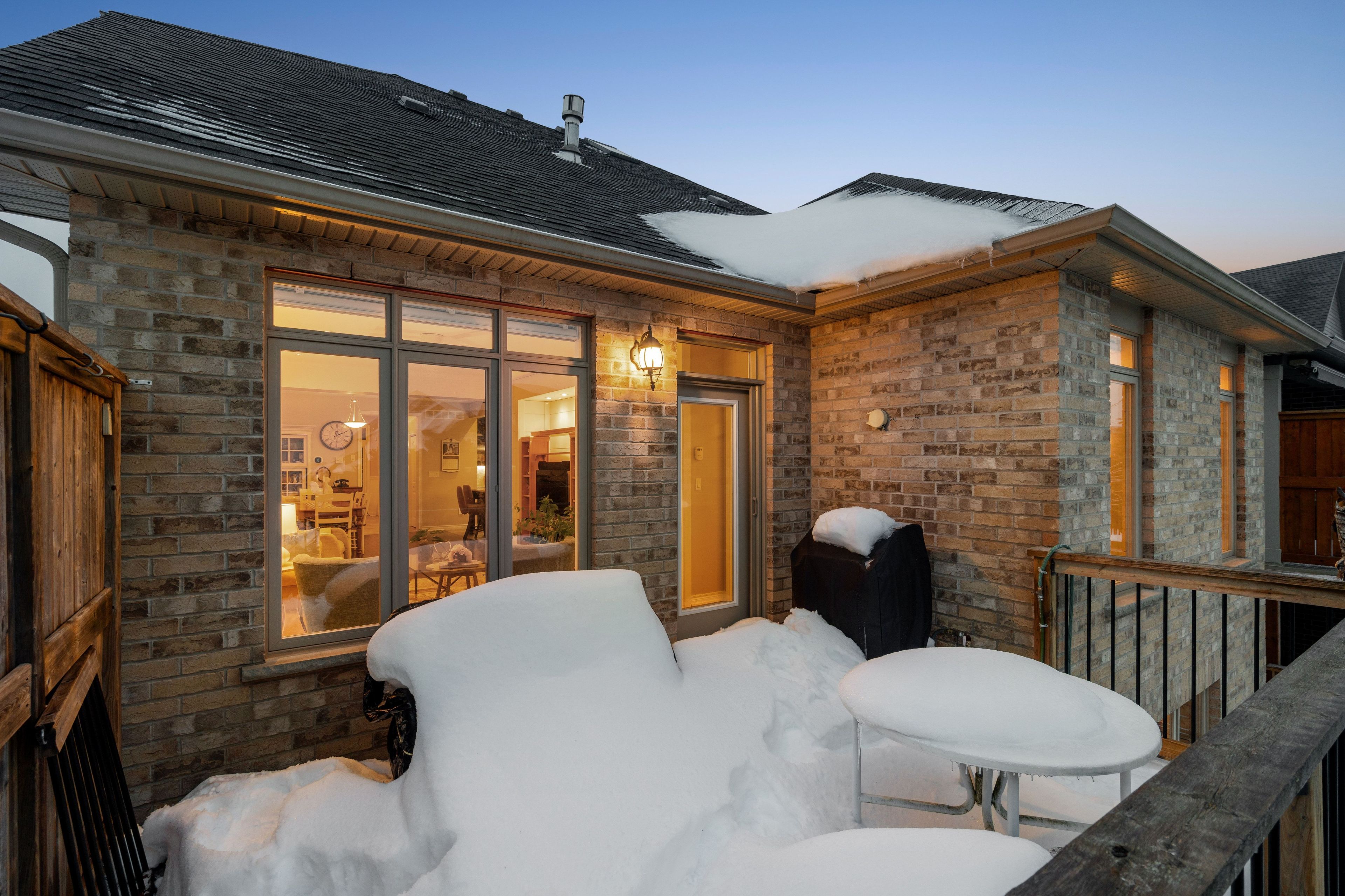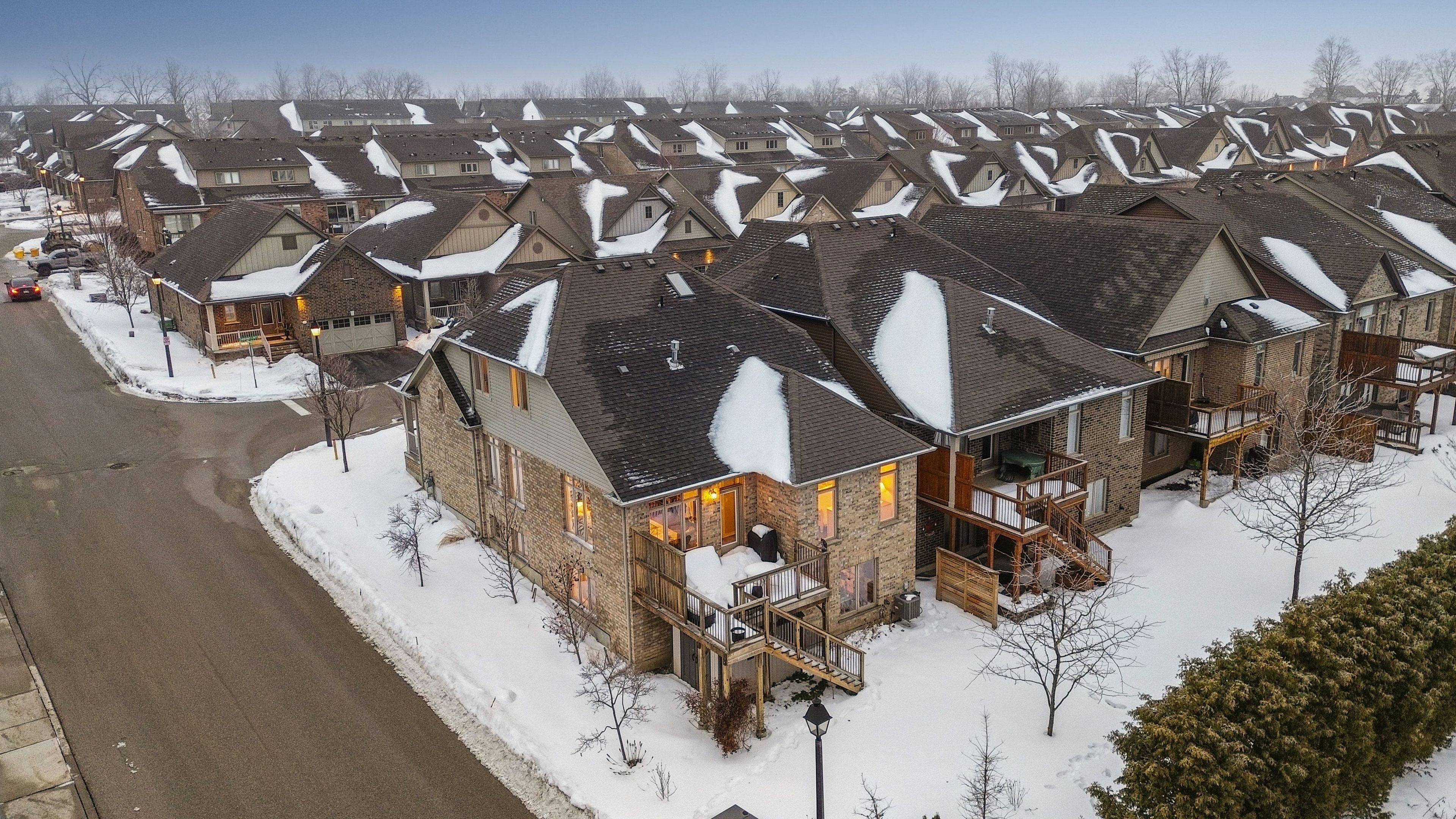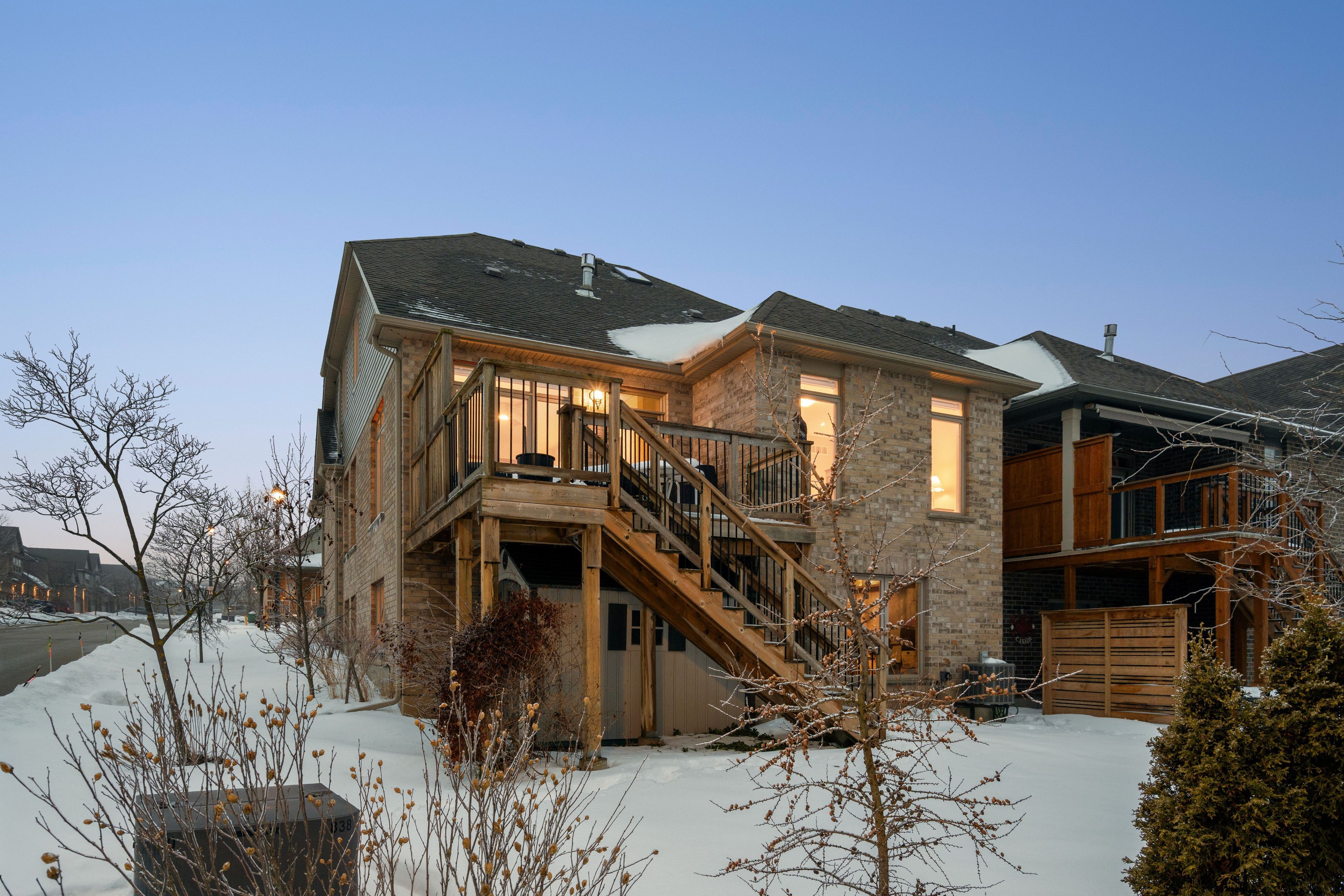 Welcome to peaceful, low-maintenance living in one of rockwood's most desirable communities. This beautifully maintained 2016 bungaloft offers 1,888 sq ft above grade with main-floor living designed perfectly for those who want comfort without compromise. The main floor features rich hardwood floors and a spacious primary retreat complete with walk-in closet and a luxurious 5-piece ensuite. The bright, open-concept kitchen showcases granite countertops, an oversized centre island, extended cabinetry, stainless-steel appliances, and a gas stove, ideal for effortless entertaining or quiet mornings at home. The kitchen flows seamlessly into the dining area with hardwood flooring, pot lights, and a large picture window. The adjoining living room features hardwood floors, a cozy gas fireplace, abundant natural light, and a walk-out to the raised deck. A perfect space for relaxing or hosting family gatherings. Convenience continues with main-floor laundry, direct garage access, and a 2-piece powder room. Upstairs, the loft provides a welcoming family room with pot lights and a skylight, ideal for guests or a reading retreat. A spacious bedroom with walk-in closet and 4-piece bathroom completes the level. The finished basement offers a recreation room with above-grade windows, a third bedroom with double closet, and a large unfinished area with above-grade windows ready for your future vision. Major updates include a new furnace in 2025 and new rental hot water heater and water softener in 2026. The monthly common element fee of $165. 00 covers road maintenance, snow clearing except driveways, sidewalks, landscaping and berm maintenance, allowing you to enjoy truly low-maintenance living. Located minutes from rockwood conservation area, scenic walking trails, charming downtown rockwood shops and restaurants, and an easy commute to guelph or acton go train, this home offers peaceful surroundings without sacrificing convenience.