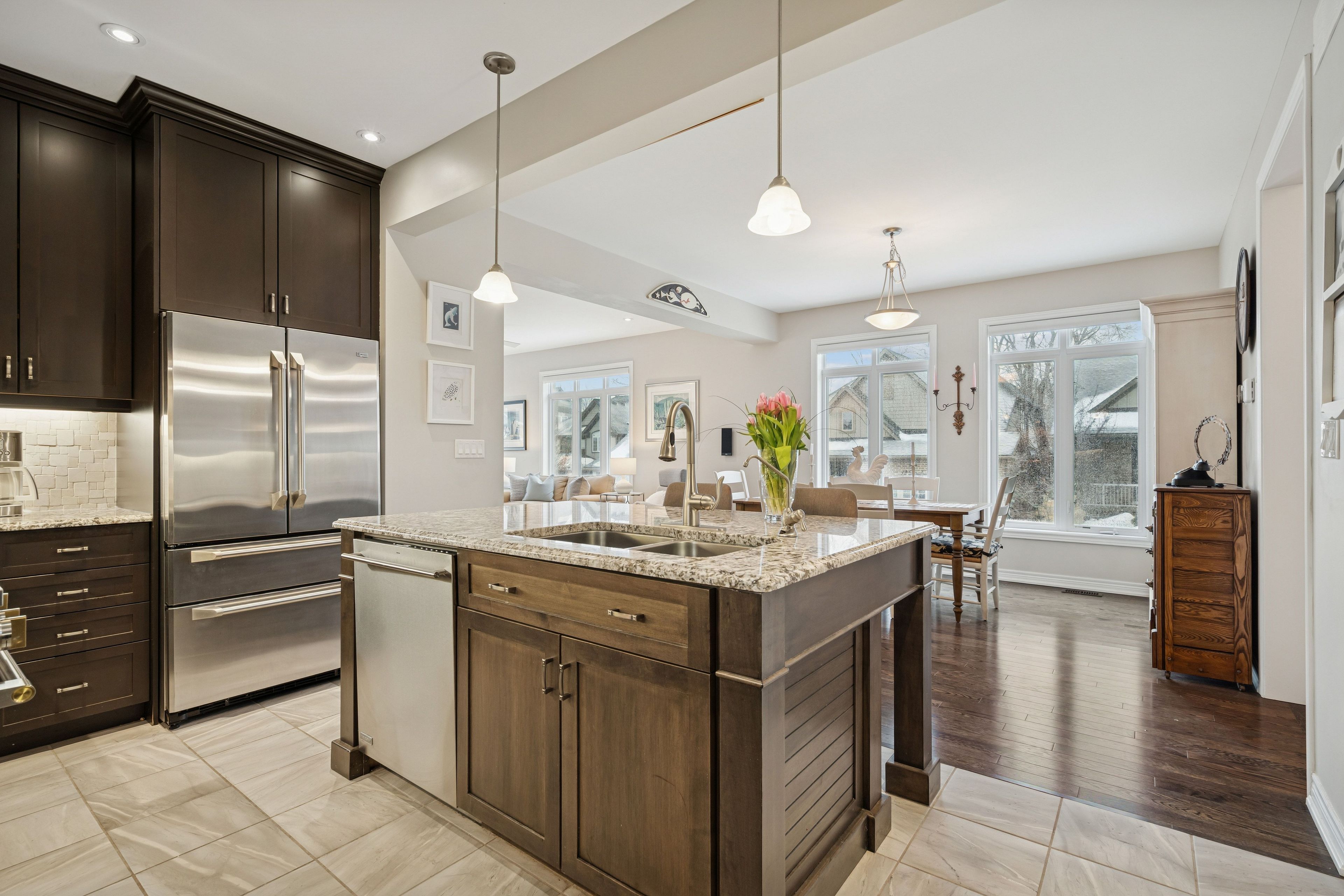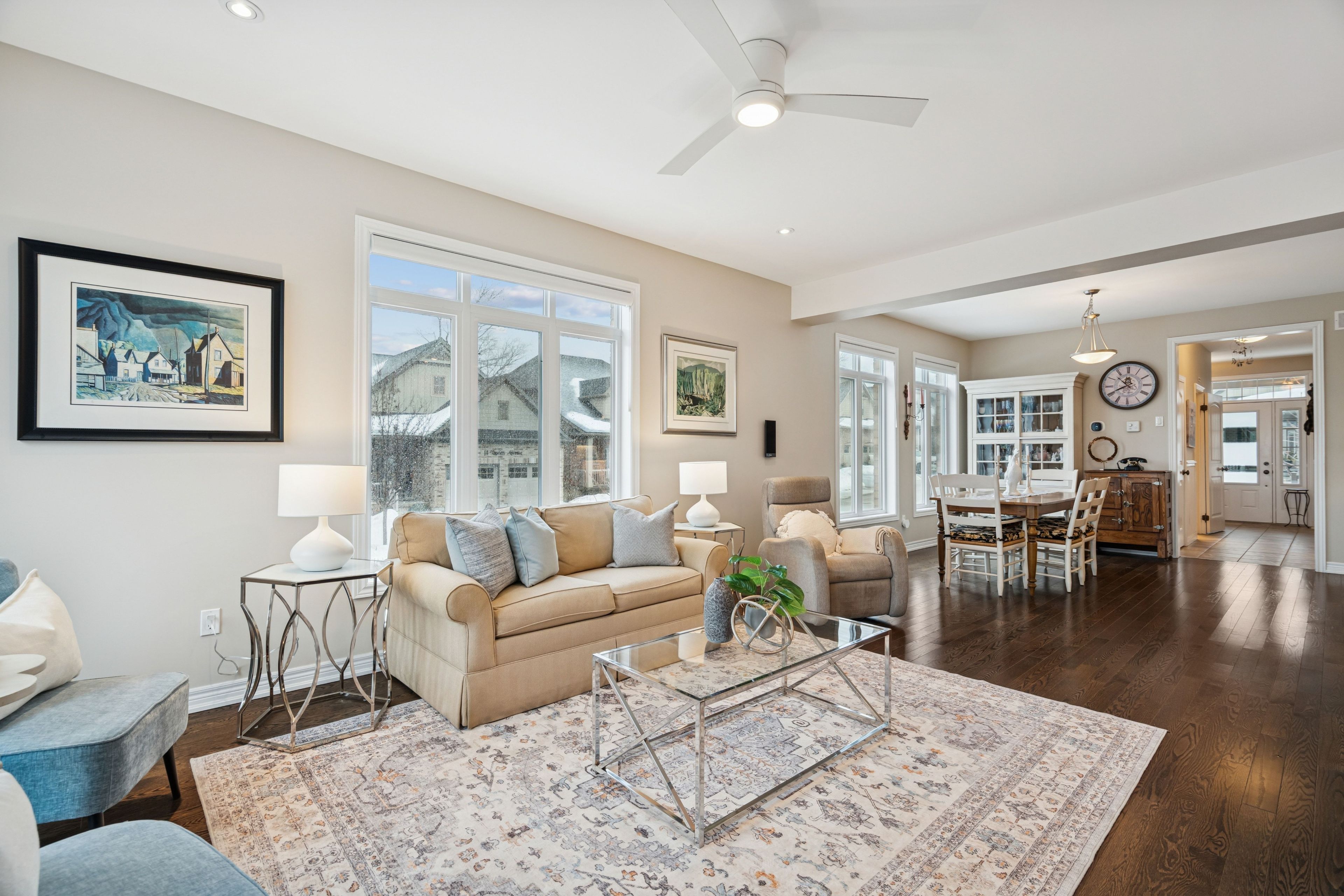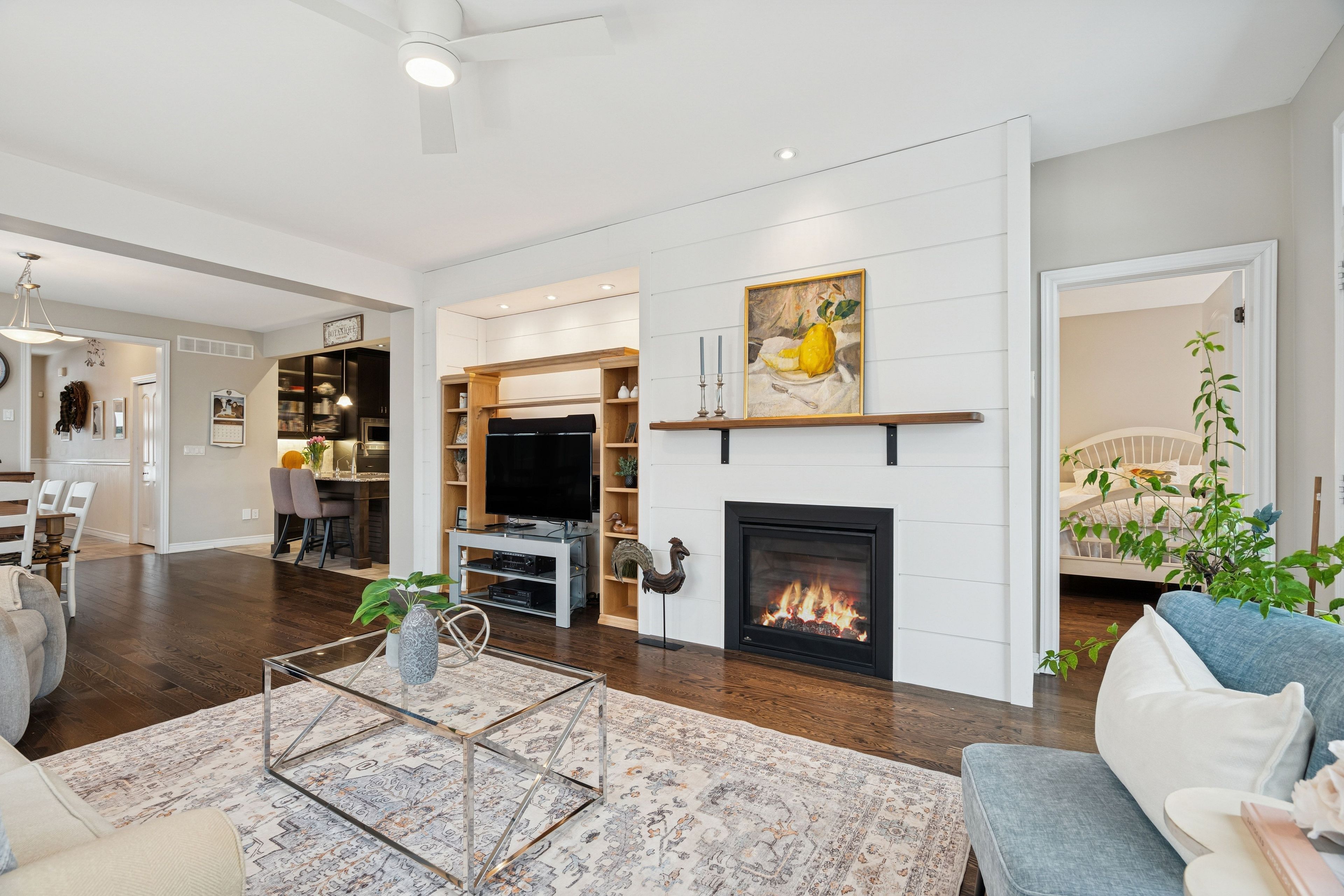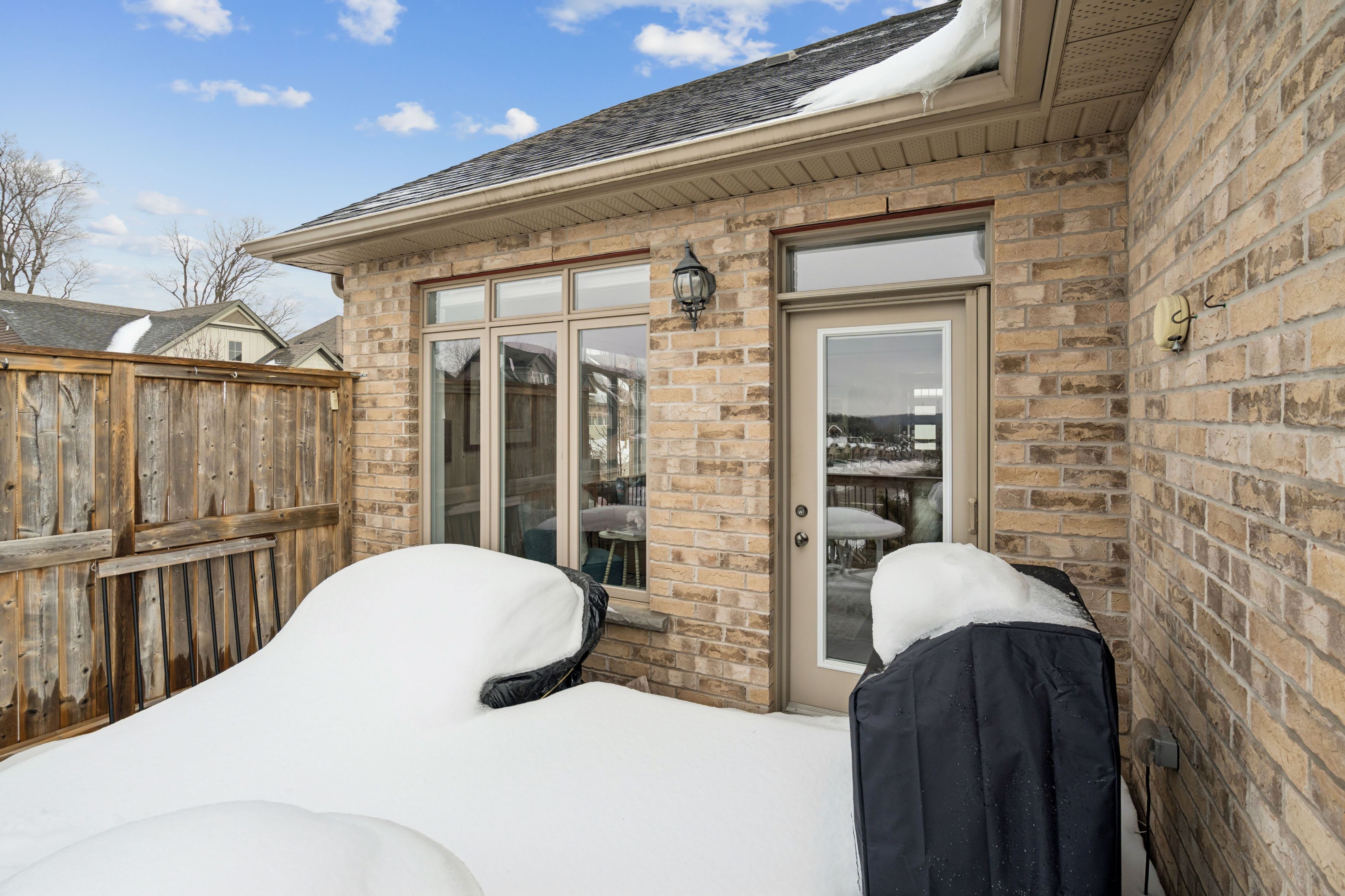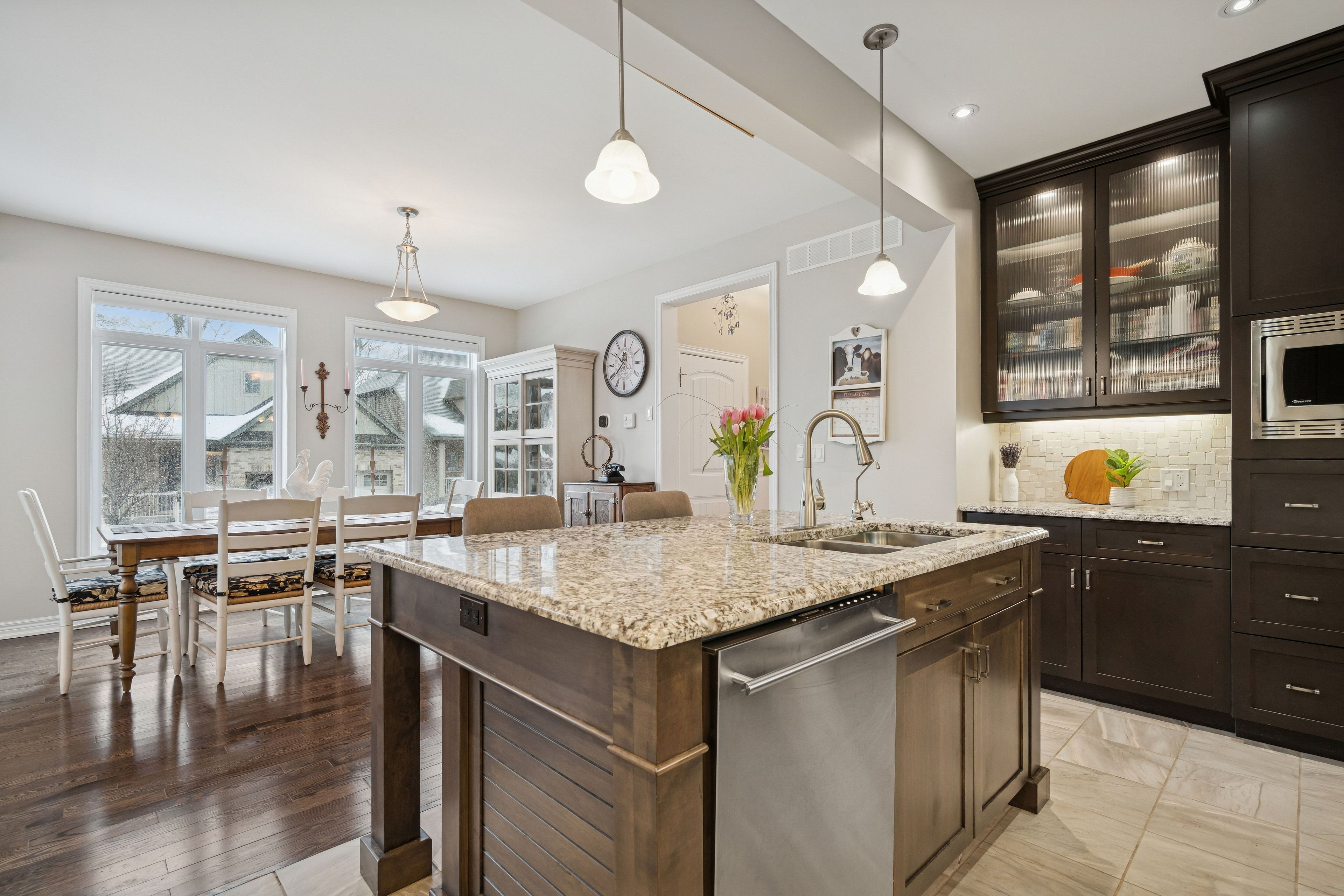 Welcome to peaceful, low-maintenance living in one of rockwood's most desirable communities. This beautifully maintained 2016 bungaloft offers 1,888 sq ft above grade with main-floor living designed perfectly for those who want comfort without compromise. The main floor features rich hardwood floors and a spacious primary retreat complete with walk-in closet and a luxurious 5-piece ensuite. The bright, open-concept kitchen showcases granite countertops, an oversized centre island, extended cabinetry, stainless-steel appliances, and a gas stove, ideal for effortless entertaining or quiet mornings at home. The kitchen flows seamlessly into the dining area with hardwood flooring, pot lights, and a large picture window. The adjoining living room features hardwood floors, a cozy gas fireplace, abundant natural light, and a walk-out to the raised deck. A perfect space for relaxing or hosting family gatherings. Convenience continues with main-floor laundry, direct garage access, and a 2-piece powder room. Upstairs, the loft provides a welcoming family room with pot lights and a skylight, ideal for guests or a reading retreat. A spacious bedroom with walk-in closet and 4-piece bathroom completes the level. The finished basement offers a recreation room with above-grade windows, a third bedroom with double closet, and a large unfinished area with above-grade windows ready for your future vision. Major updates include a new furnace in 2025 and new rental hot water heater and water softener in 2026. The monthly common element fee of $165. 00 covers road maintenance, snow clearing except driveways, sidewalks, landscaping and berm maintenance, allowing you to enjoy truly low-maintenance living. Located minutes from rockwood conservation area, scenic walking trails, charming downtown rockwood shops and restaurants, and an easy commute to guelph or acton go train, this home offers peaceful surroundings without sacrificing convenience.