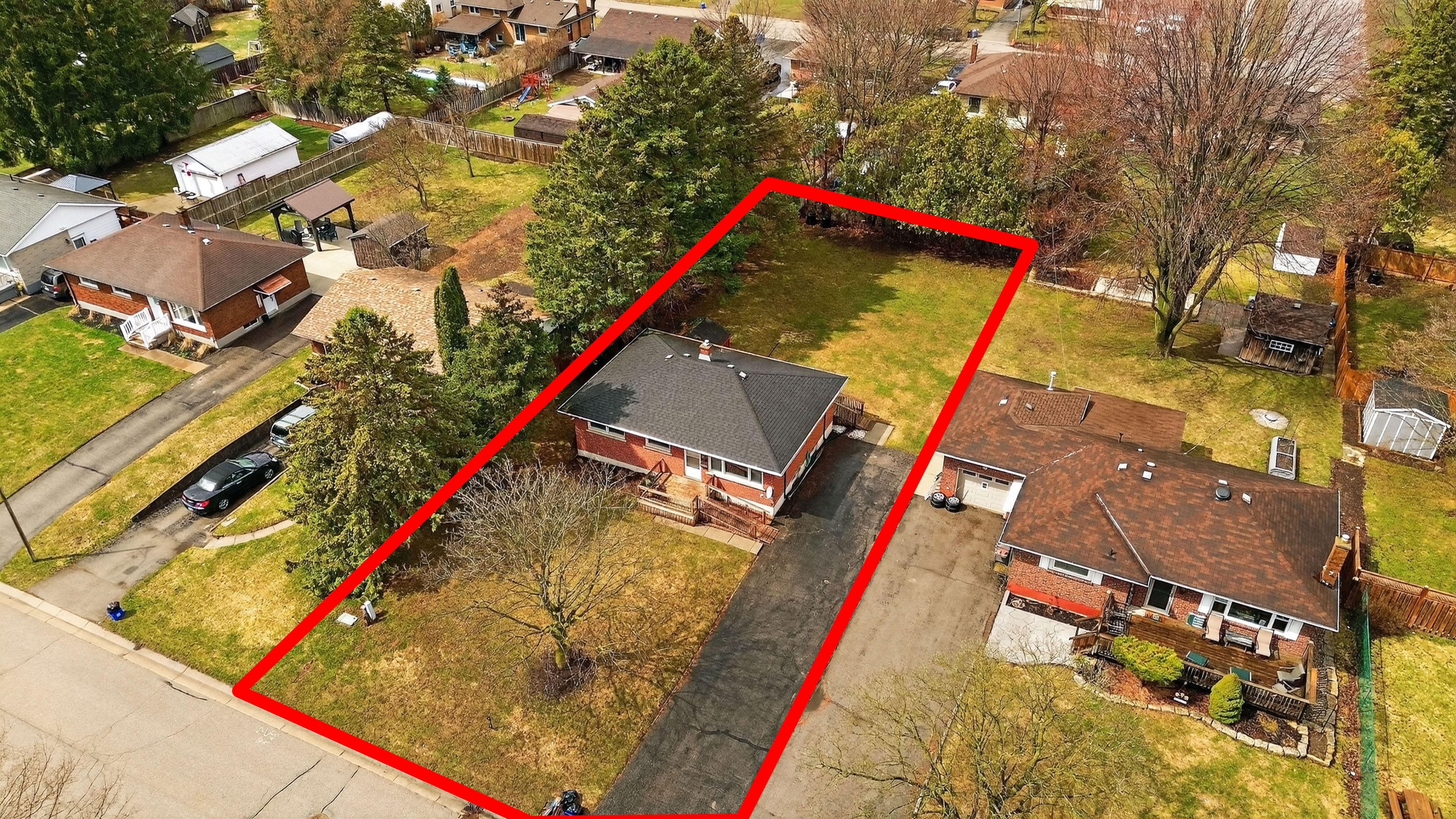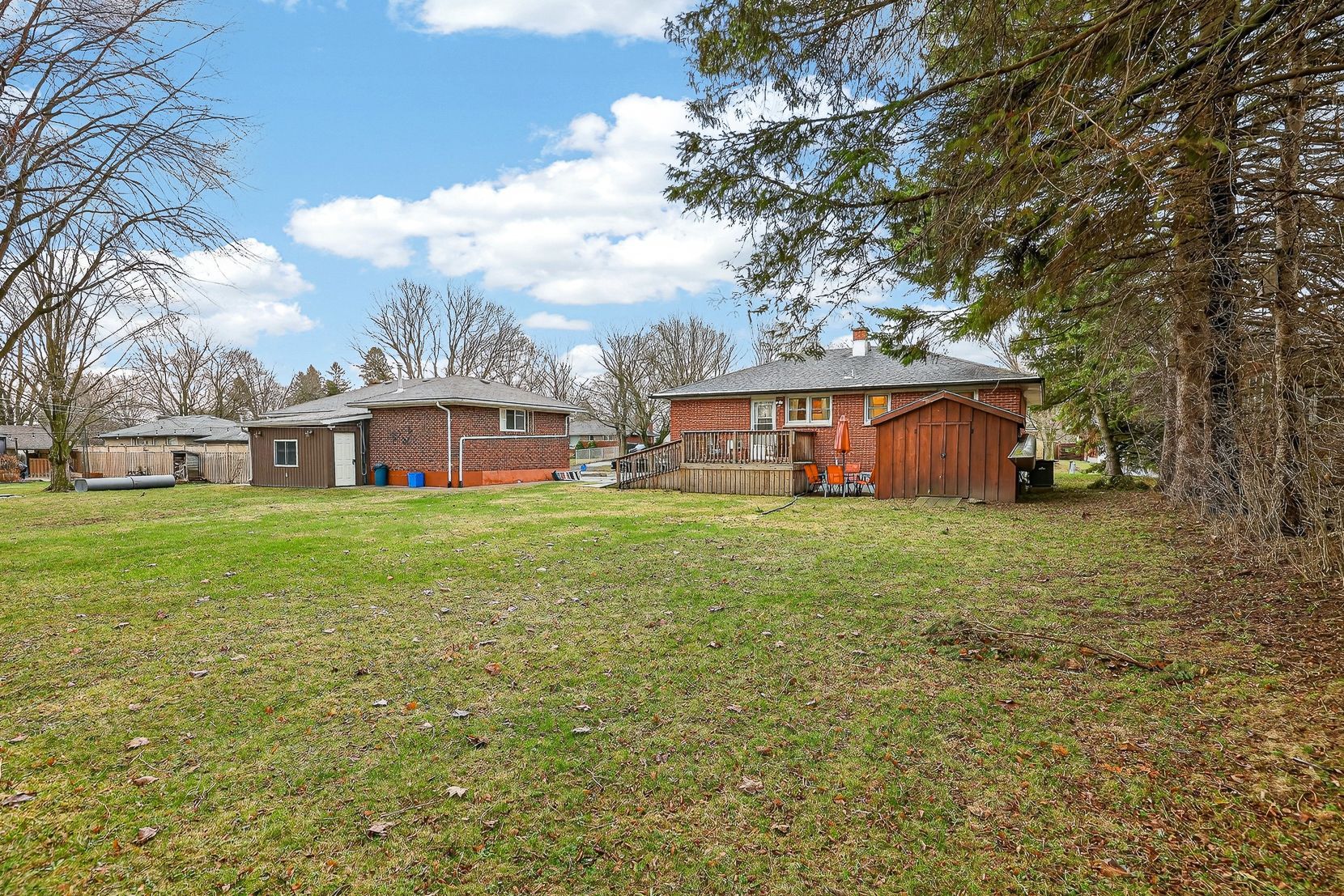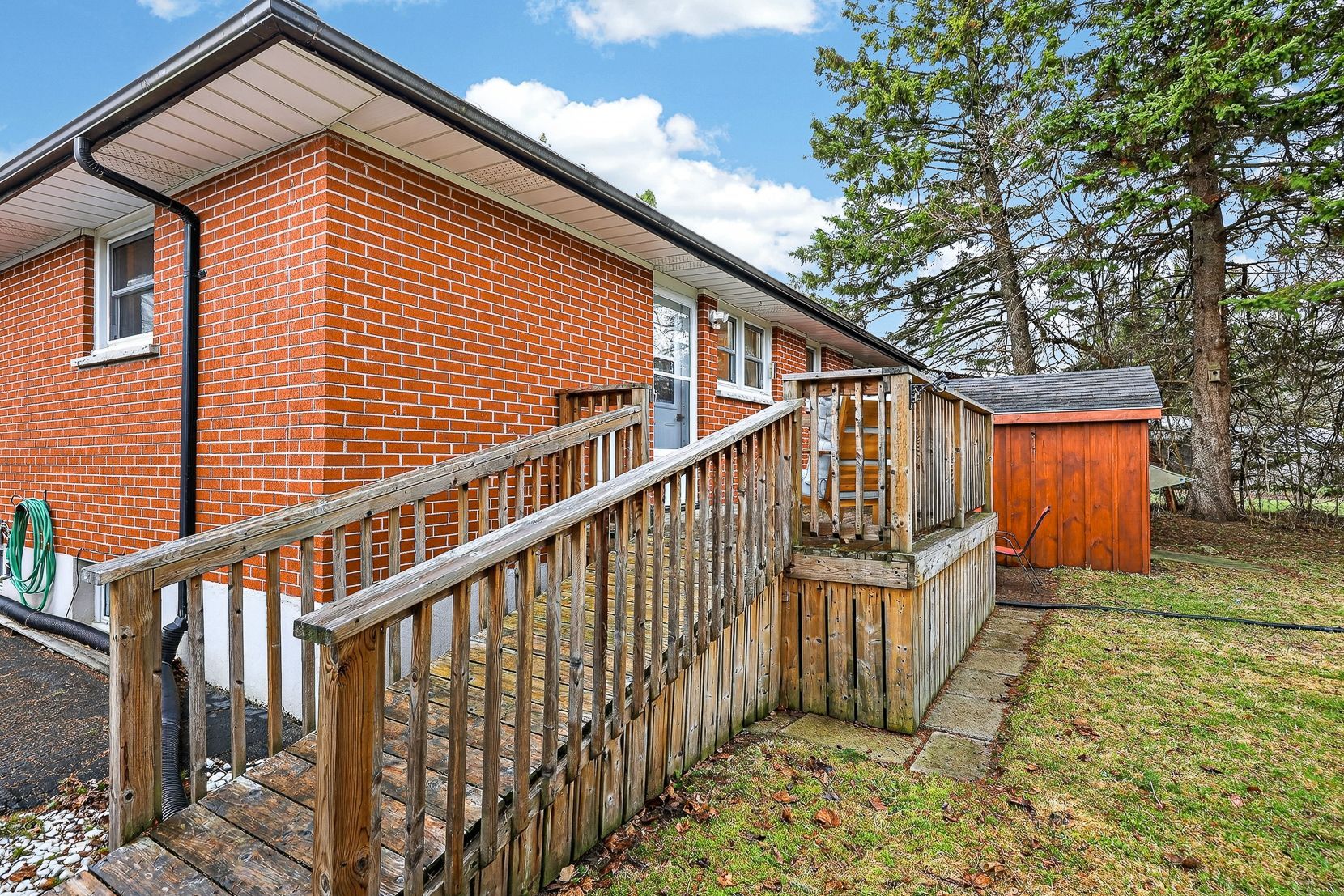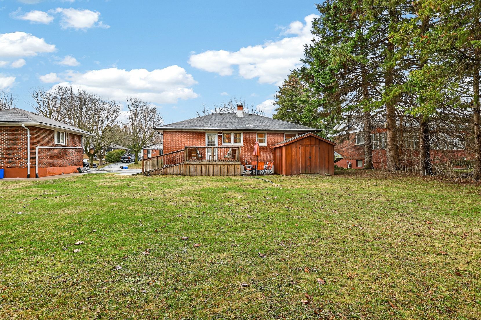 Desirable neighbourhood, unbeatable price! Desirable brick bungalow offering convenient main floor living! Featuring ramp access at the front and rear of the home, a 3-piece bathroom with walk-in shower, 3 bedrooms, the 3rd bedroom is currently converted to a convenient laundry area with washer & dryer which can easily be returned back to a bedroom by moving laundry back downstairs. Enjoy a sun-filled living room that flows seamlessly with hardwood floors into the dining area, kitchen, hallway and bedrooms which means no carpet on main floor! The warm & inviting kitchen, offers ample cabinetry and counter space , plus direct access to deck overlooking a massive backyard with ample room to accommodate the ultimate workshop! The lower level is unfinished offering a blank canvas to create your ideal space. Whether you envision a recreation room, additional bedrooms or an in-law suite, the possibilities are endless to customize and add value. Spacious private double wide driveway can accommodate up to 7 cars. Located in a fantastic, mature neighbourhood close to all amenities and easy access to hwy 401. This home is perfect for downsizers, first-time buyers, or anyone looking for practical, one-level living. Quick possession available. Updates incl: windows , furnace