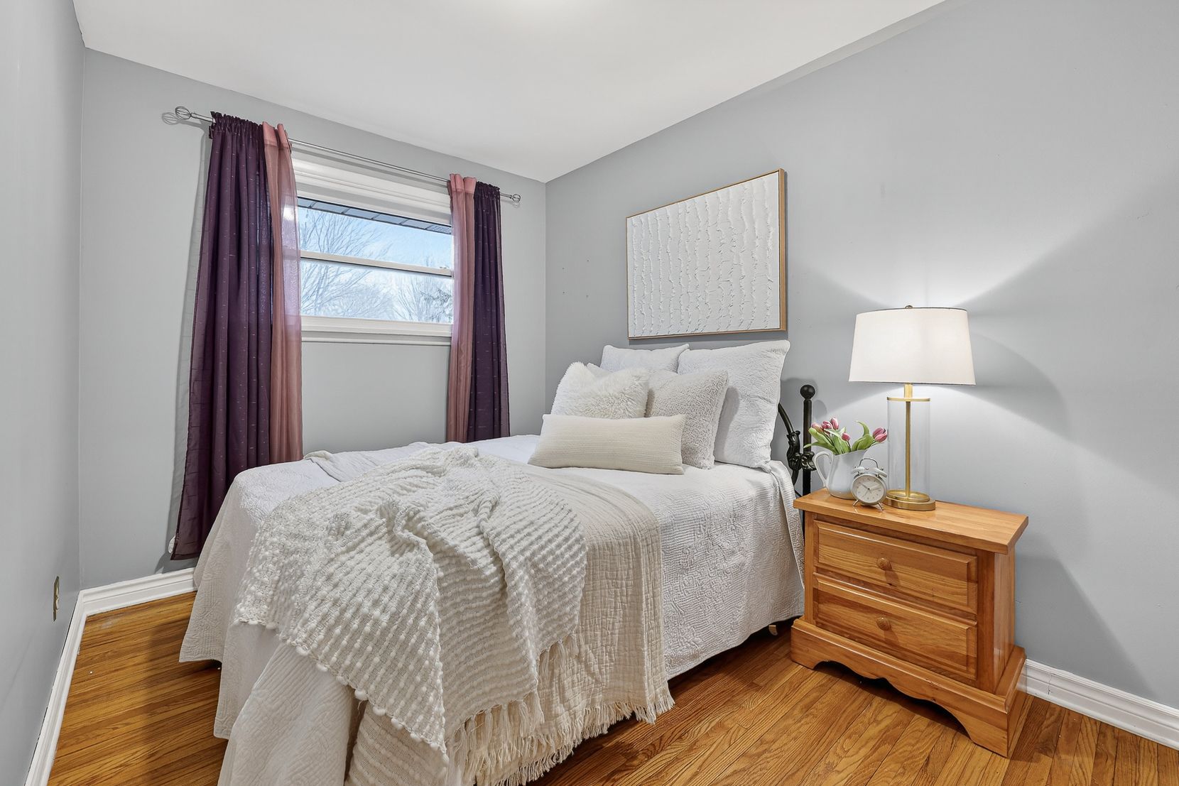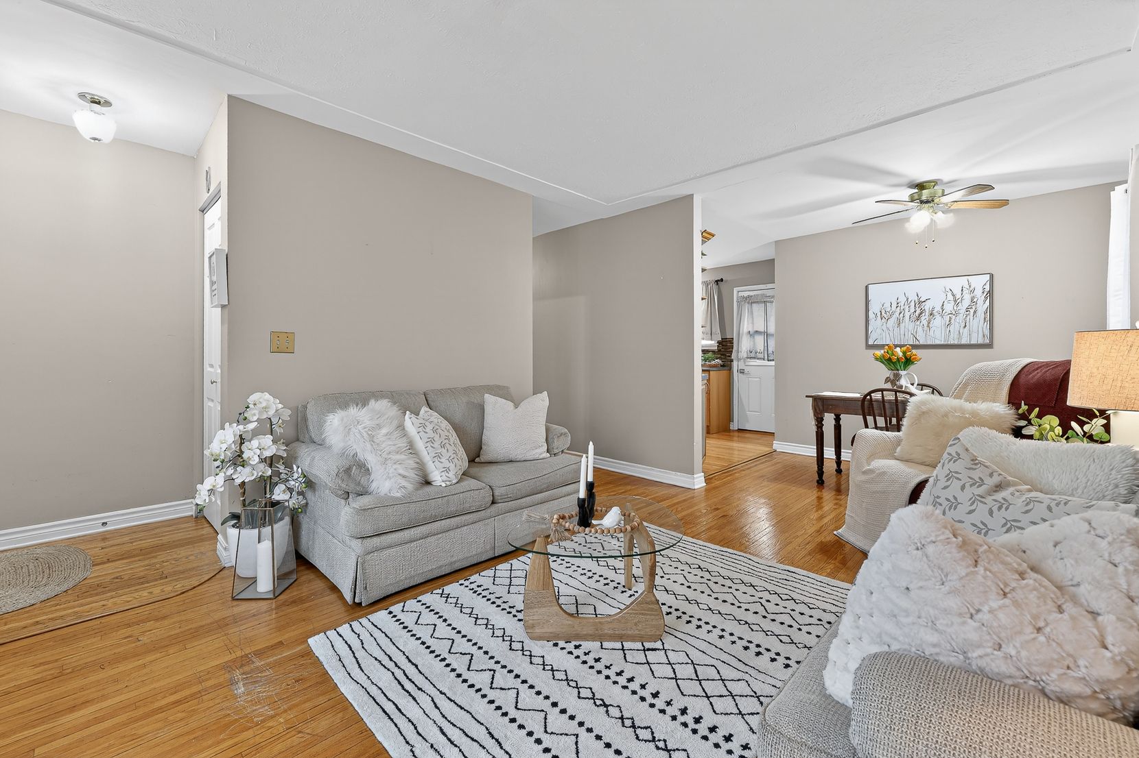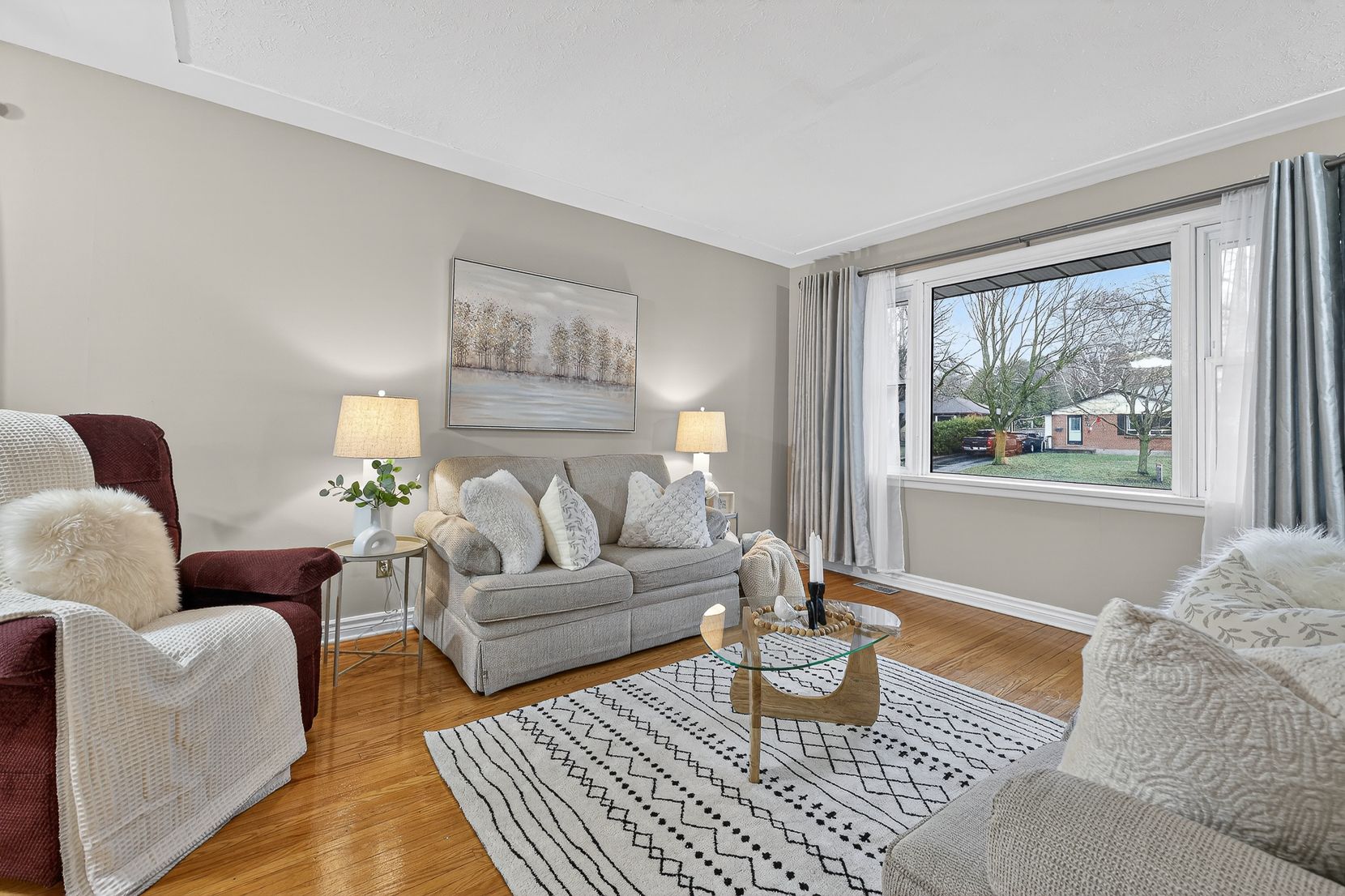 Desirable neighbourhood, unbeatable price! Desirable brick bungalow offering convenient main floor living! Featuring ramp access at the front and rear of the home, a 3-piece bathroom with walk-in shower, 3 bedrooms, the 3rd bedroom is currently converted to a convenient laundry area with washer & dryer which can easily be returned back to a bedroom by moving laundry back downstairs. Enjoy a sun-filled living room that flows seamlessly with hardwood floors into the dining area, kitchen, hallway and bedrooms which means no carpet on main floor! The warm & inviting kitchen, offers ample cabinetry and counter space , plus direct access to deck overlooking a massive backyard with ample room to accommodate the ultimate workshop! The lower level is unfinished offering a blank canvas to create your ideal space. Whether you envision a recreation room, additional bedrooms or an in-law suite, the possibilities are endless to customize and add value. Spacious private double wide driveway can accommodate up to 7 cars. Located in a fantastic, mature neighbourhood close to all amenities and easy access to hwy 401. This home is perfect for downsizers, first-time buyers, or anyone looking for practical, one-level living. Quick possession available. Updates incl: windows , furnace