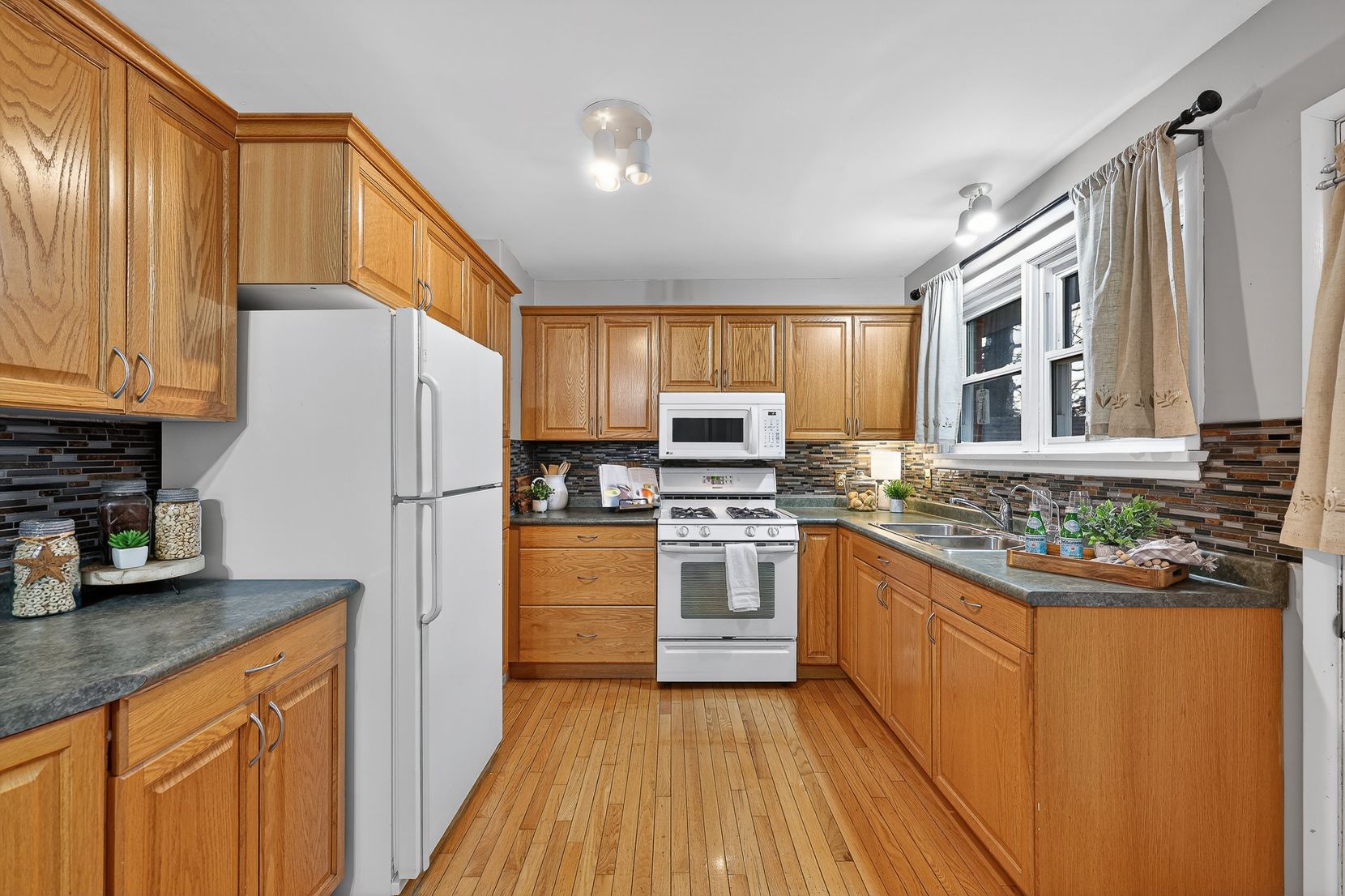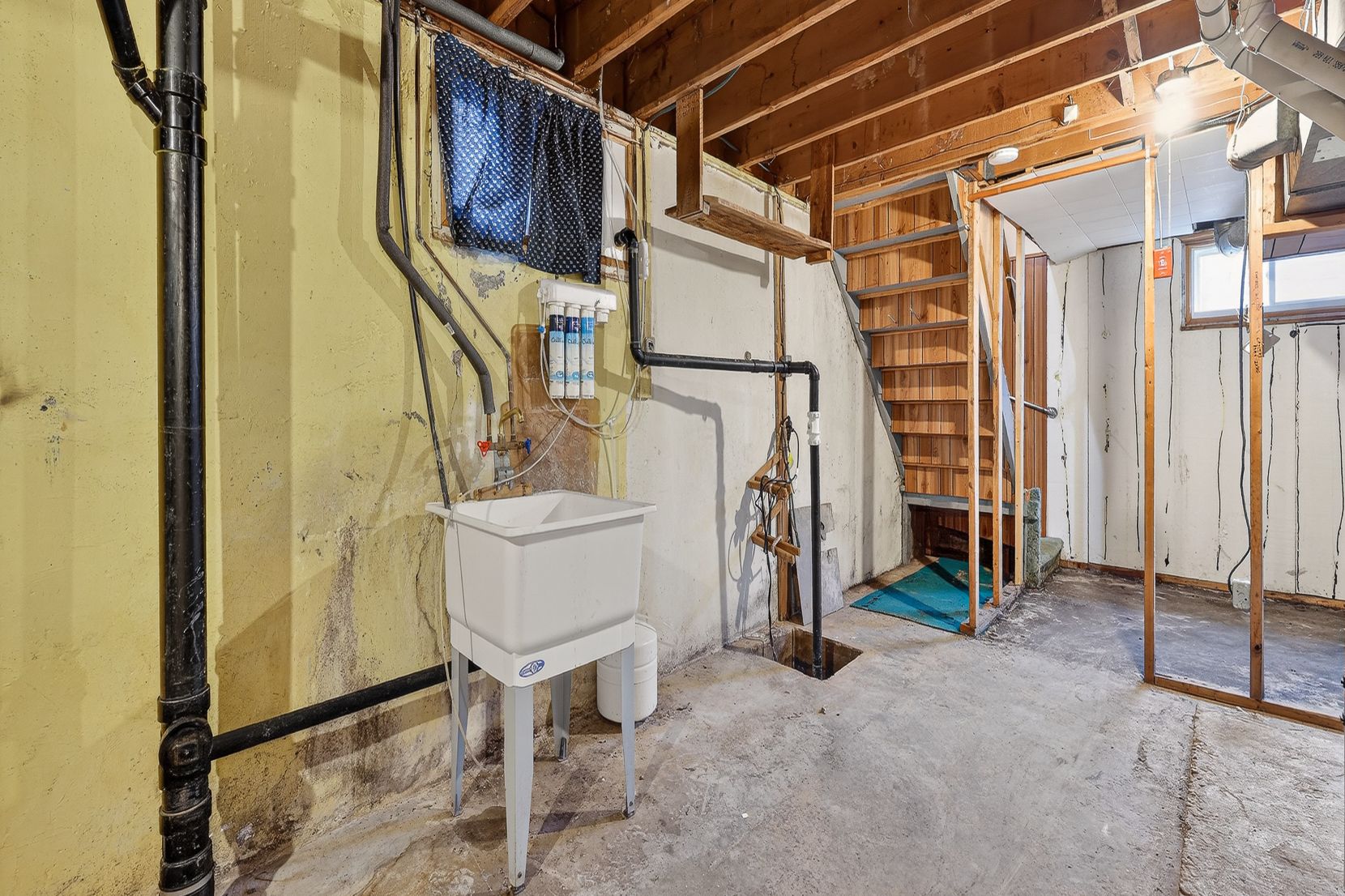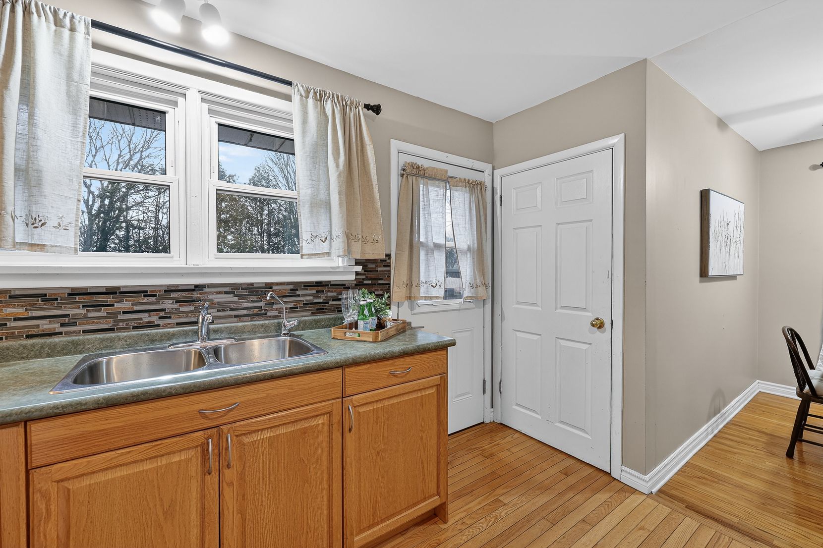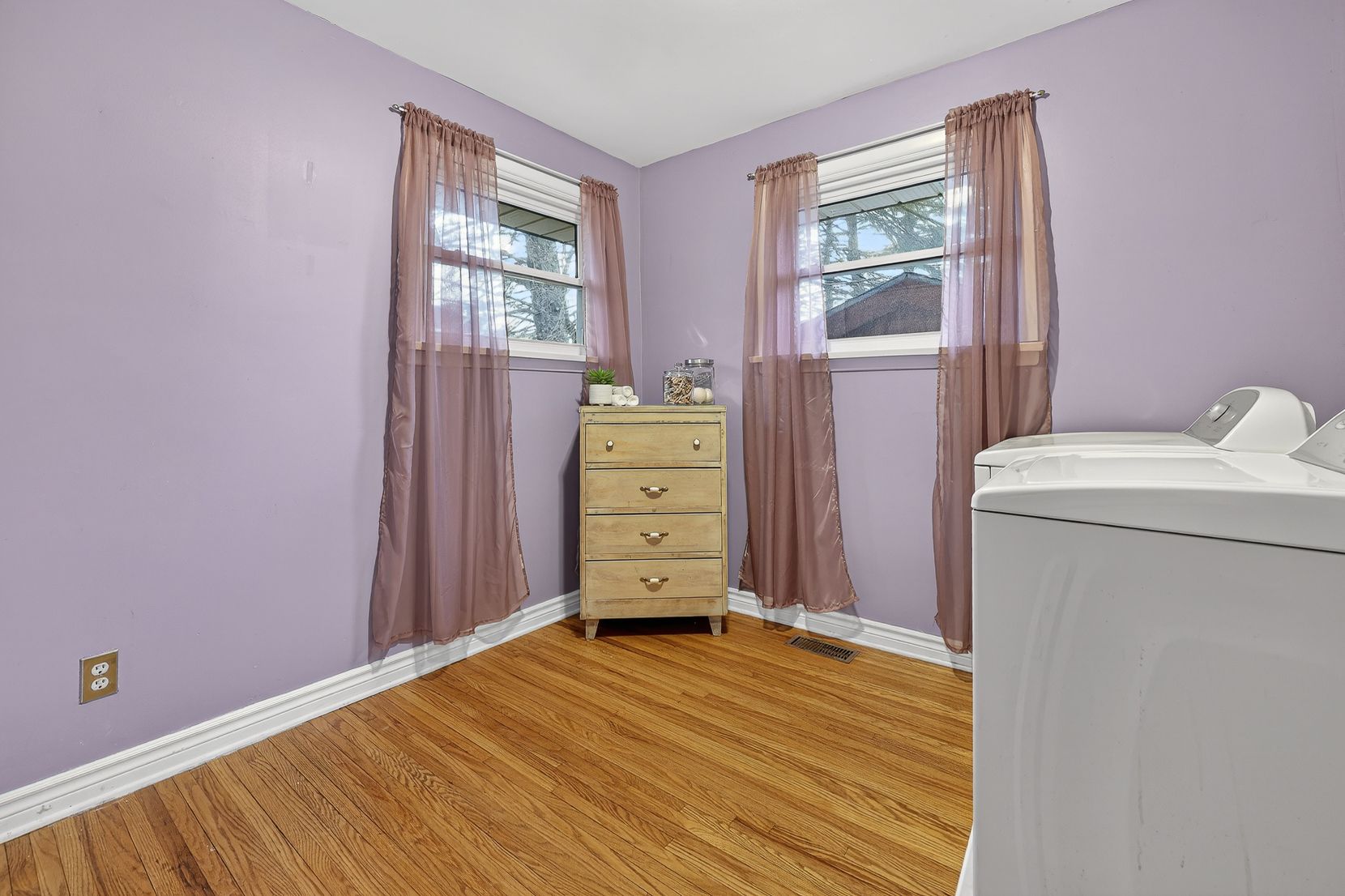 Desirable neighbourhood, unbeatable price! Desirable brick bungalow offering convenient main floor living! Featuring ramp access at the front and rear of the home, a 3-piece bathroom with walk-in shower, 3 bedrooms, the 3rd bedroom is currently converted to a convenient laundry area with washer & dryer which can easily be returned back to a bedroom by moving laundry back downstairs. Enjoy a sun-filled living room that flows seamlessly with hardwood floors into the dining area, kitchen, hallway and bedrooms which means no carpet on main floor! The warm & inviting kitchen, offers ample cabinetry and counter space , plus direct access to deck overlooking a massive backyard with ample room to accommodate the ultimate workshop! The lower level is unfinished offering a blank canvas to create your ideal space. Whether you envision a recreation room, additional bedrooms or an in-law suite, the possibilities are endless to customize and add value. Spacious private double wide driveway can accommodate up to 7 cars. Located in a fantastic, mature neighbourhood close to all amenities and easy access to hwy 401. This home is perfect for downsizers, first-time buyers, or anyone looking for practical, one-level living. Quick possession available. Updates incl: windows , furnace