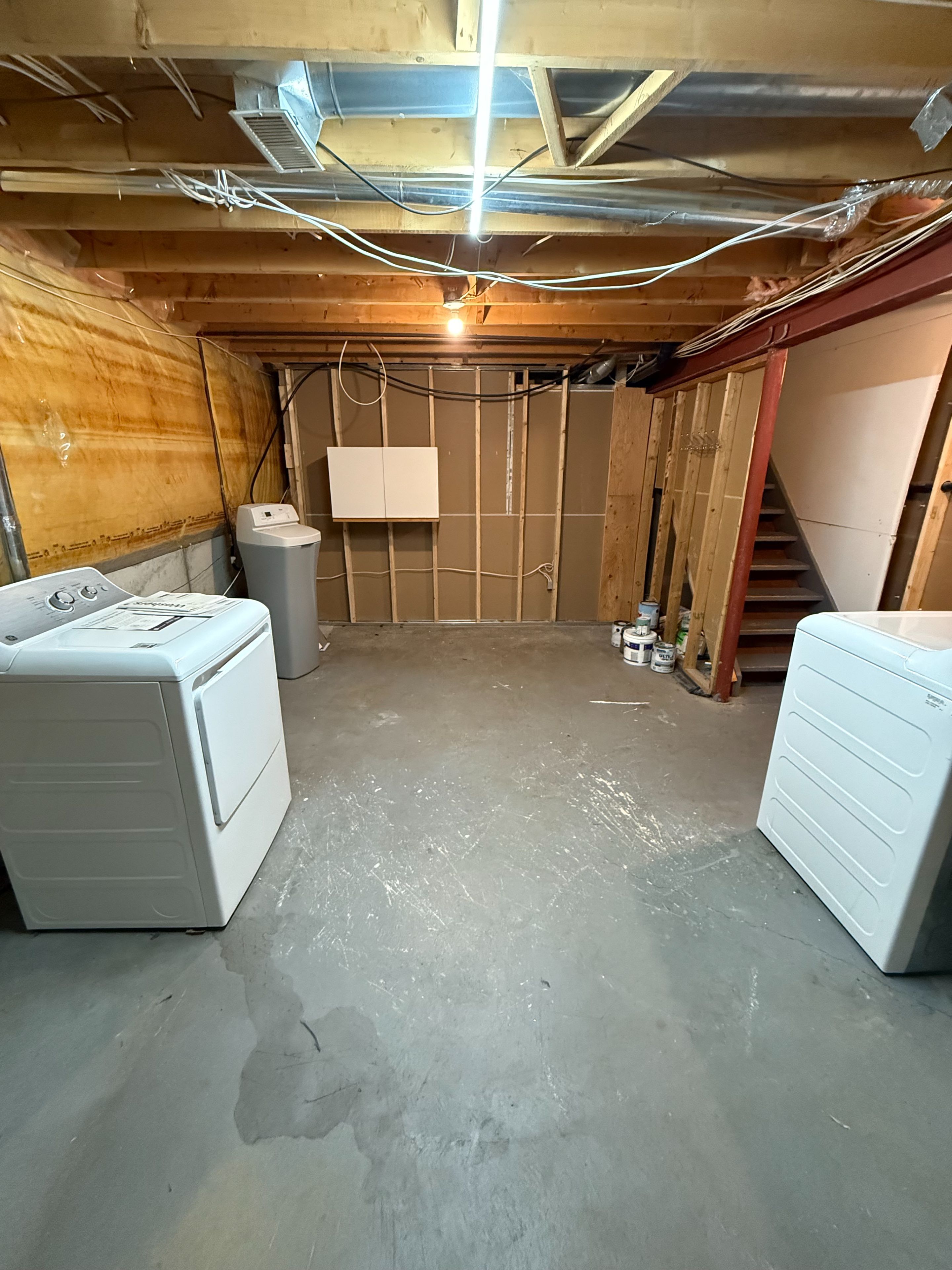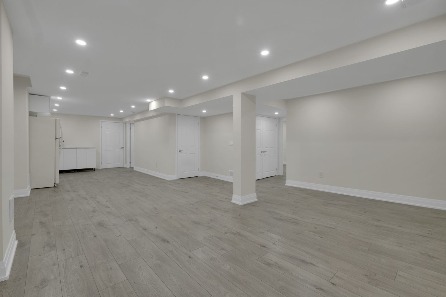• Finished basement with two bedrooms, bathroom, and kitchen area.