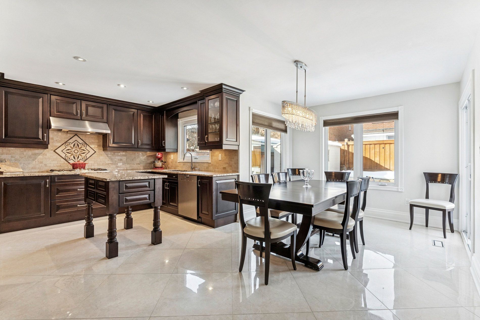 • Custom-designed kitchen with upgraded appliances and large pantry.