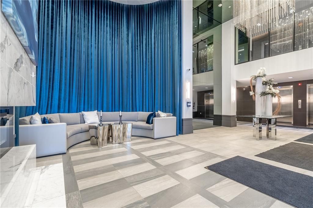 • Stylish features include floor-to-ceiling windows and high ceilings.