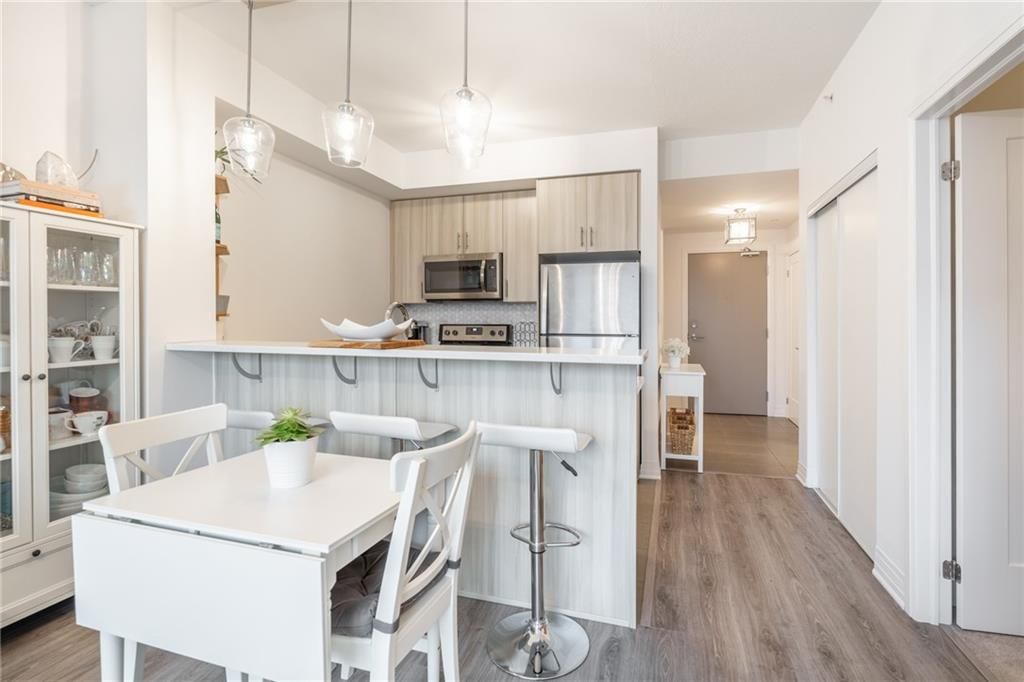 Welcome to unit 102 at 10 concord place-where style meets waterfront living. Located in the heart of grimsby beach, this stunning 1 bed+den, 1 bath ground-floor suite in aquablu condominiums offers 714 sq ft of upgraded, move-in-ready luxury. Enjoy floor-to-ceiling windows, high ceilings, sleek laminate flooring, designer lighting, quartz countertops, stainless steel appliances, hex tile backsplash, in-suite laundry, and custom blinds. The spacious bedroom features a walk-in closet with semi-ensuite access, while the versatile den with custom built-ins is perfect for a home office or guest space. Step out to your oversized private patio with easy access, plus 1 underground parking spot and a storage locker. Premium amenities include a fitness centre, party room, rooftop terrace, modern lobby, and visitor parking- just steps to shops, restaurants, lakefront trails, and quick qew access. Waterfront living. Exceptional value. Book your showing today.