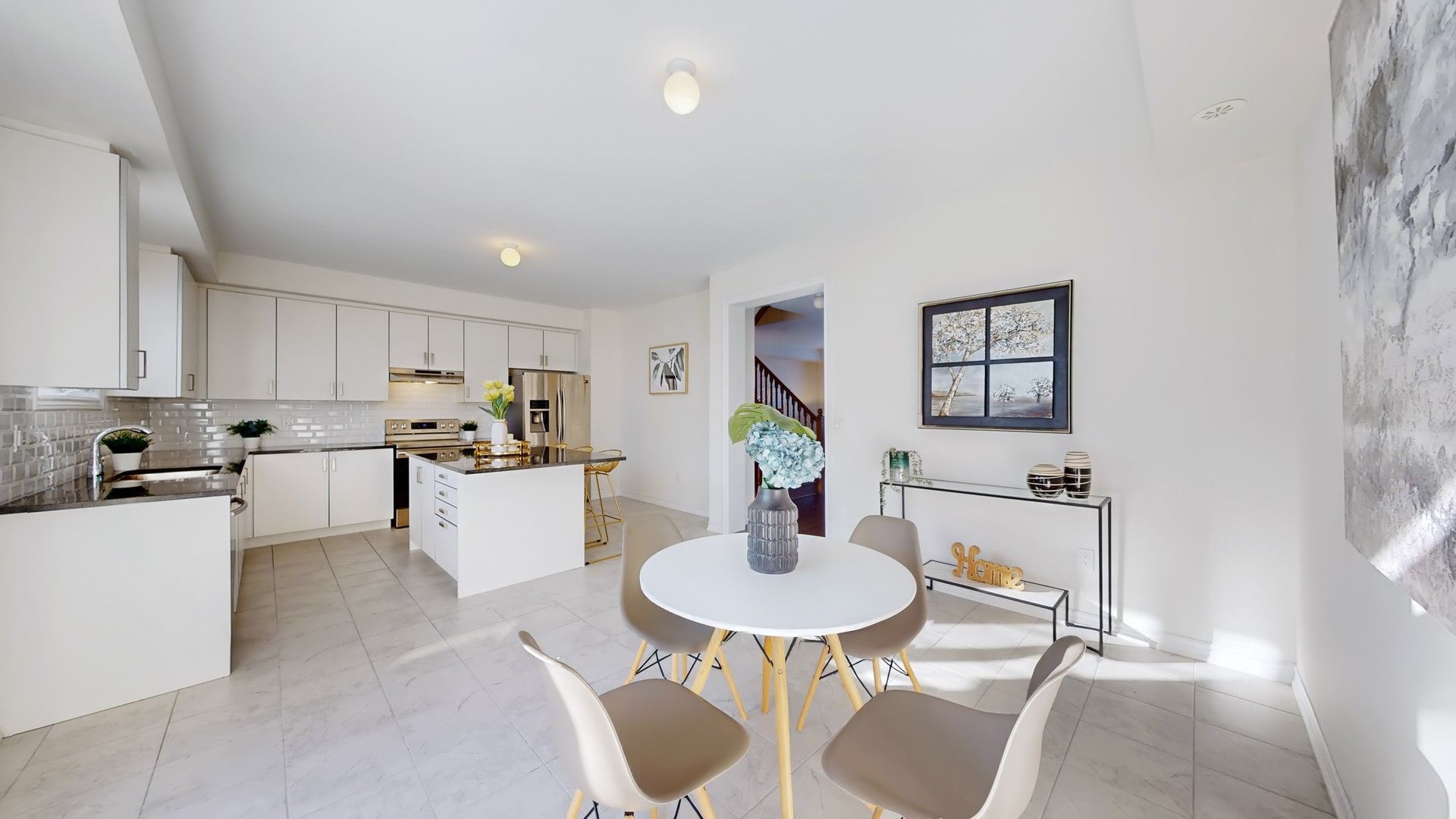 • Open concept layout with upgraded 9' ceilings and hardwood floors.