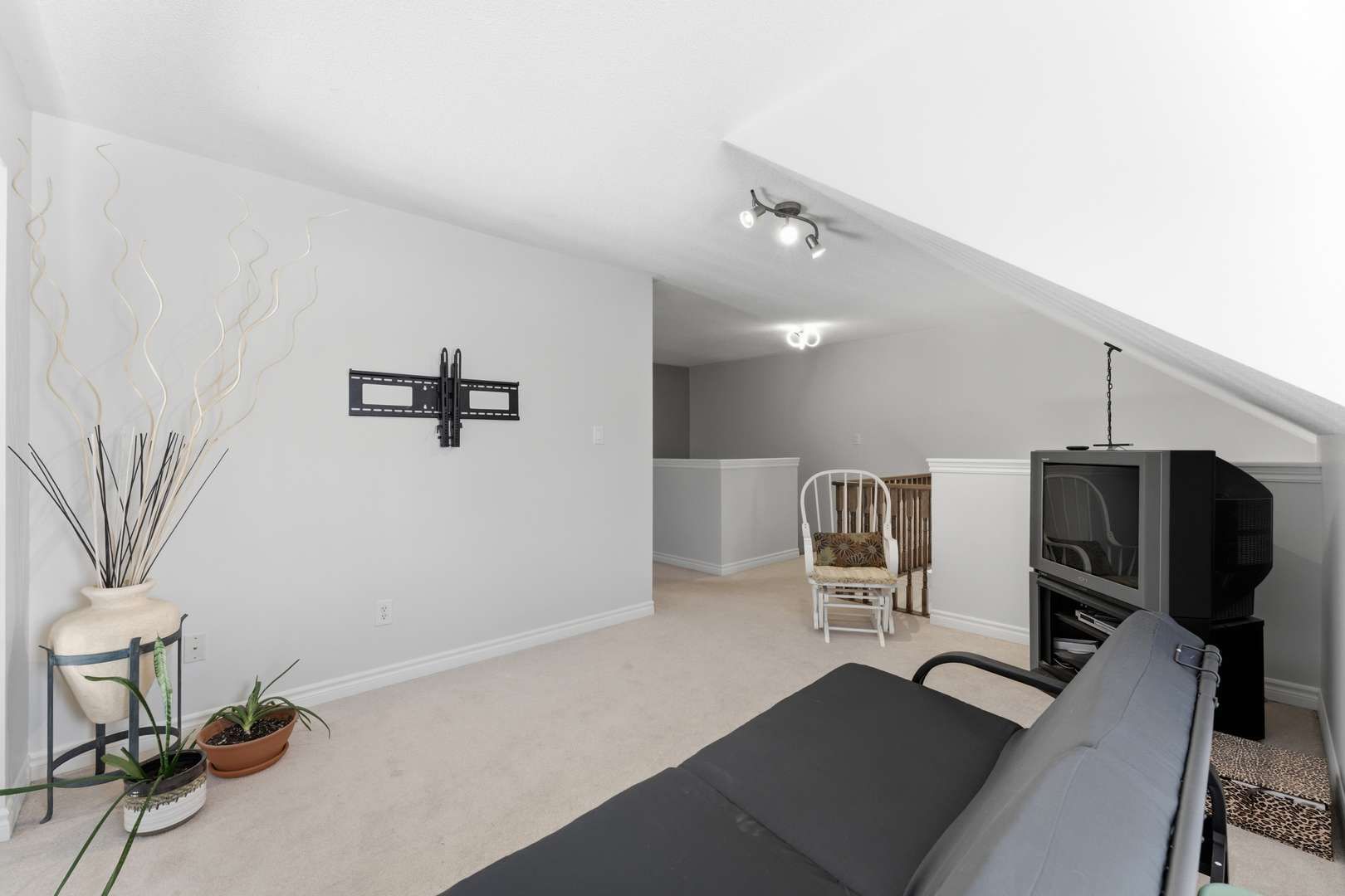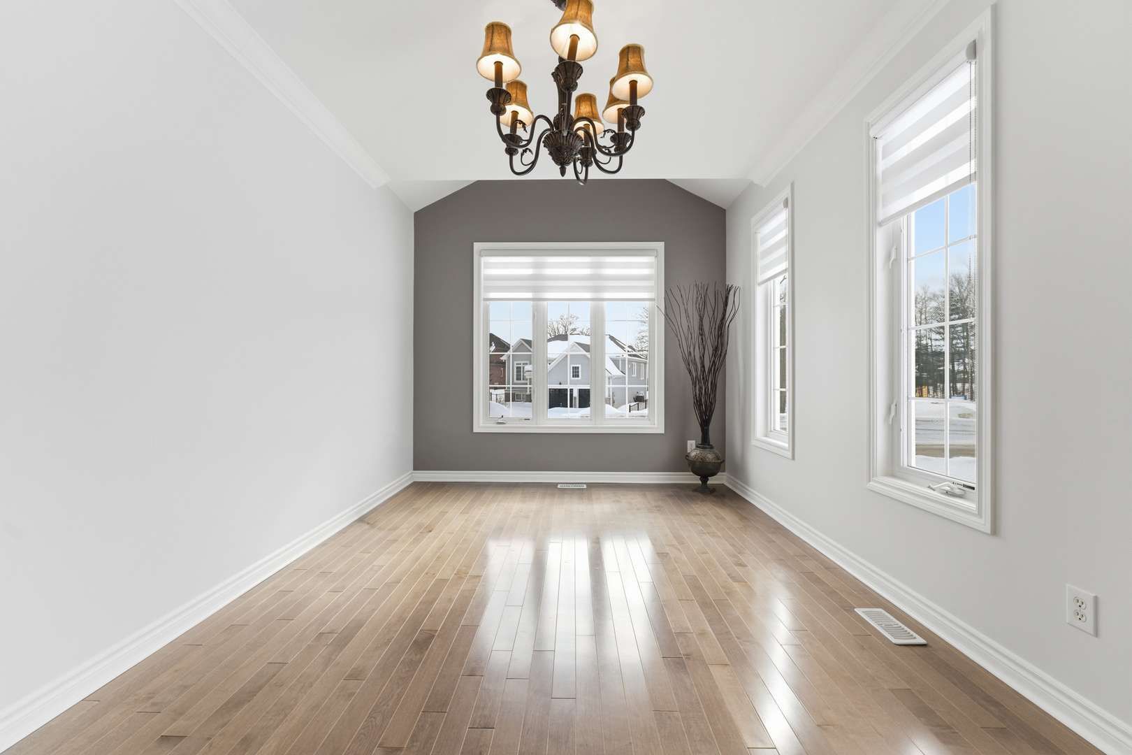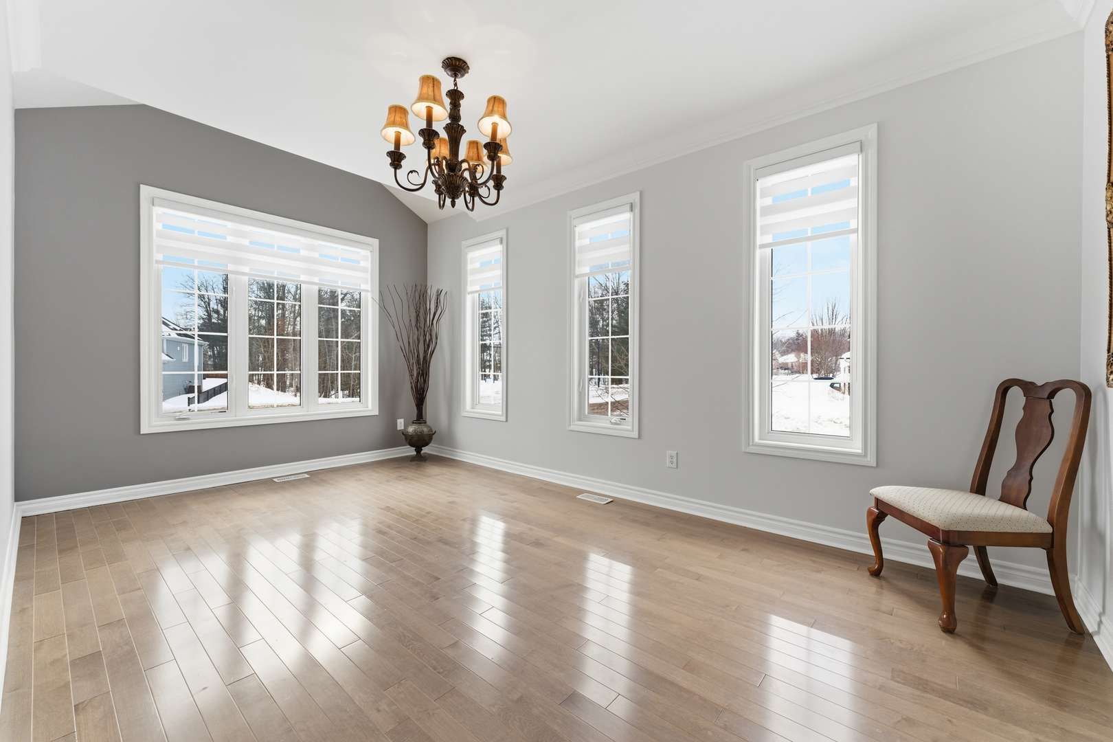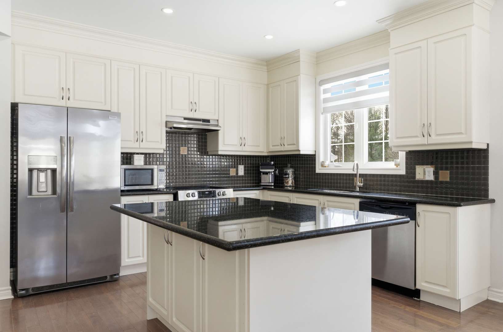• Open-concept layout with vaulted ceilings and modern kitchen finishes.