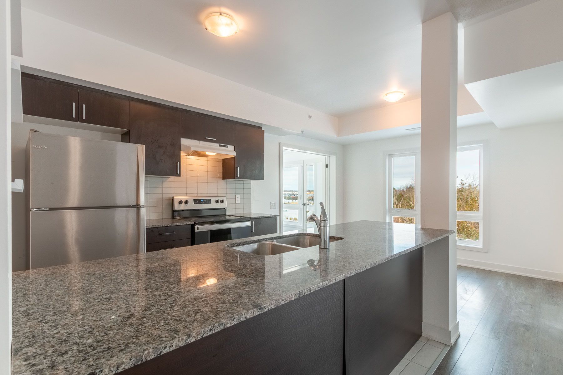 Welcome to chili one where elevated condo living meets community connection. This spacious 2+1 bedroom, 2-bathroom unit offers 1,267 sq ft of thoughtfully designed living space. The open-concept layout features a bright living room with walkout to a private balcony overlooking serene, protected greenspace with desirable east exposure. The kitchen is both functional and stylish, boasting granite counters, a breakfast bar, and ample storage. The primary bedroom includes a private ensuite, while the additional bedroom and den offer flexibility for guests or a home office. Enjoy the convenience of in-suite laundry and modern finishes throughout. Residents of chili one experience chef-inspired living with amenities including a communal kitchen and kitchen library stocked with high-end appliances and tools, perfect for entertaining. Outdoor cooking spaces include a pizza oven and smoker, and wellness is at the forefront with a fully equipped gym, yoga community, and basketball court. Ideally situated in south barrie, you're just minutes from highway 400 and walking distance to the mapleview go station a perfect balance of comfort and convenience. Brokerage remarks