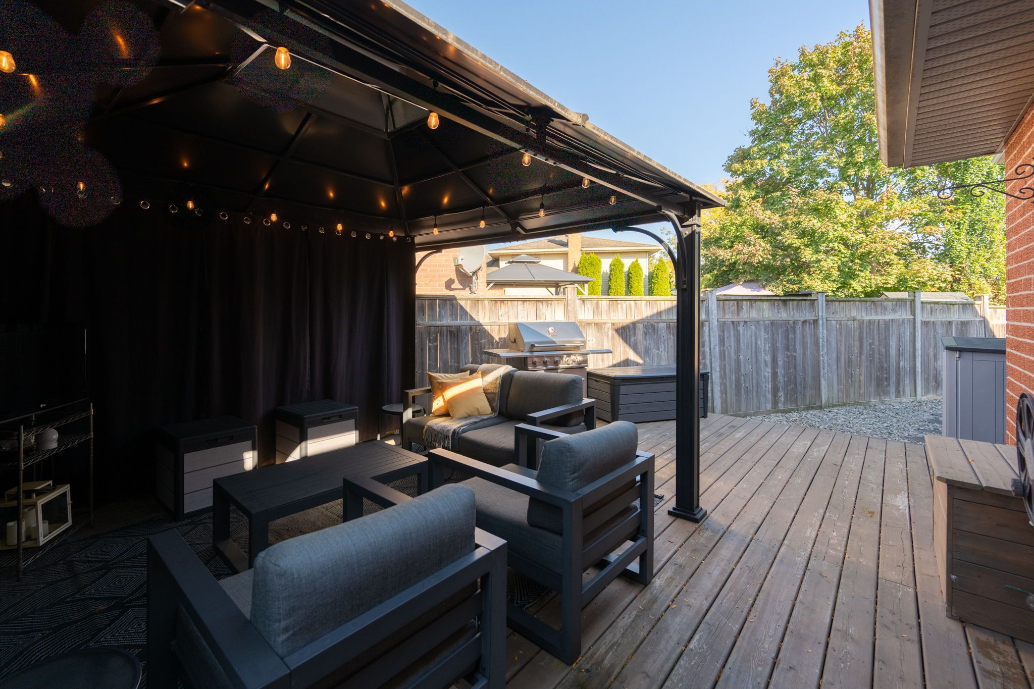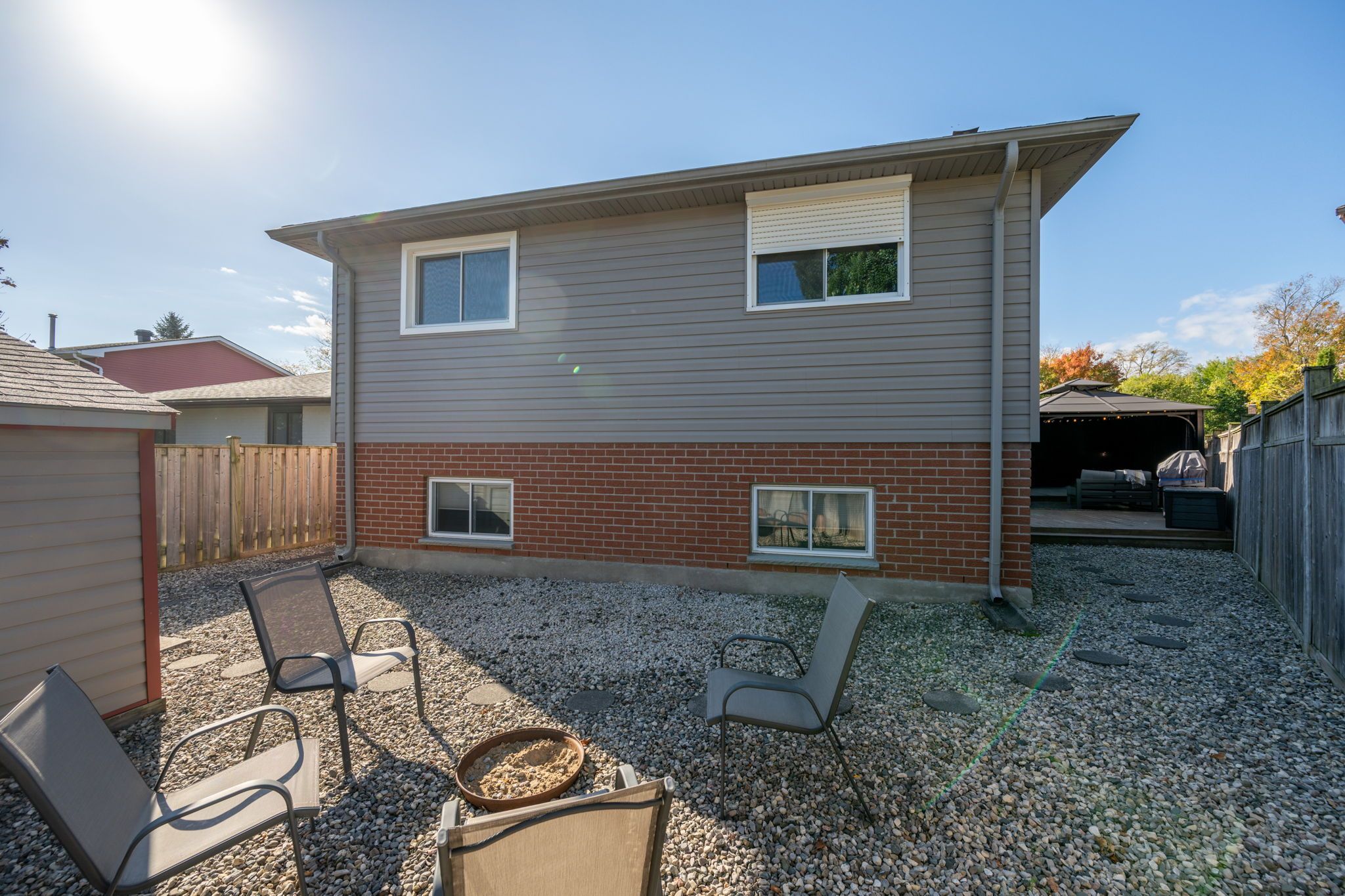 First time on the market! This cherished 4-level backsplit has been lovingly cared for by its original owners and is filled with warmth, memories, and pride of ownership. From the moment you step inside, you'll feel the welcoming energy of a home thats been well-loved and thoughtfully maintained and updated over the years. The open-concept main level is perfect for family living and entertaining, with a bright and spacious flow between the kitchen, dining, and living areas. Upstairs, you'll find three generous bedrooms, including a primary suite with a convenient cheater ensuite. The lower level is made for additional family fun or relaxation, featuring a cozy family room, bar area, and space for family game nights or entertaining guests, plus a handy 3-piece bath. The basement offers a laundry area, workshop with plenty of storage, along with an insulated fruit cellar with ventilation ideal for extra storage or pantry space. Step outside to your private backyard retreat, complete with a deck and gazebo. The perfect spot to unwind, watch a show, or enjoy an evening with family and friends. Located in a friendly, family-oriented neighbourhood, close to east park for endless outdoor fun, golf and the driving range. Shopping, schools, amenities and quick access to highway 401. A truly special home, loved for many years and ready for the next family to create their own lasting memories. Updates: furnace 2019, a/c 2019, roof 2014, windows 2008, front window 2012, exterior vinyl siding/soffit/facia/eavestroughs 2014. Fruit cellar drywalled and insulted with ventilation 2005. Front/back doors and garage door 2022. Concrete driveway 2022. Backyard shed has hydro.