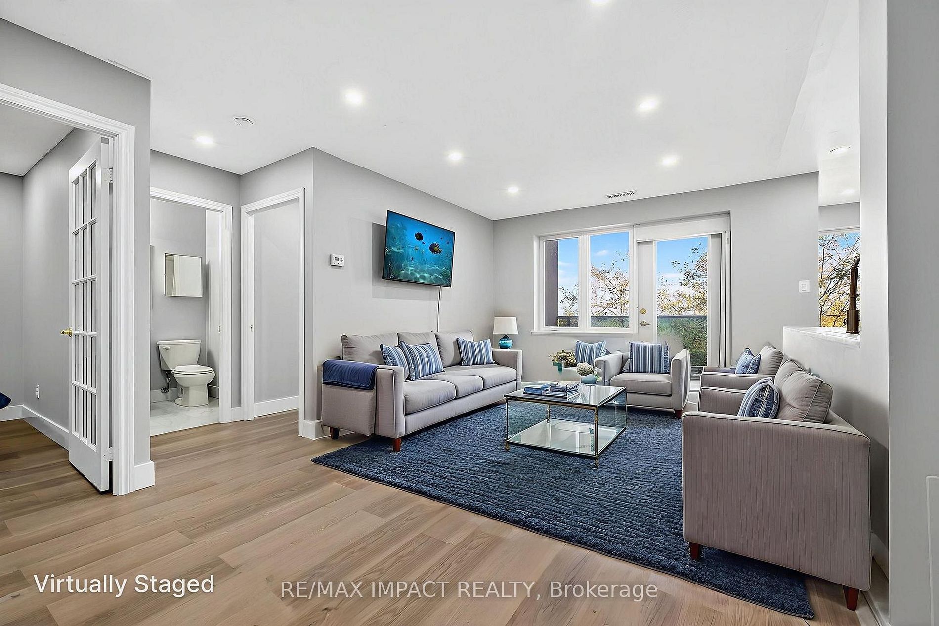 • Bright natural light with a private balcony overlooking green space.
