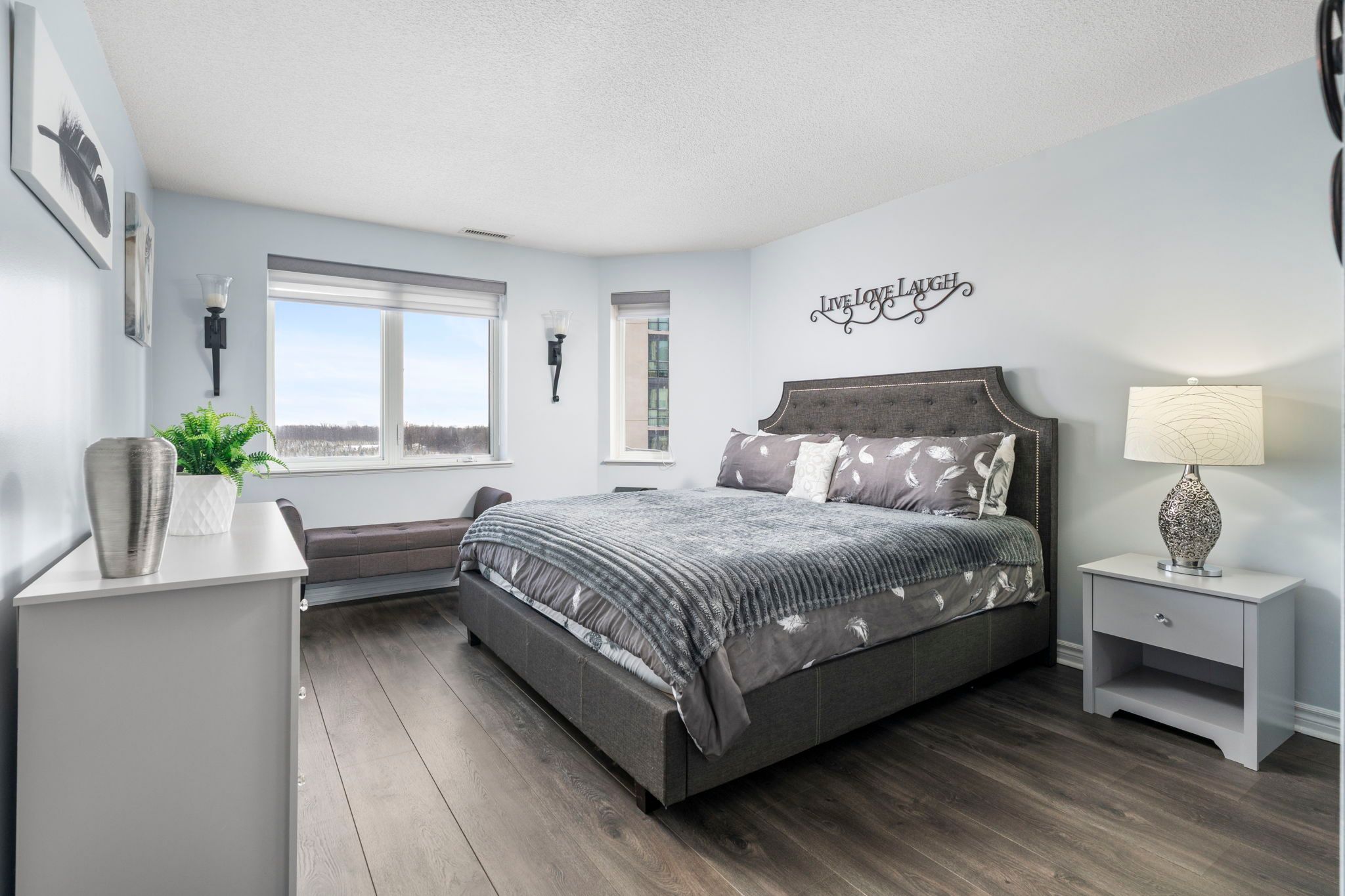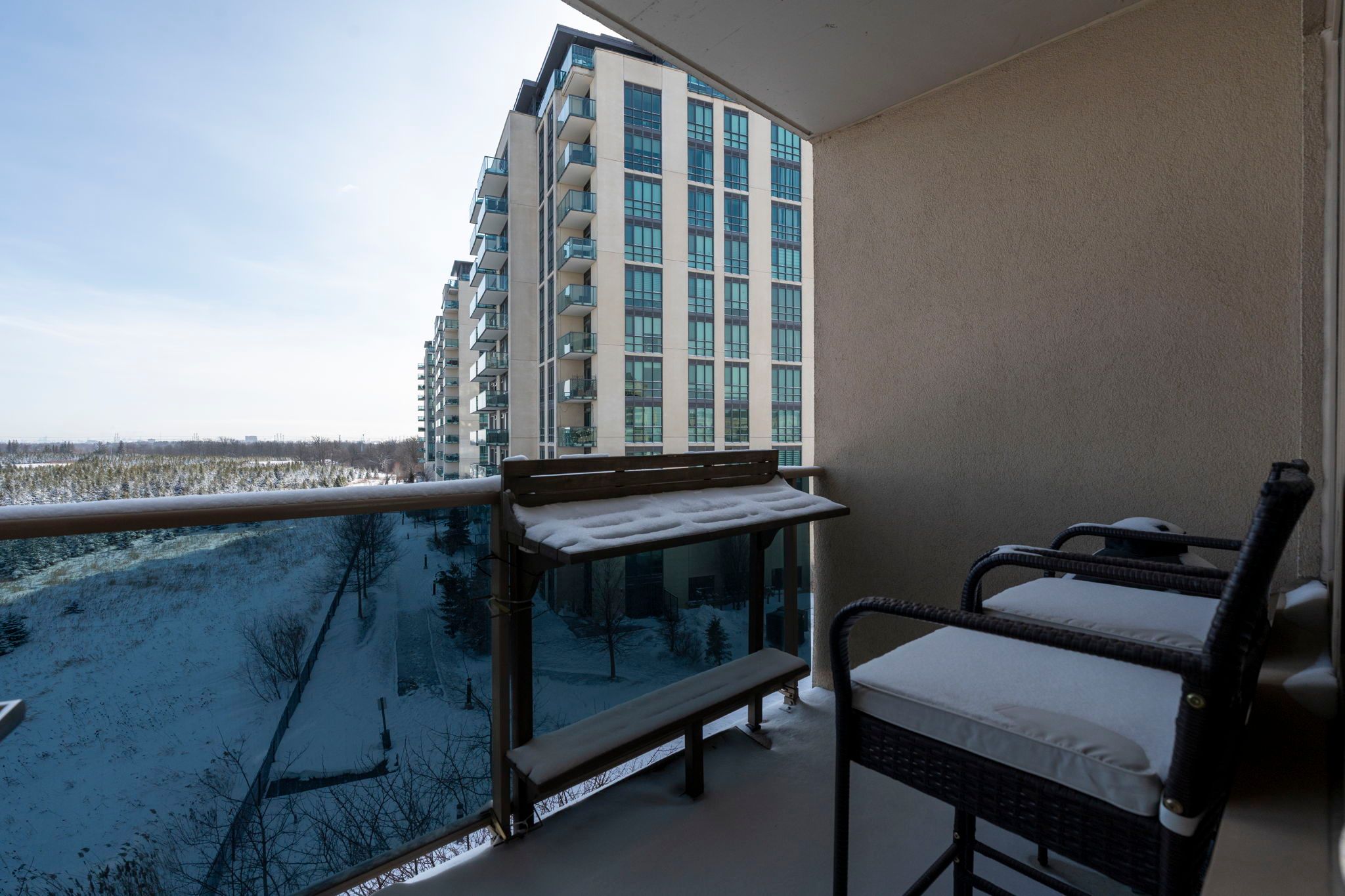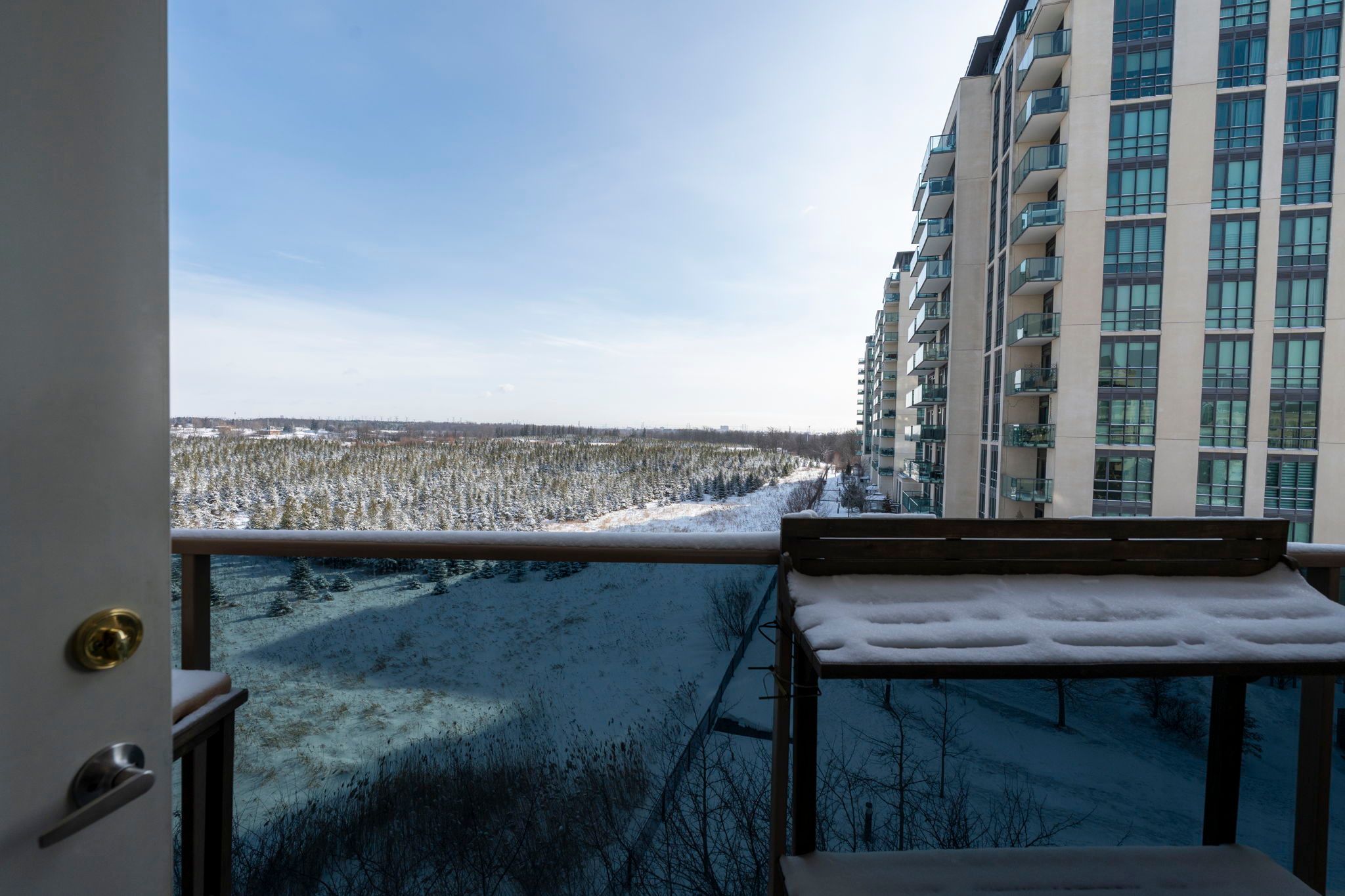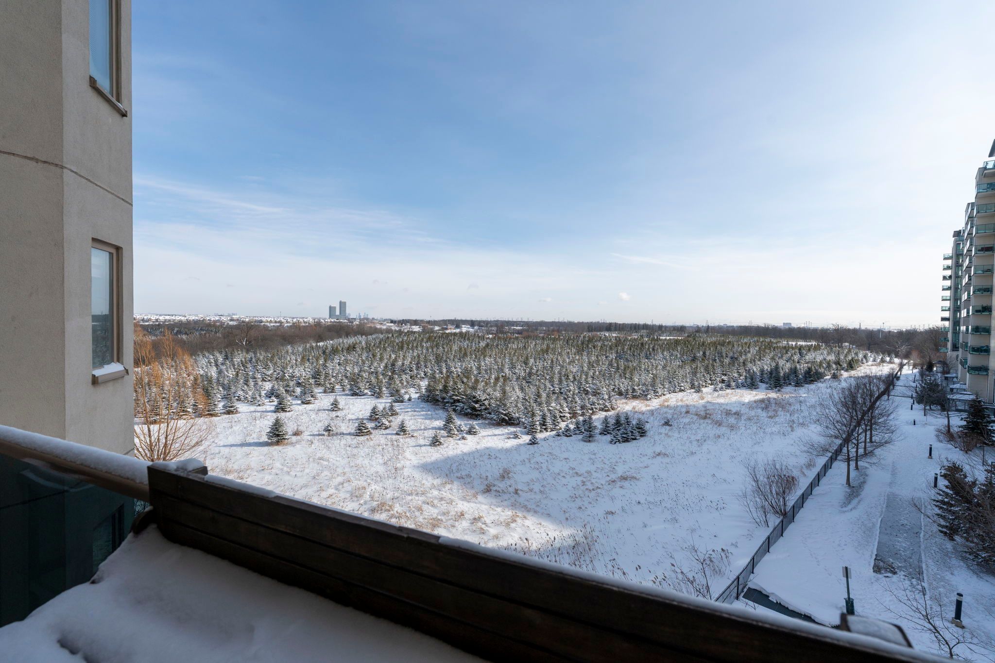 Welcome to an exceptional and stunning residence offering space, views, and lifestyle in perfect harmony! This impeccable 2+1 bedroom, 2-bathroom condominium delivers close to 1,300 sqft of thoughtfully designed living space, framed by sweeping views of the claireville conservation sunlight pours through expansive windows, enhancing the sense of openness throughout the suite. The well-appointed updated wall to wall kitchen blends style and practicality, showcasing granite countertops, stainless steel appliances, generous cabinetry, and a pantry, all thoughtfully positioned to flow effortlessly into the main living spaces-perfect for both hosting and daily living. The open living and dining areas are bright and inviting, framed by expansive windows and direct access to the balcony, where serene, unobstructed ravine views offer a calming and picturesque setting. The primary suite offers a peaceful retreat, featuring a beautifully renovated four-piece ensuite, ample closet space (his and hers), and a large window with tranquil views of the surrounding greenery. The generously sized second bedroom includes an oversized closet and offers excellent versatility, while the spacious enclosed den can comfortably function as a third bedroom, home office, or guest suite. Additional highlights include in-suite full-size laundry, upgraded laminate flooring throughout, stylish roller blinds in every room, one underground parking space, and two storage lockers for added convenience. Enjoy close access to scenic nature trails,shopping, dining, parks, transit, and major highway connections all within easy reach-offering the perfect balance of tranquility and accessibility. Residents enjoy a full suite of lifestyle amenities, including a library, gym, media and activity rooms, games and billiards spaces, guest accommodations (additional cost), and an impressive event room with stage and separate kitchen-perfect for hosting larger gatherings.