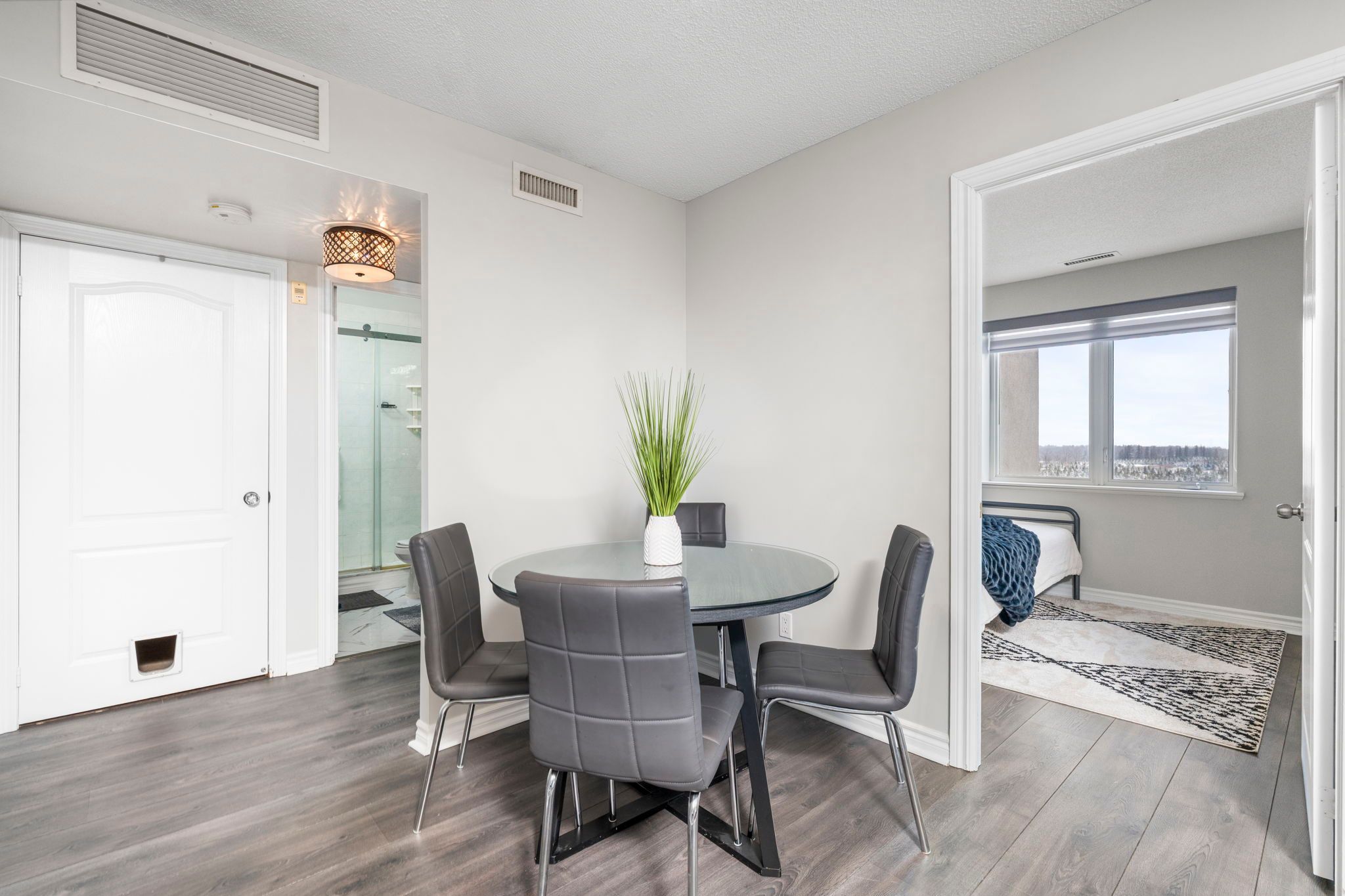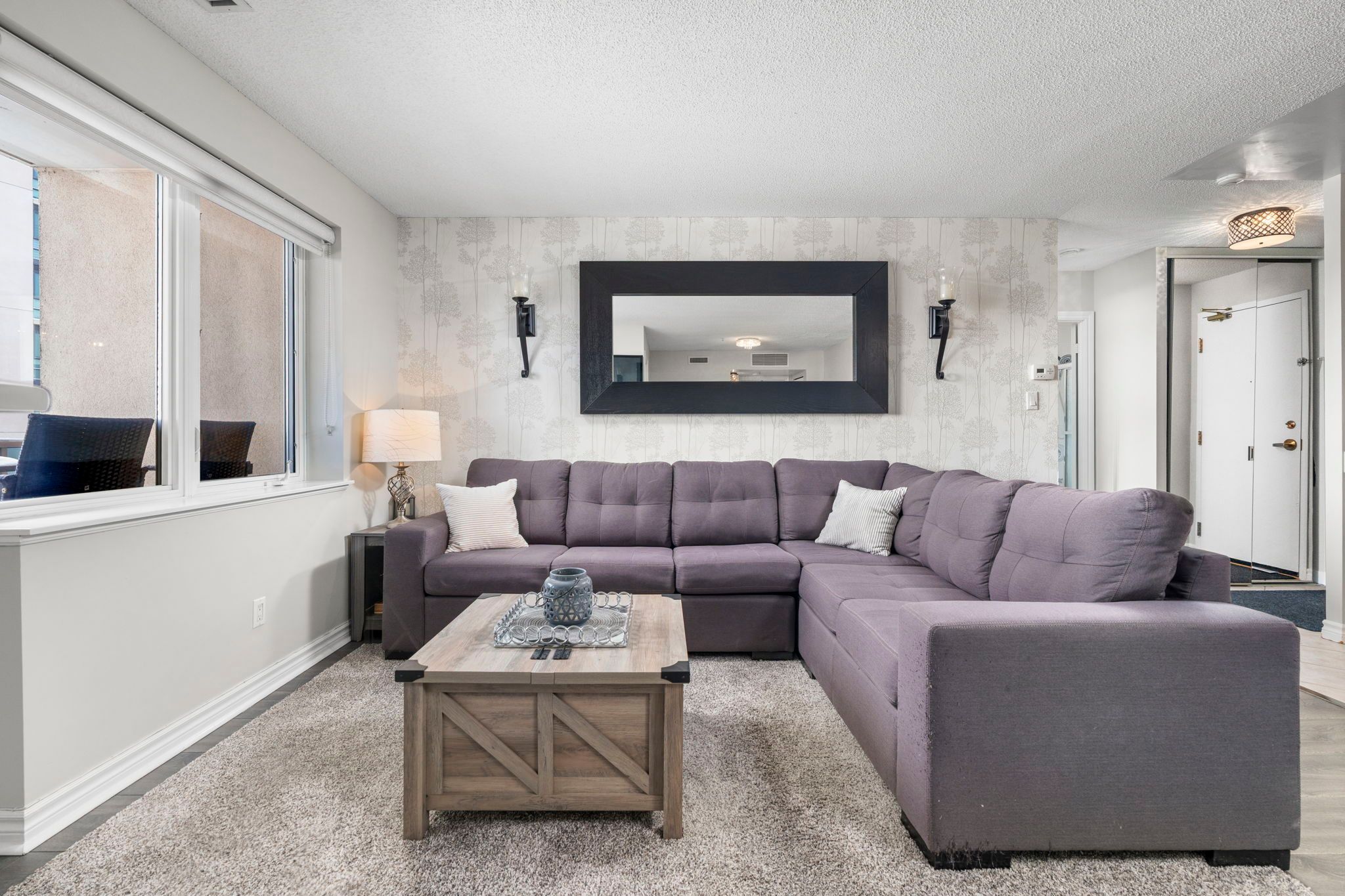 • Bright living and dining areas with large windows and balcony access.