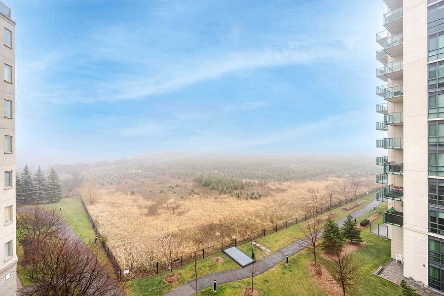 Discover this fully furnished home-just grab the keys and start living. This stunning ravine-view corner suite at 10 dayspring circle, brampton offers beautifully maintained and spacious 2+1 bedroom, 2 bathroom living with an elegant, open-concept design filled with natural light. The suite features two walkouts to a large wrap-around balcony, showcasing sweeping, unobstructed views of the claireville conservation area and the city skyline. The balcony is accessible from both the living room and the primary bedroom, creating a seamless indoor-outdoor living experience. Inside, you'll find a generous living and dining area, a well-appointed kitchen, a versatile den that can serve as a third bedroom or home office, a private in-suite laundry room, a mirrored double closet in the foyer, and a convenient linen closet. The primary bedroom offers a peaceful retreat with a 4-piece ensuite, walk-in closet, additional double closet, and direct balcony access. The second bedroom is bright and spacious, ideal for family members or guests. Nestled in a quiet and established community, this residence is conveniently located near highways 427, 407, pearson international airport, and a variety of local amenities. The well-managed building provides exceptional features, including a private car wash, fitness centre, games room, craft room, library, and a beautifully appointed party room. Known for its active, adult-oriented community, the building offers a warm and welcoming lifestyle. It is especially well-suited for those seeking a peaceful, retirement-friendly environment. A great option for tenants looking to enjoy comfort, community, and convenience all in one place. This is a rare opportunity to rent a bright and spacious corner suite with spectacular ravine views in one of brampton's most desirable condominium communities.