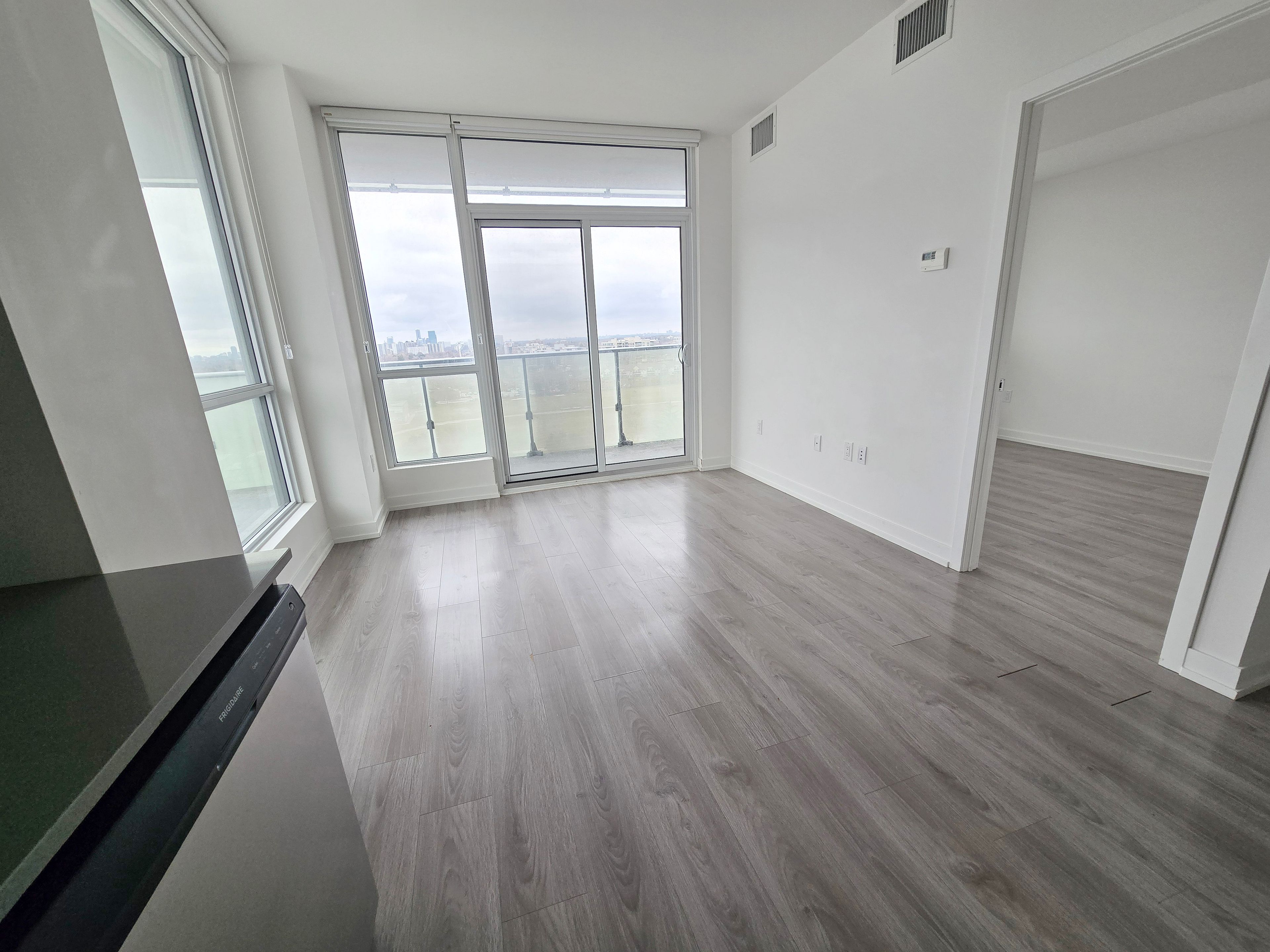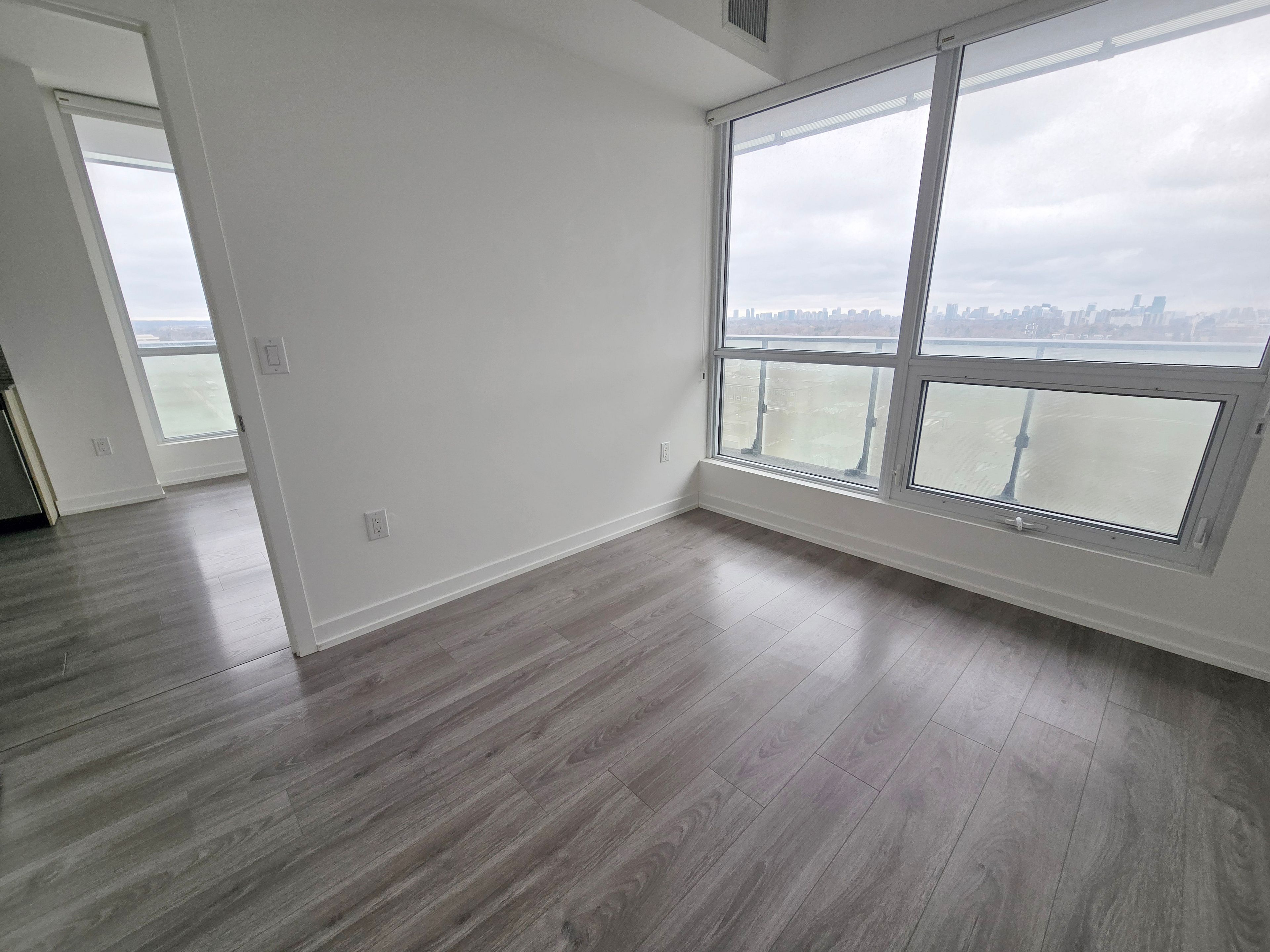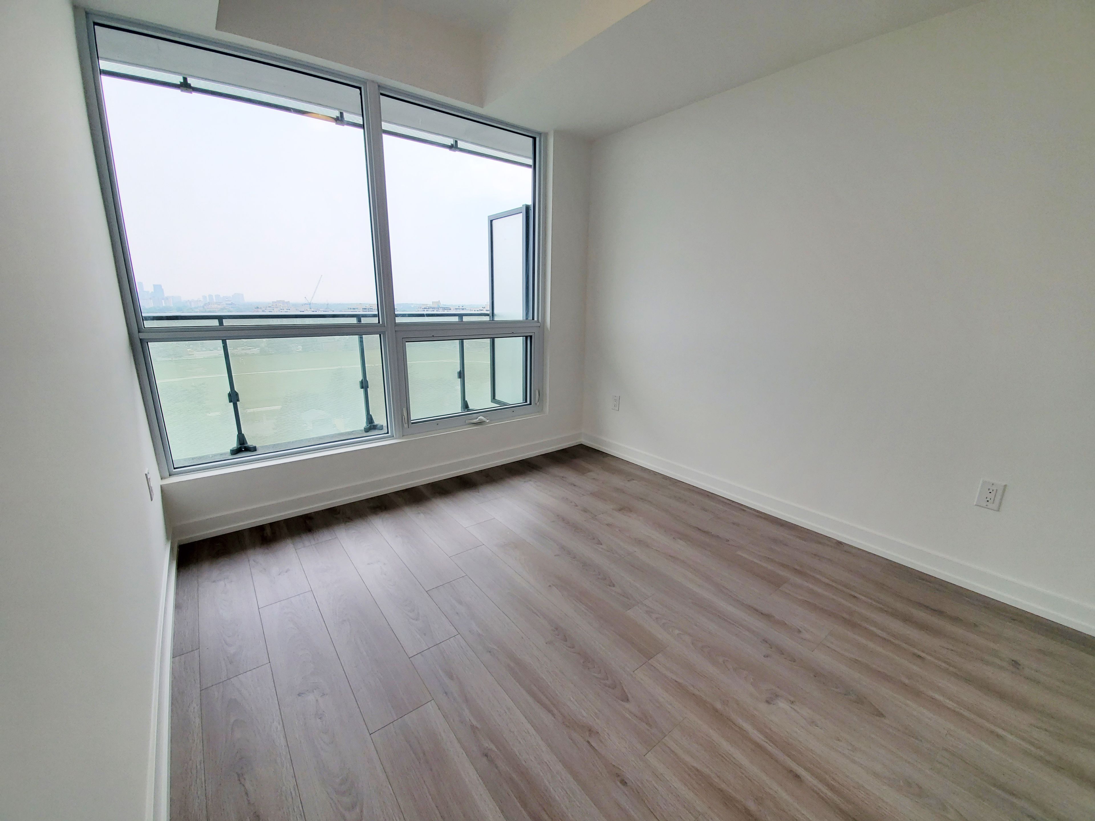 Unobstructed view and wrap-around balcony. 1bed+ plus flex with 1 parking and 1 locker. North east unobstructed view and wrap-around balcony. 580 sqft+ balcony 183 sqft. Separate flex can be used 2nd bedroom. Laminate flooring through out! Minutes walk to sheppard west subway station, minutes drive to yorkdale mall, 401, and 1 stop to york university. 9ft ceilings, floor to ceiling windows.