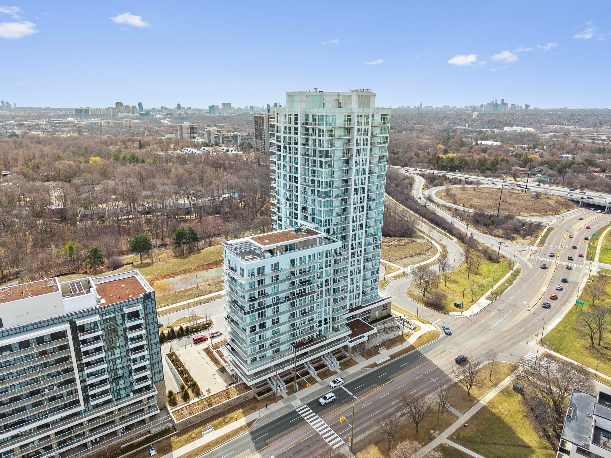 Welcome to suite 1201 at the ravine - where thoughtful design meets an address that genuinely delivers. This bright and well-appointed 1 bedroom + den, 2 bathroom suite offers 639 square feet of smartly configured living space, with floor-to-ceiling windows that draw in natural light and frame elevated views of the surrounding neighbourhood. The open-concept layout flows effortlessly from a modern kitchen - complete with stainless steel appliances, quartz countertops, and generous cabinetry - into a comfortable living and dining area that feels larger than its footprint suggests. The primary bedroom features a private ensuite, while the second full bathroom adds a layer of flexibility rarely found in a suite of this size. The den offers genuine utility: a dedicated home office, a quiet reading room, or a space for an overnight guest. In-suite laundry, 9-foot ceilings, wide-plank laminate flooring, and quality window coverings complete the interior. One underground parking space and one locker are included in the lease. Beyond your door, the building delivers: a fully equipped fitness centre, yoga area, party room with full kitchen, dog spa, kids' playroom, bike storage, and a stunning 13th-floor outdoor terrace with bbqs, firepit, sundeck, and outdoor tv. A 24-hour concierge rounds out the offering. Steps to ttc. Minutes to the dvp, hwy 401, shops at don mills, fairview mall, brookbanks park, and the deerlick ravine trails. One parking. One locker. Two bathrooms. Everything a well-lived life requires.