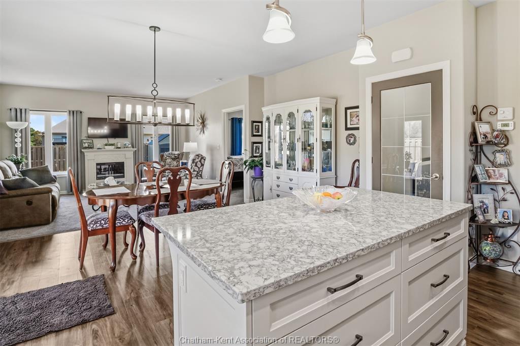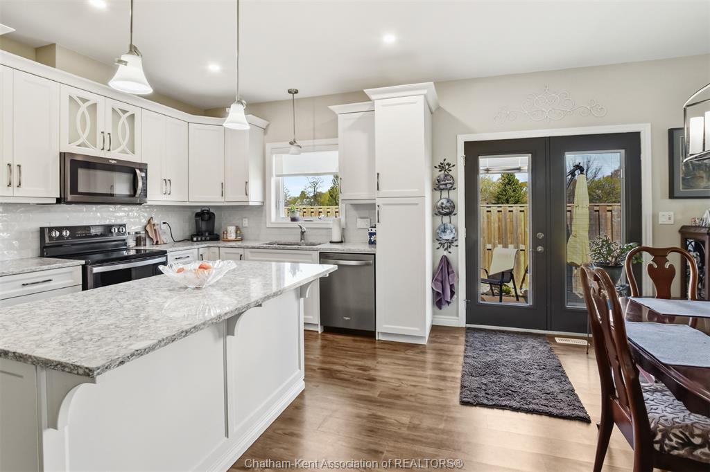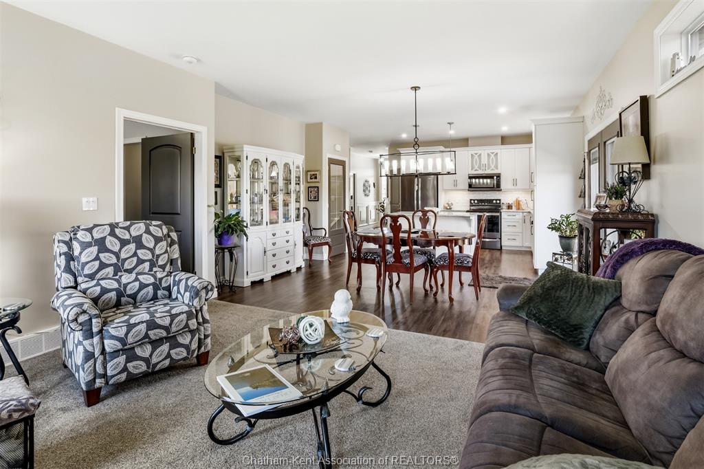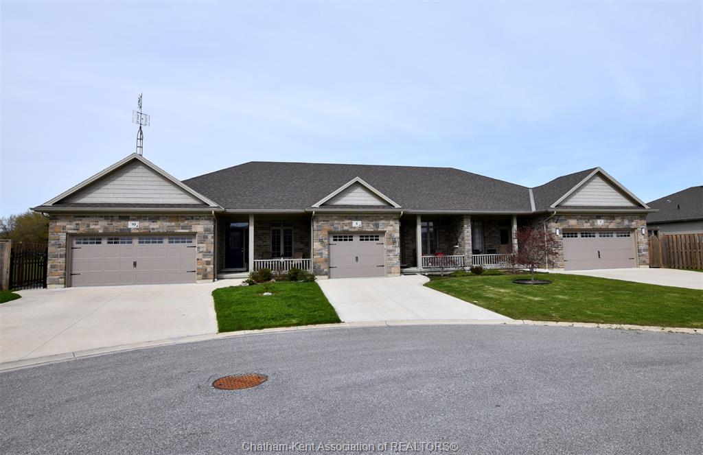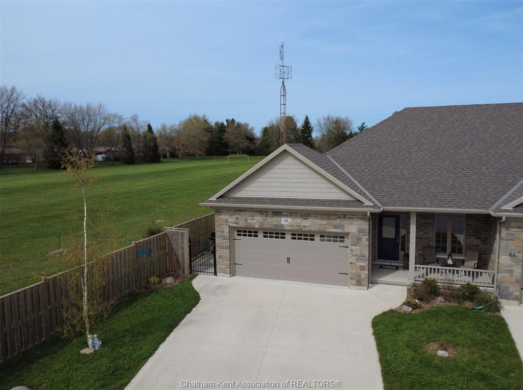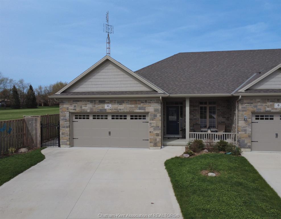 Excellent opportunity in the popular lanz subdivision located in the desirable town of blenheim. Top notch market appeal with a long list of features. Built in 2021 still has time remaining on the new home warranty. End unit with the larger square footage and double garage compared to the middle. Front entrance foyer, bedroom or office with pocket door. Convenient main floor laundry and 2 pc bath. Custom kitchen from windmill cabinets, quartz counters, island and open concept living. 9 ceiling with transom windows and garden doors to side patio and bbq. Large primary bedroom, walk-in closet and well appointed ensuite with shower and added bonus of a 6' soaker tub. Finished lower level with family room, 3pc full bath, bedroom, storage/utility and workshop area. High end furnace, central air and central vac, owned water heater (no rentals here). 10 delft has a unique location starting with the quieter lower traffic of the cul-de-sac but check out the overheads backing onto the rear high school sports field. Enjoy the fenced rear yard, storage shed and the extra privacy of no side yard neighbour is very appealing. Attractive road appeal, double concrete drive, double garage with hot and cold water and laundry tub and the covered front porch for sitting and enjoying afternoon sun. This is a perfect retiree setup, only 5 years old will provide for a comfortable future.