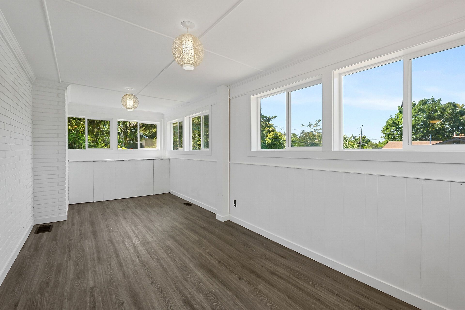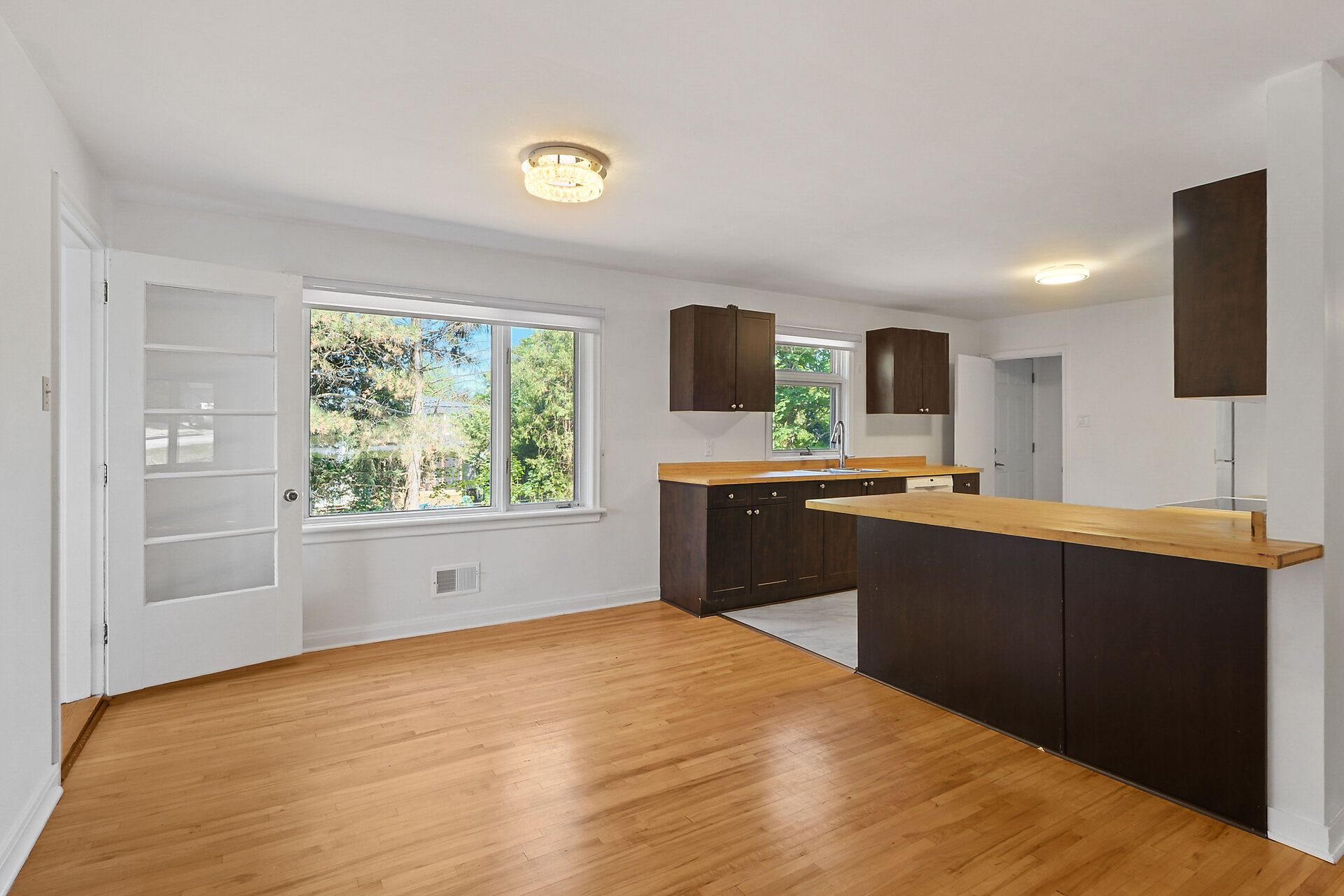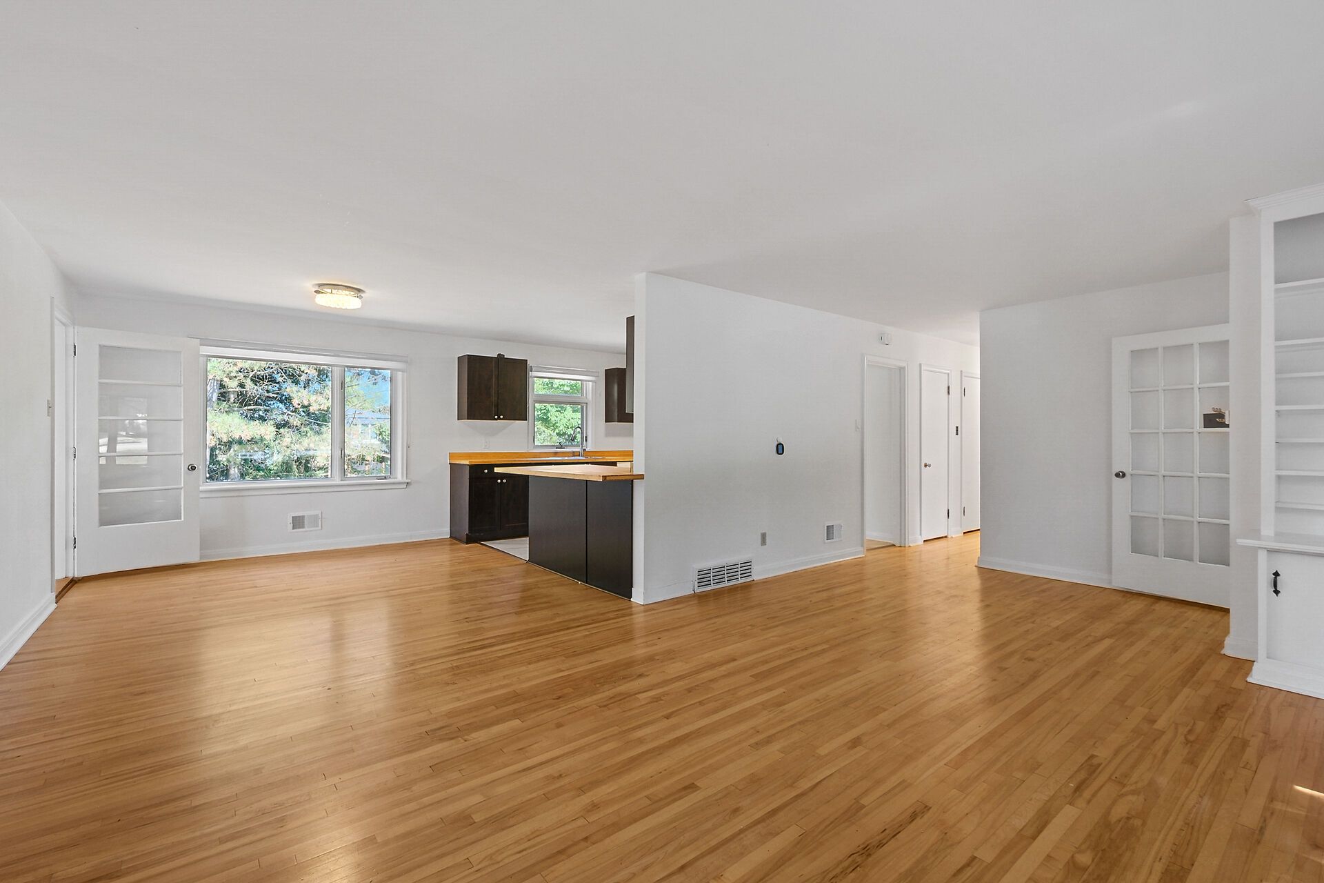 • Bright open-concept living and dining areas with hardwood floors and large windows.
