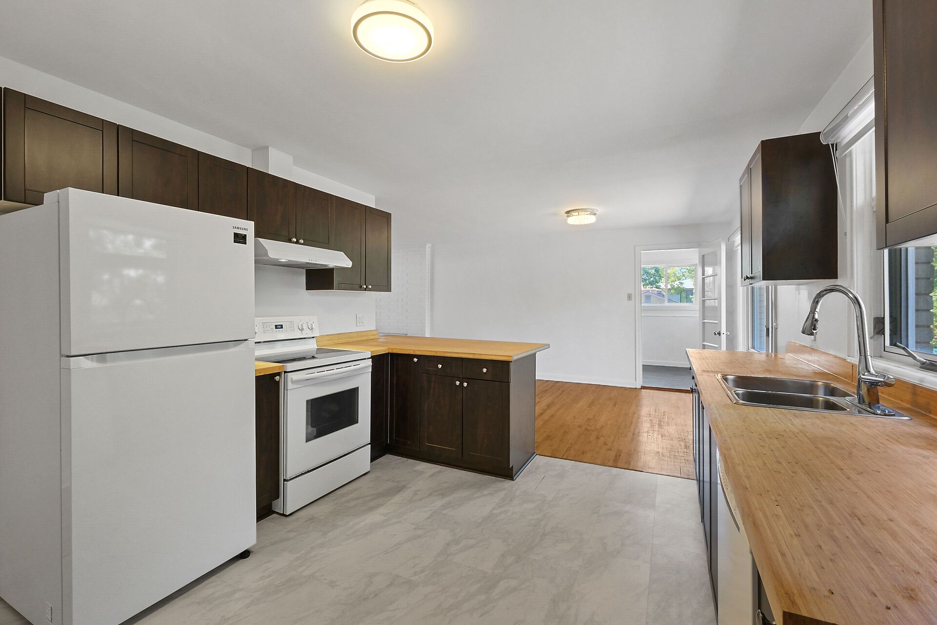 Nestled among winding streets, this is a rare opportunity to reside in prestigious enclave of rothwell heights. This beautifully remodeled and updated brick bungalow offers timeless charm with modern comforts, featuring four bedrooms and an attached single garage. The open-concept living and dining areas are filled with natural light from expansive picture windows and showcase gleaming hardwood floors. The newly renovated eat-in kitchen boats a stylish breakfast bar and overlooks the serene natural surroundings. Step into the sunroom, where your family can unwind and enjoy views of the lush, treed backyard-an-ever-changing canvas through the seasons. The spacious primary bedroom is complemented by two additional bedrooms and a tastefully updated four-piece bathroom. The fully finished lower level is ideal for families and hobbyists alike, offering a generous family/media room, a fourth bedroom with built-in shelving and a large window, a new walk-in glass shower, powder room, laundry area and ample storage space. Embrace nature and tranquility in your own backyard, just steps from the ottawa river and parkway. Conveniently located near parks, the lrt, shopping, and major institutions such as csis, cse, and nrc. Walking distance to excellent schools, including the highly regarded colonel by secondary school, home to the prestigious ib program. Lawn maintenance included in the rent. Snow removal included for this season.
